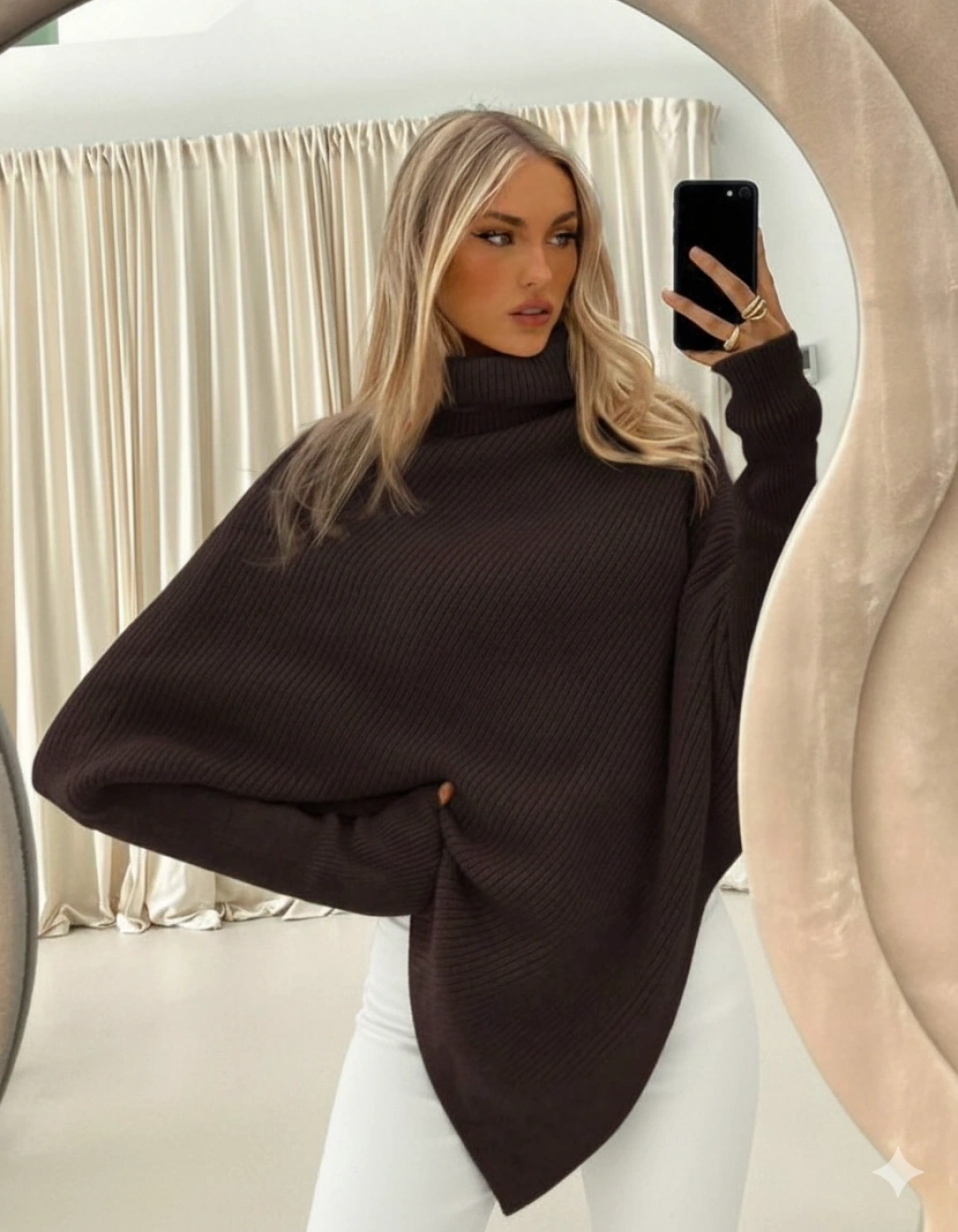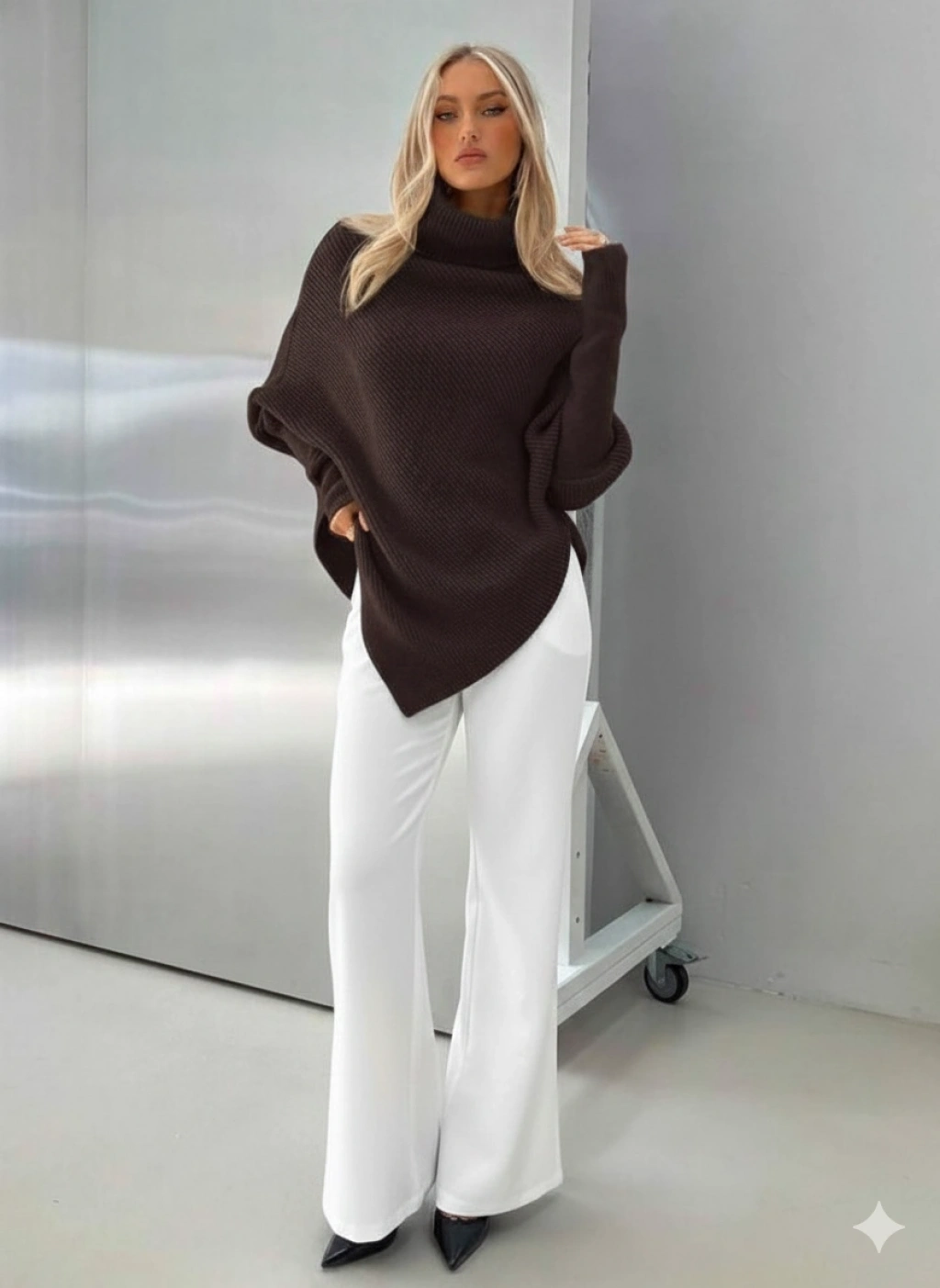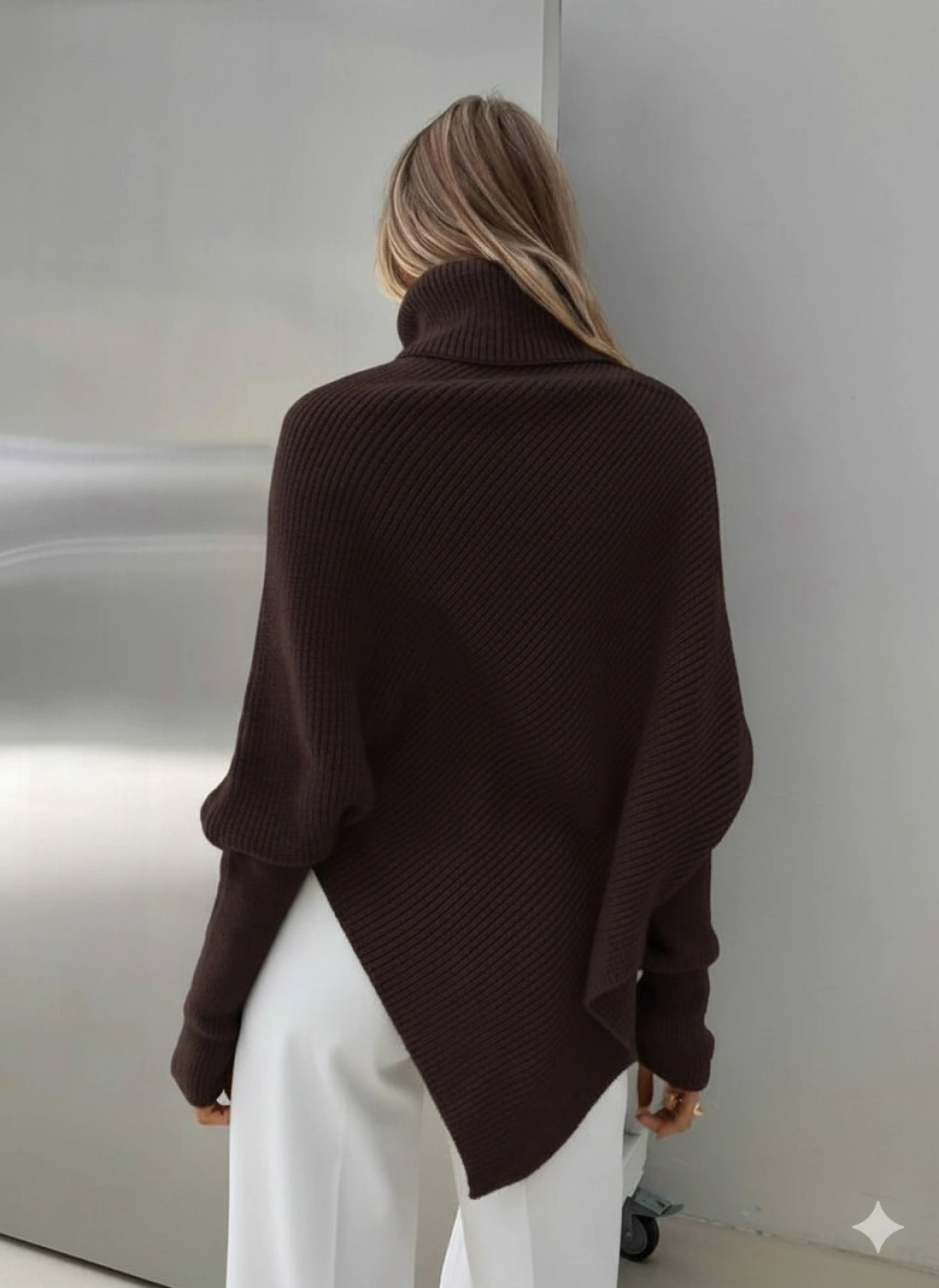 Kadın Acı Kahverengi Asimetrik Kesim Boğazlı Balıkçı Yaka Triko Kazak