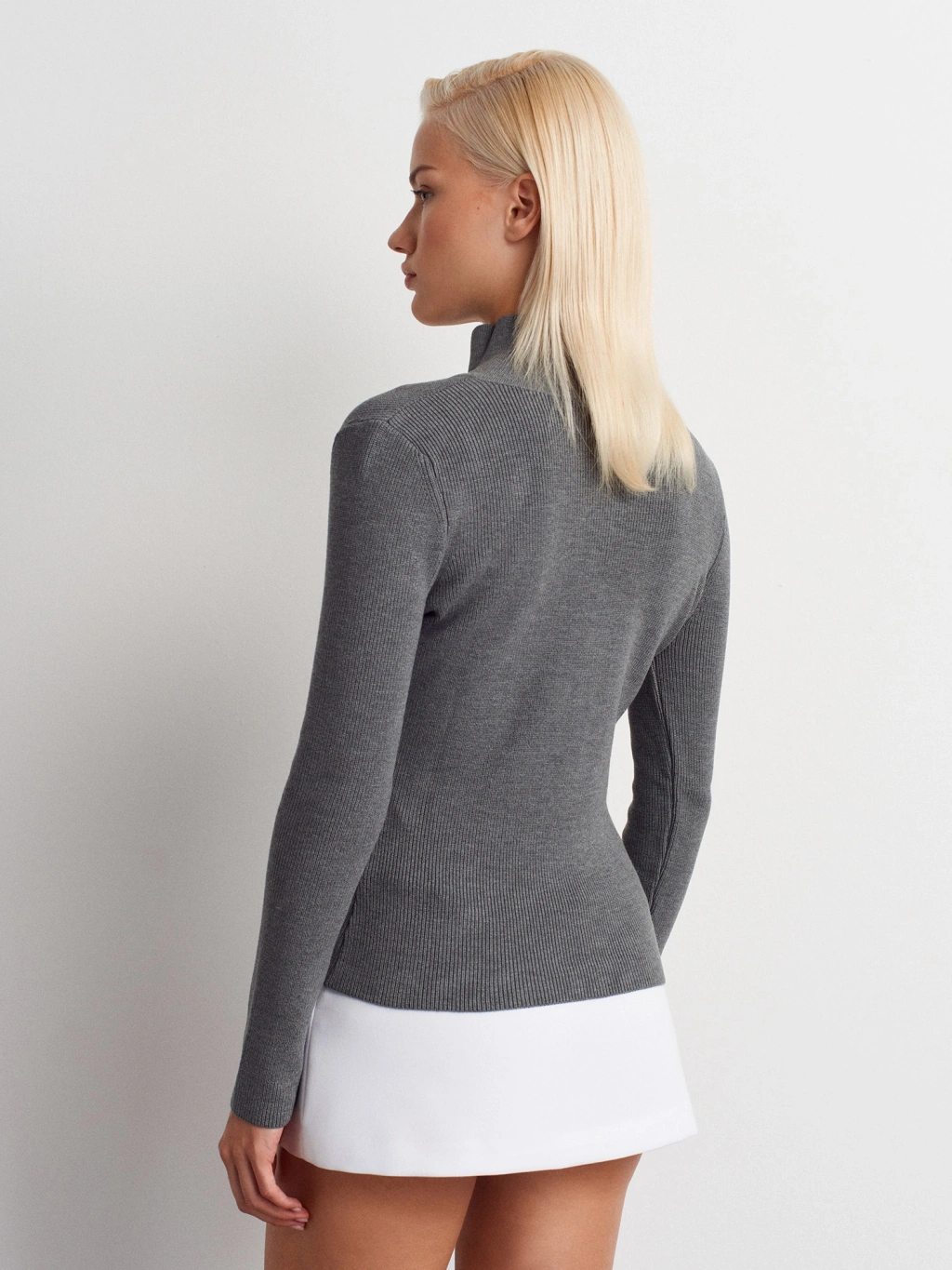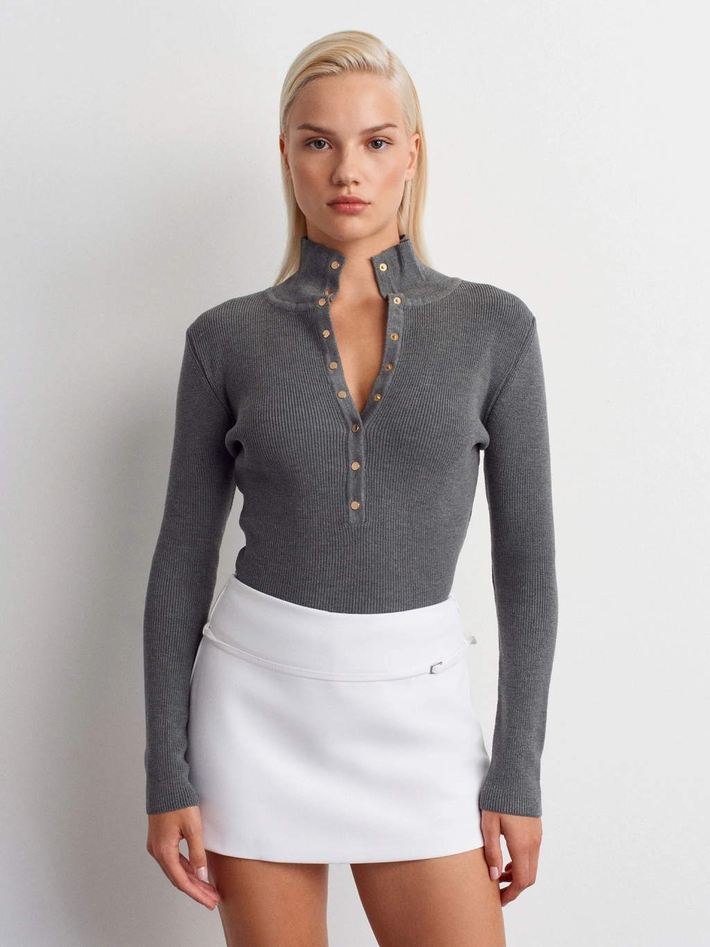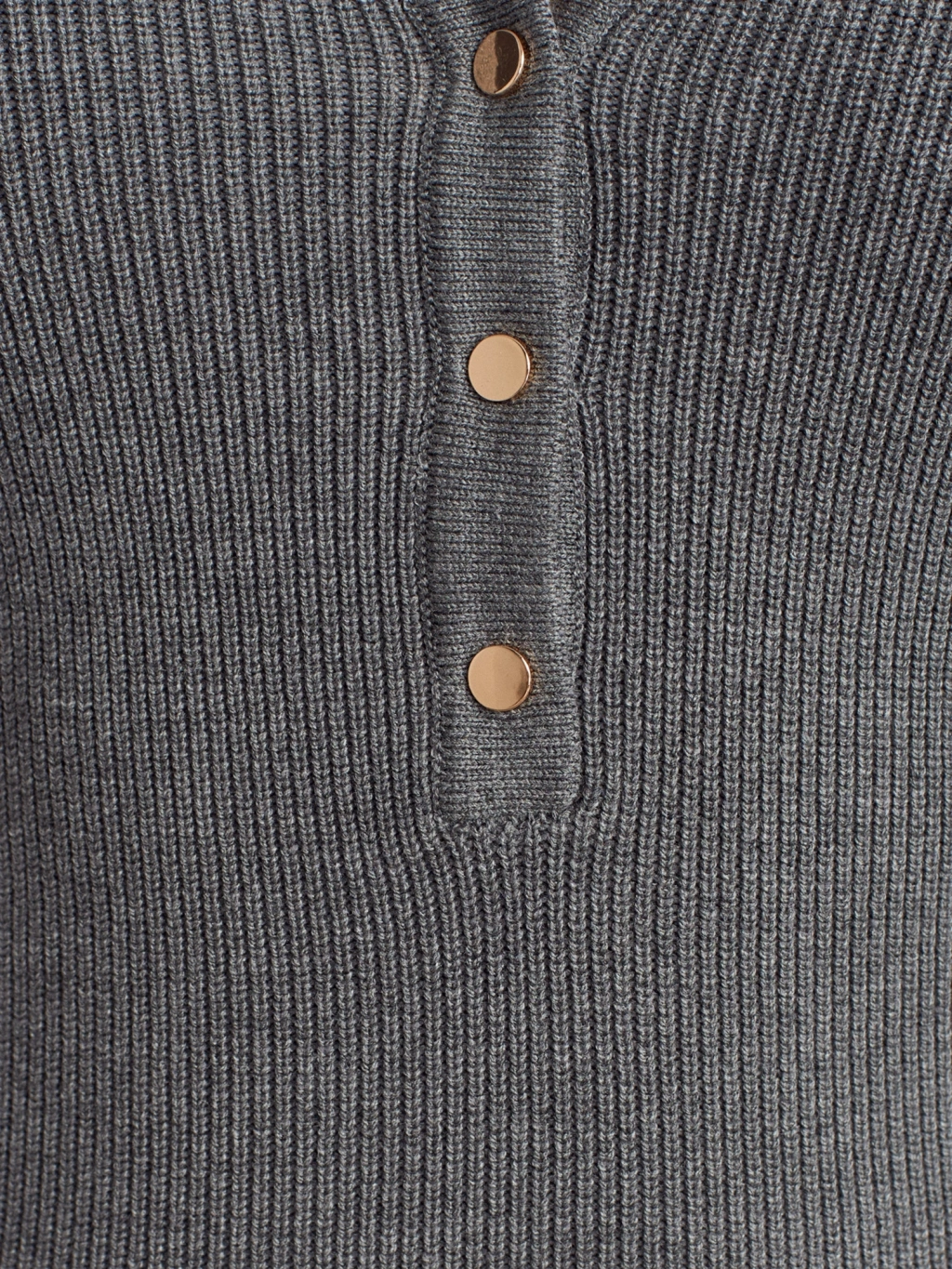 Kadın Antrasit Dik Yaka Çıtçıtlı Uzun Kol Triko Kazak
