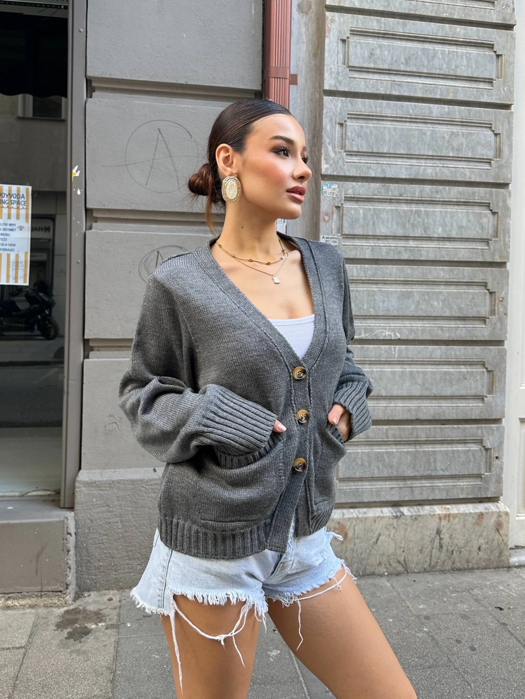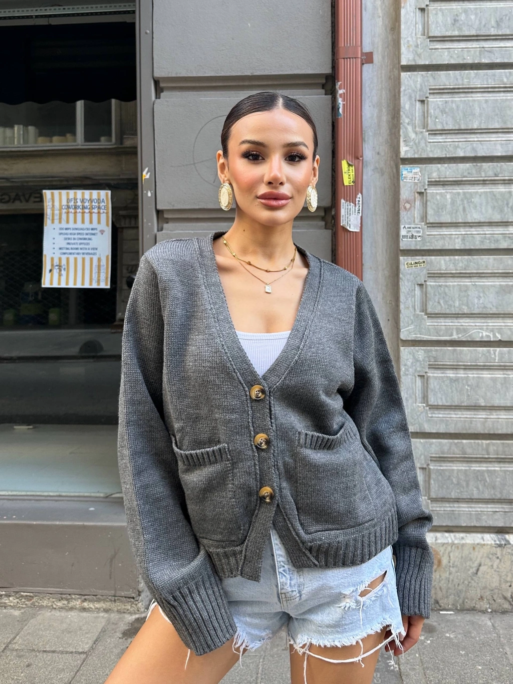 Kadın Siyah Düğmeli Cepli Premium Örgü Triko Hırka, şıklığı ve konforu bir araya getiren zarif tasarımıyla dikkat çeker. Yumuşak örgü dokusu sayesinde serin havalarda sıcak tutar, şık düğmeleri ve cepleriyle hem stil hem de işlevsellik sunar. Günlük kullanım, ofis stili veya dış giyim olarak rahatlıkla tercih edebileceğiniz bu premium hırka, gardırobunuzun vazgeçilmez parçalarından biri olacak. Siyah rengiyle her kombinle kolayca uyum sağlar