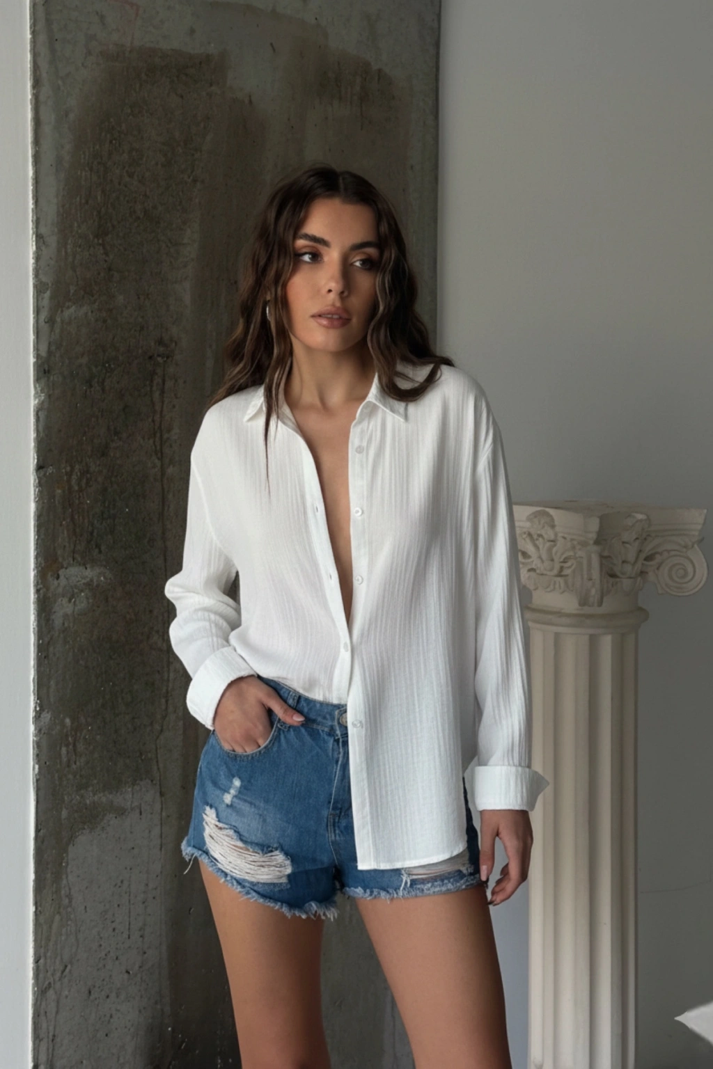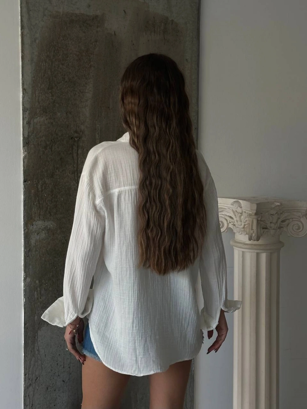 Kadın Beyaz Müslin Kumaş Premium Gömlek
