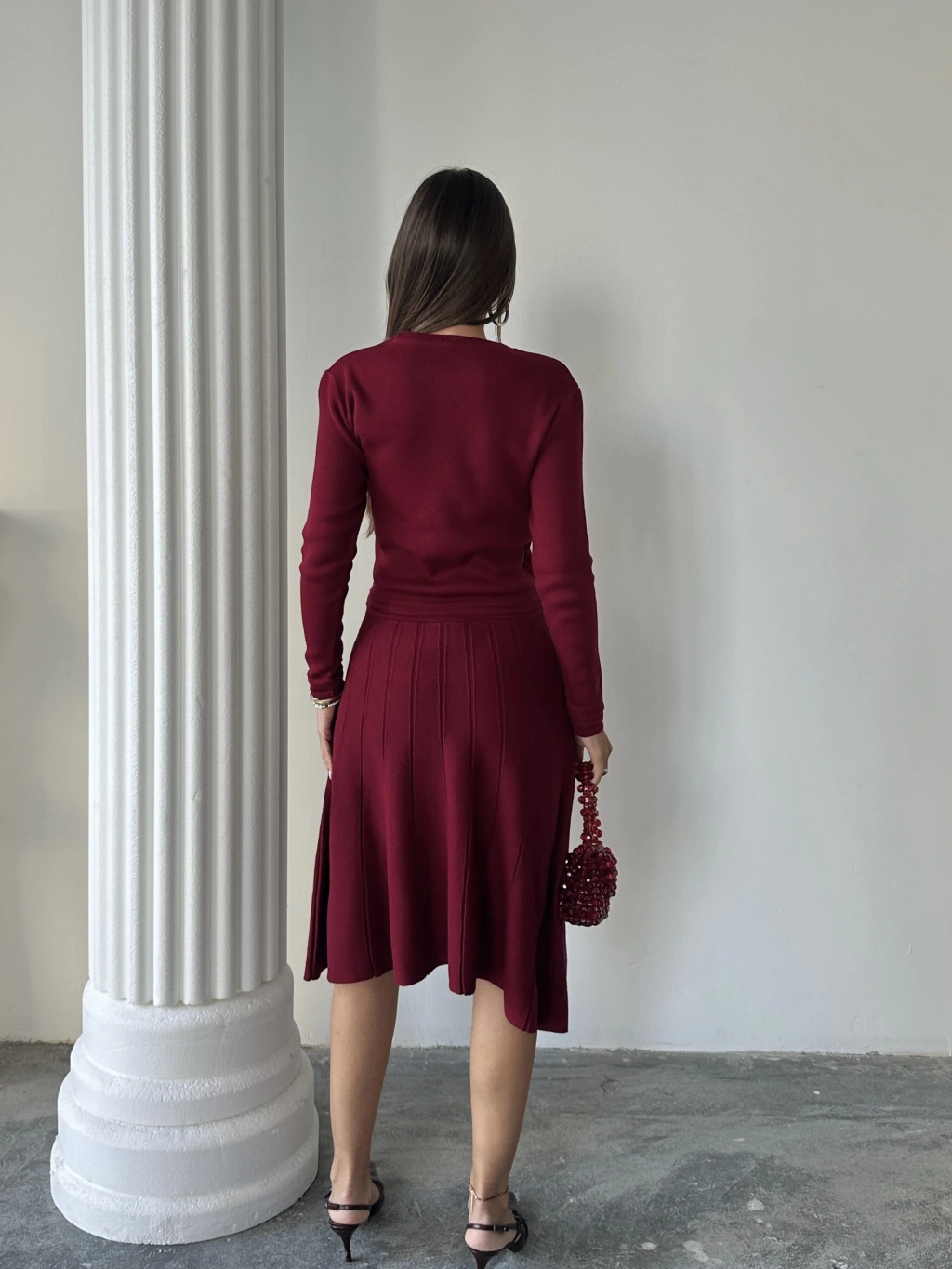 Kadın Bordo Şık Bilek Boy Kol Boydan Düğmeli Uzun Triko Elbise