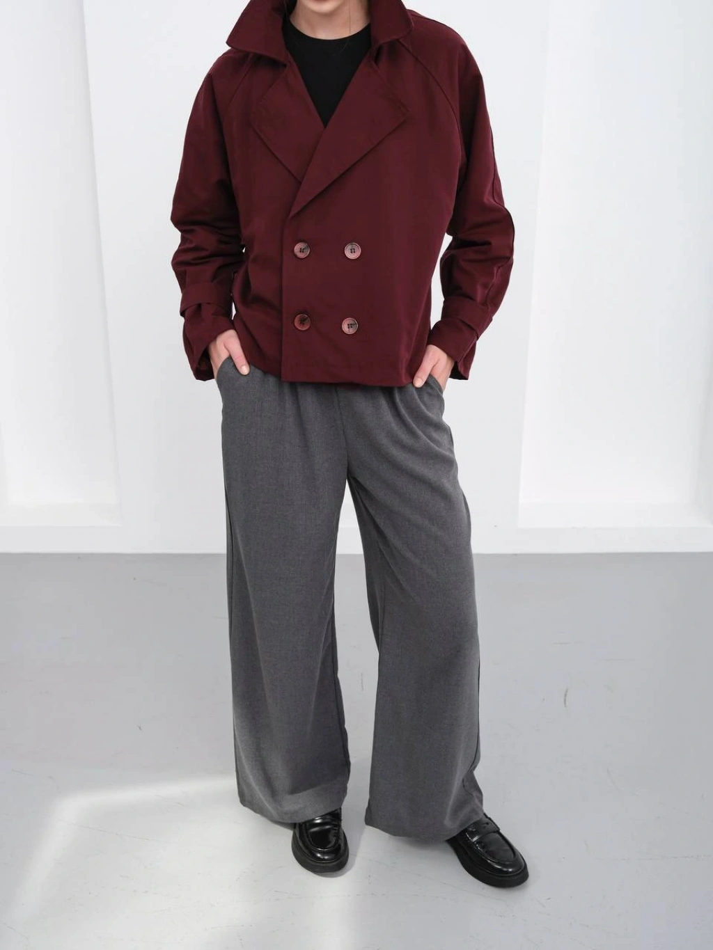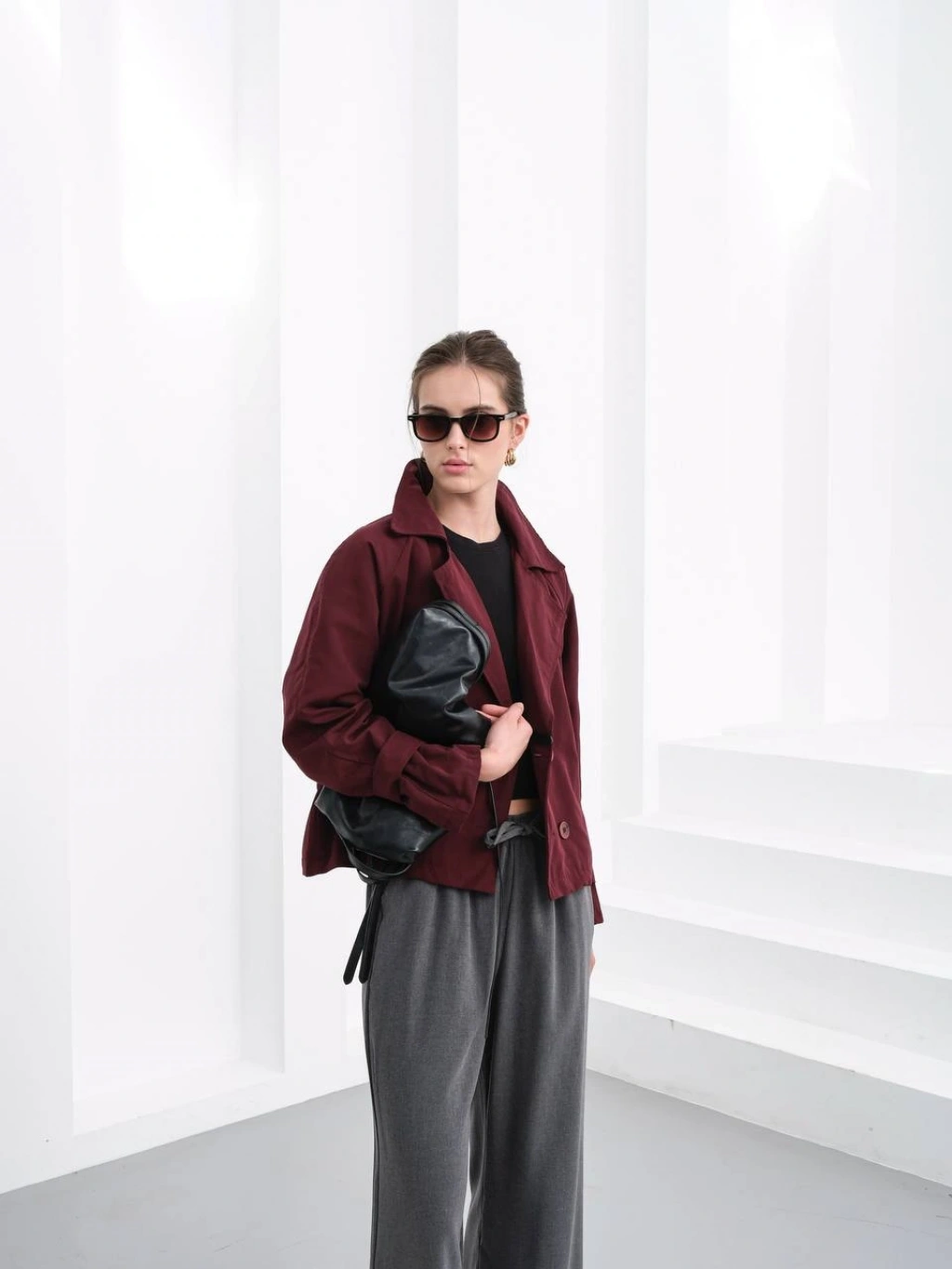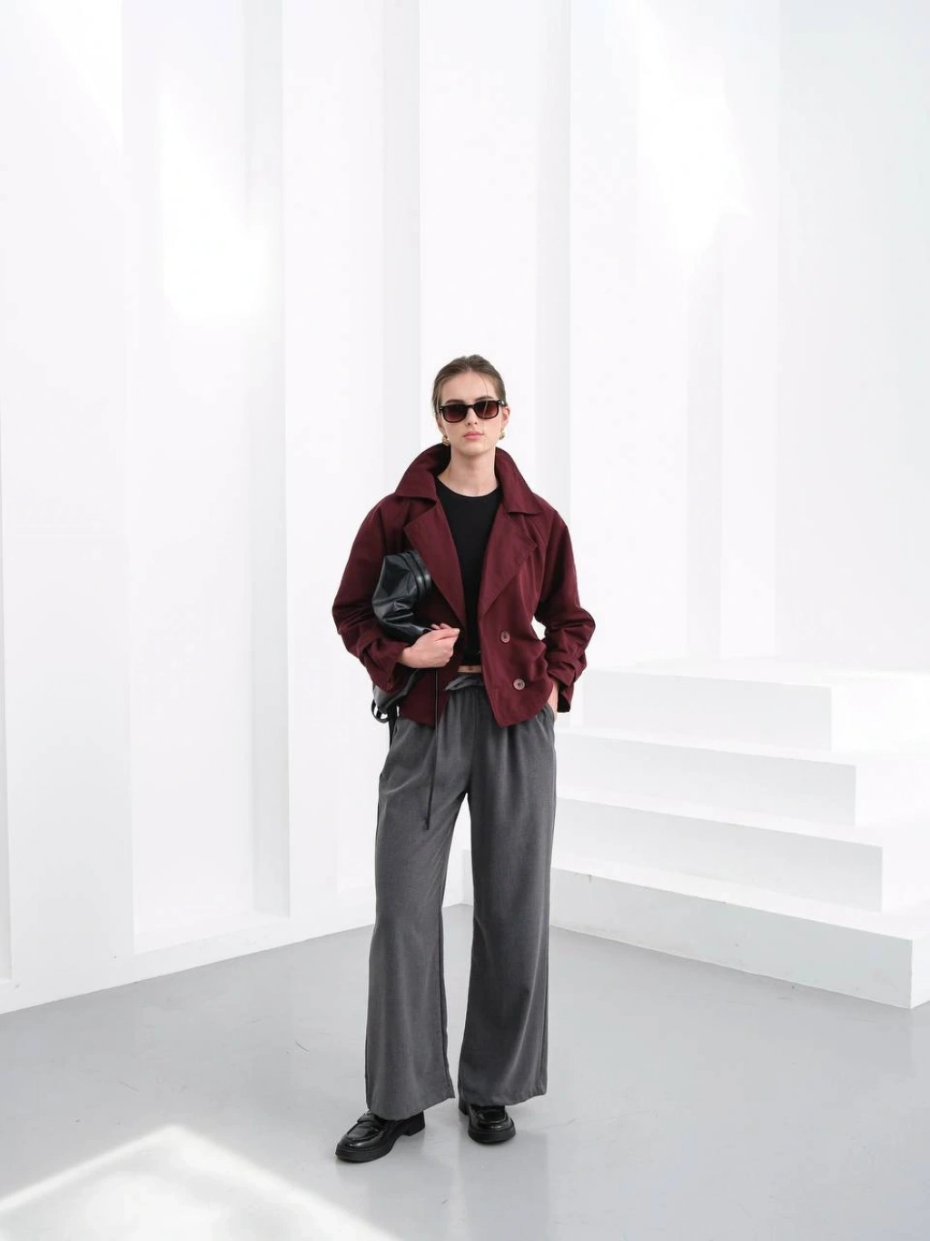Kadın Çift Düğme detaylı Kruvaze Yaka Astarlı Kısa Premium Kalite Trençkot Ceket