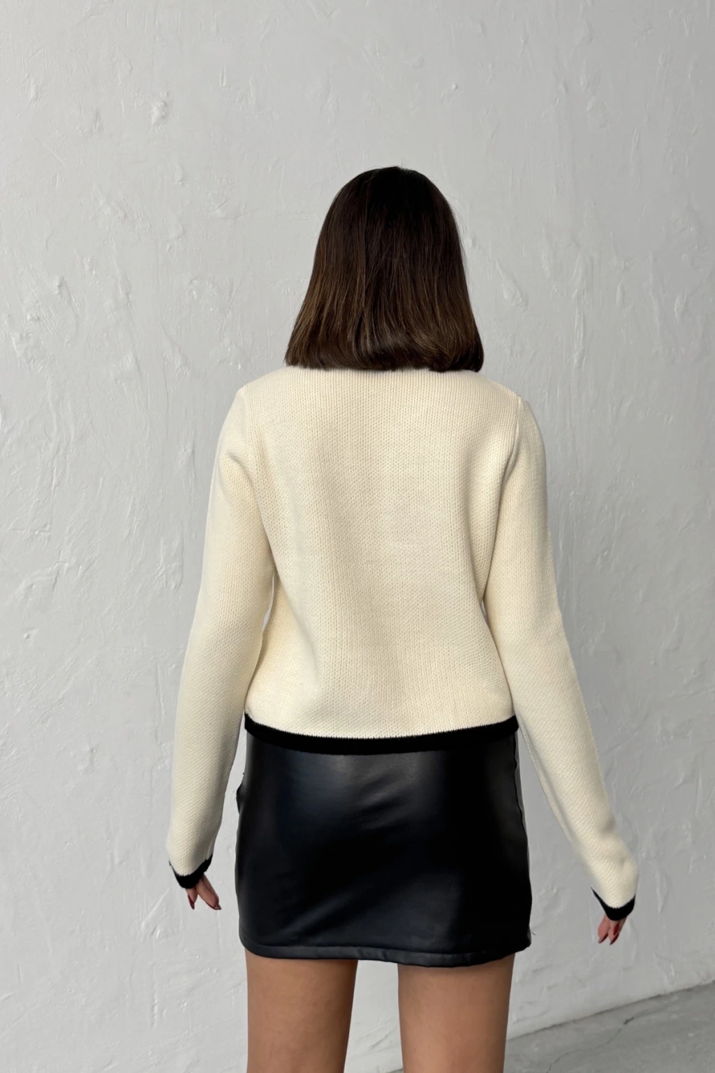 Kadın Beyaz Şık Yaka Detaylı Premium Yumoş Uzun Triko Hırka