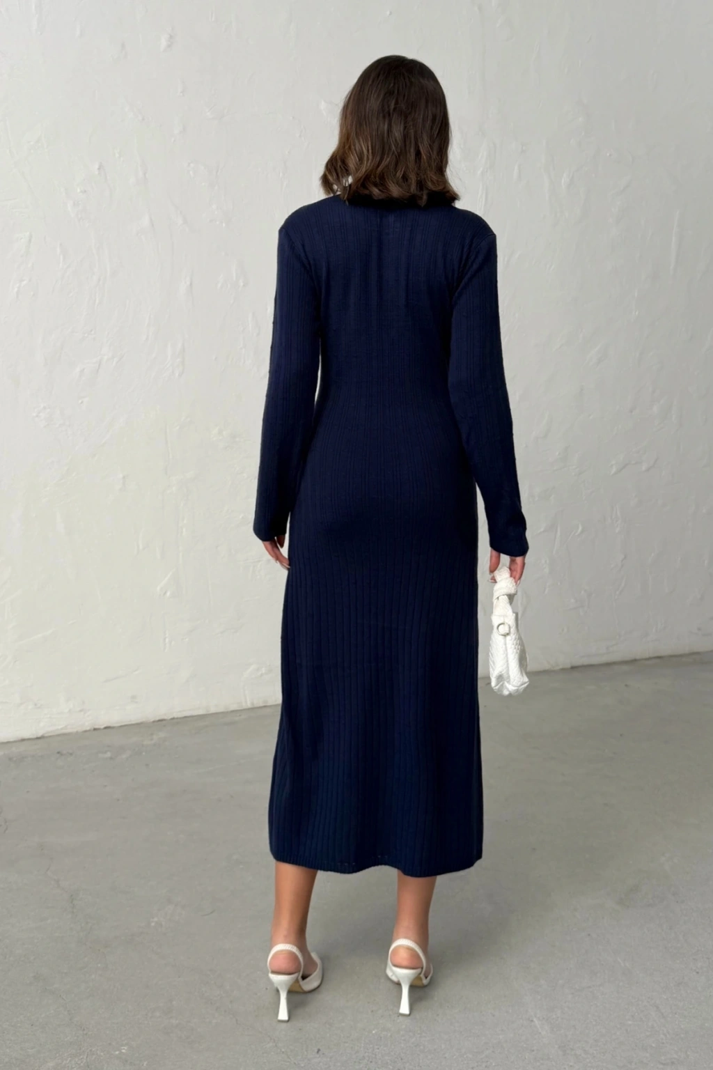 Kadın Lacivert Şık Düğme Ve Kol Detaylı Triko Elbise