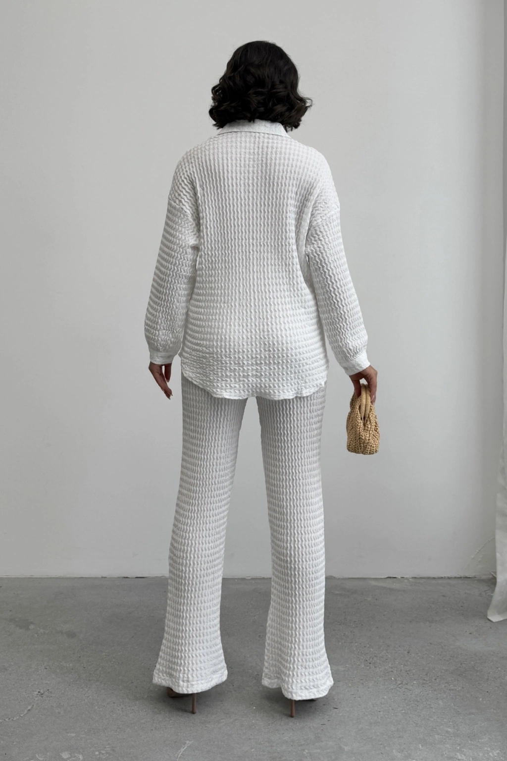 Kadın Çizgili Gipeli Gömlek Geniş Paça Pantolon İkili Takım