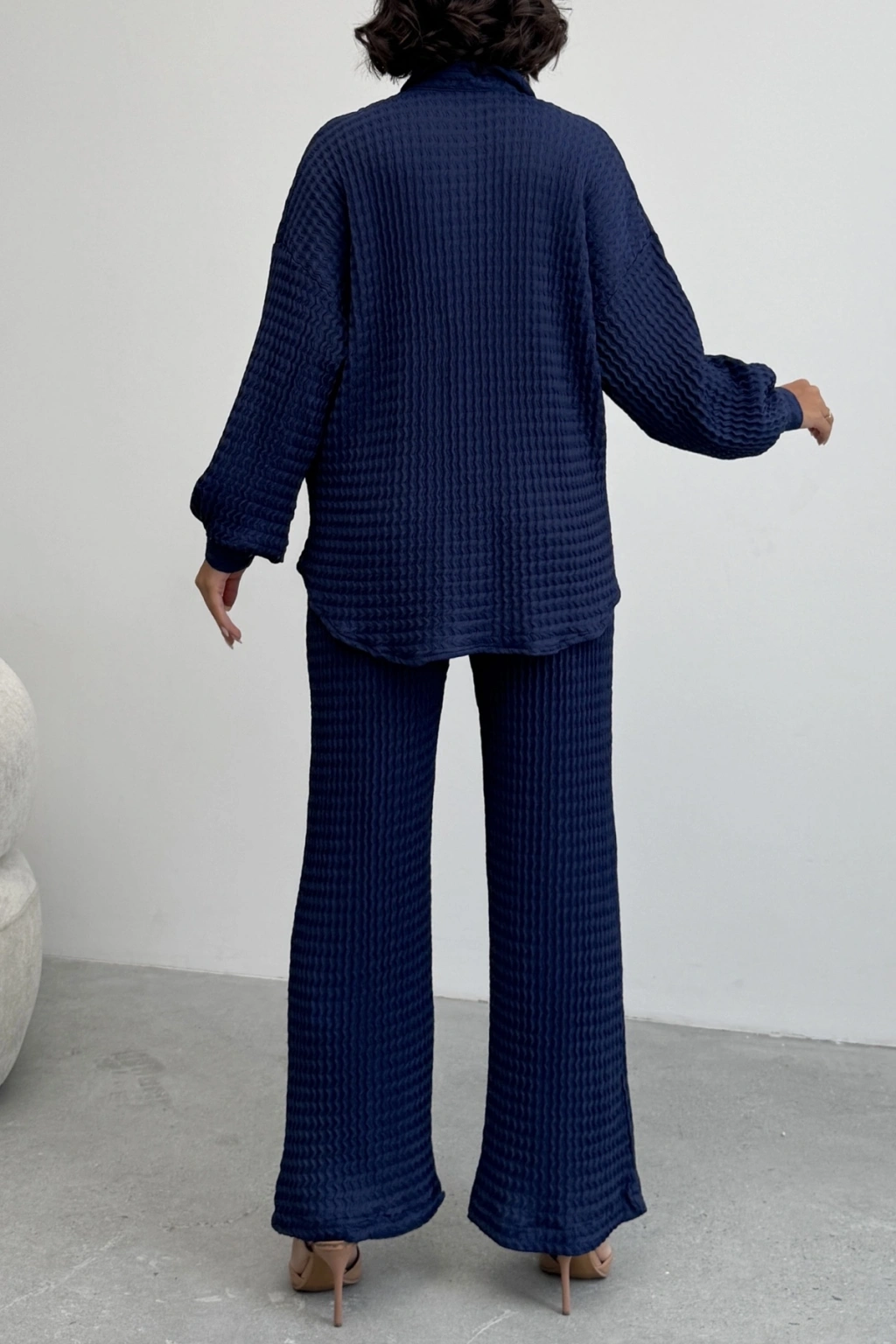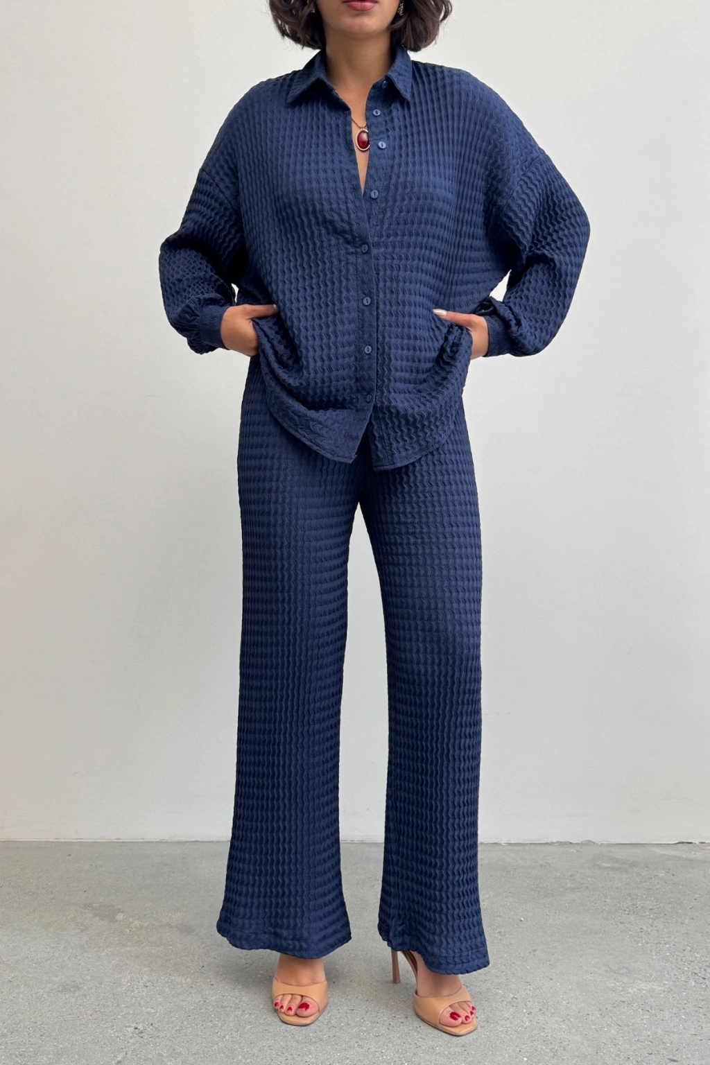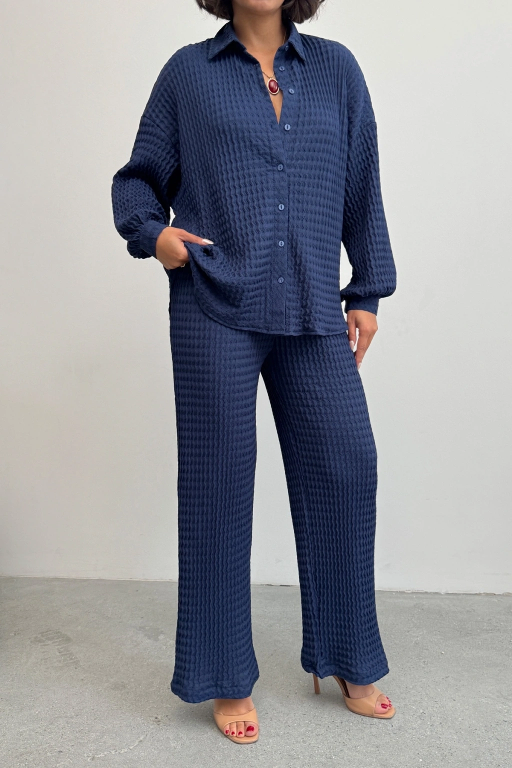 Kadın Lacivert Yumuşak Dokulu Gömlek Pantolon İkili Premium Kalite Takım
