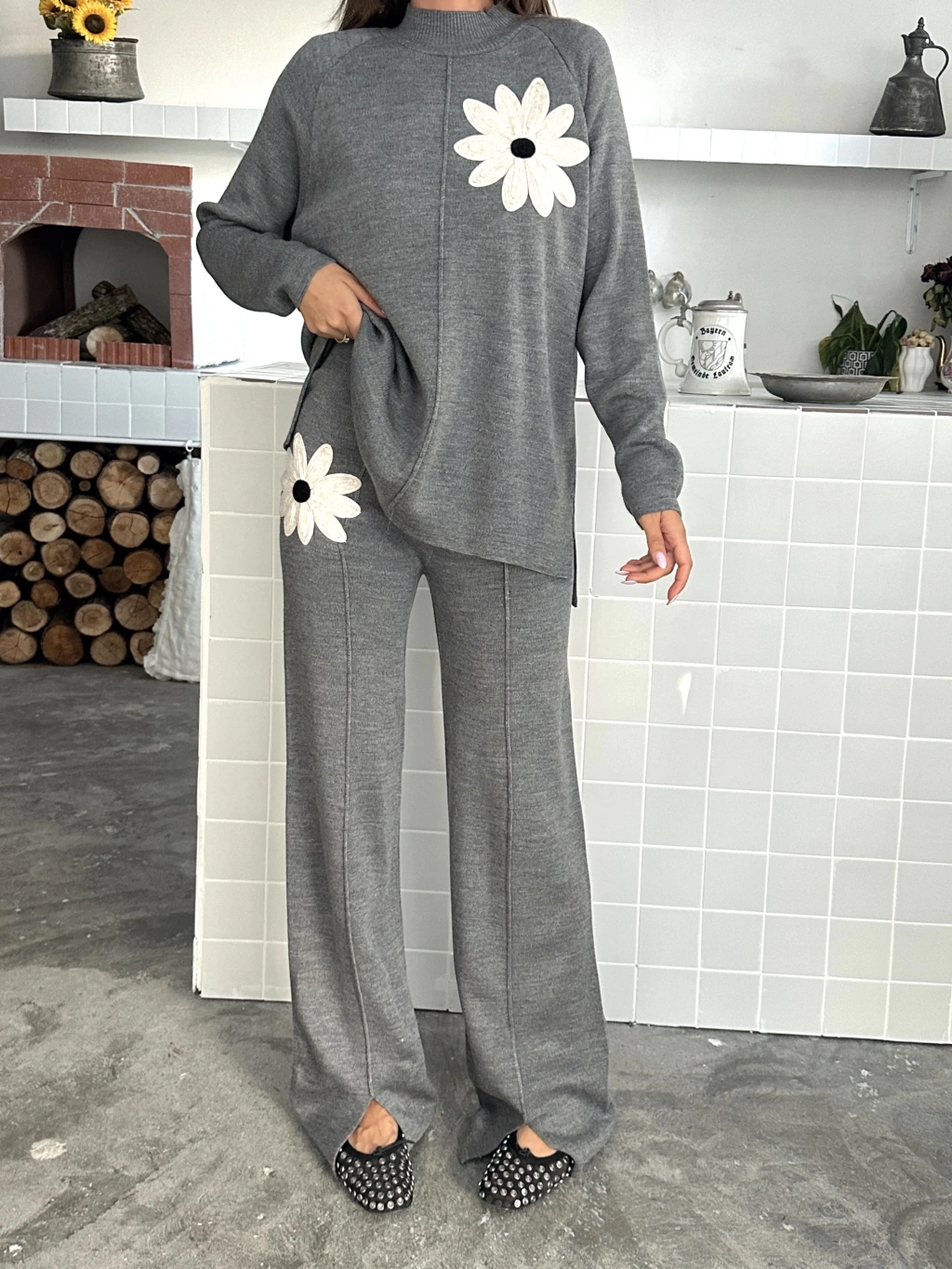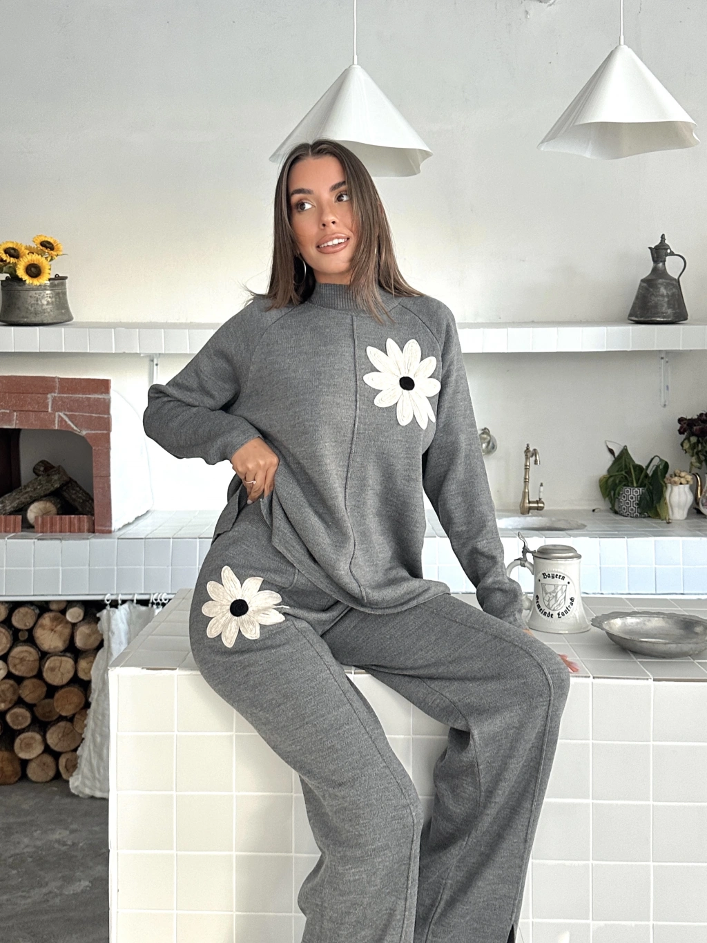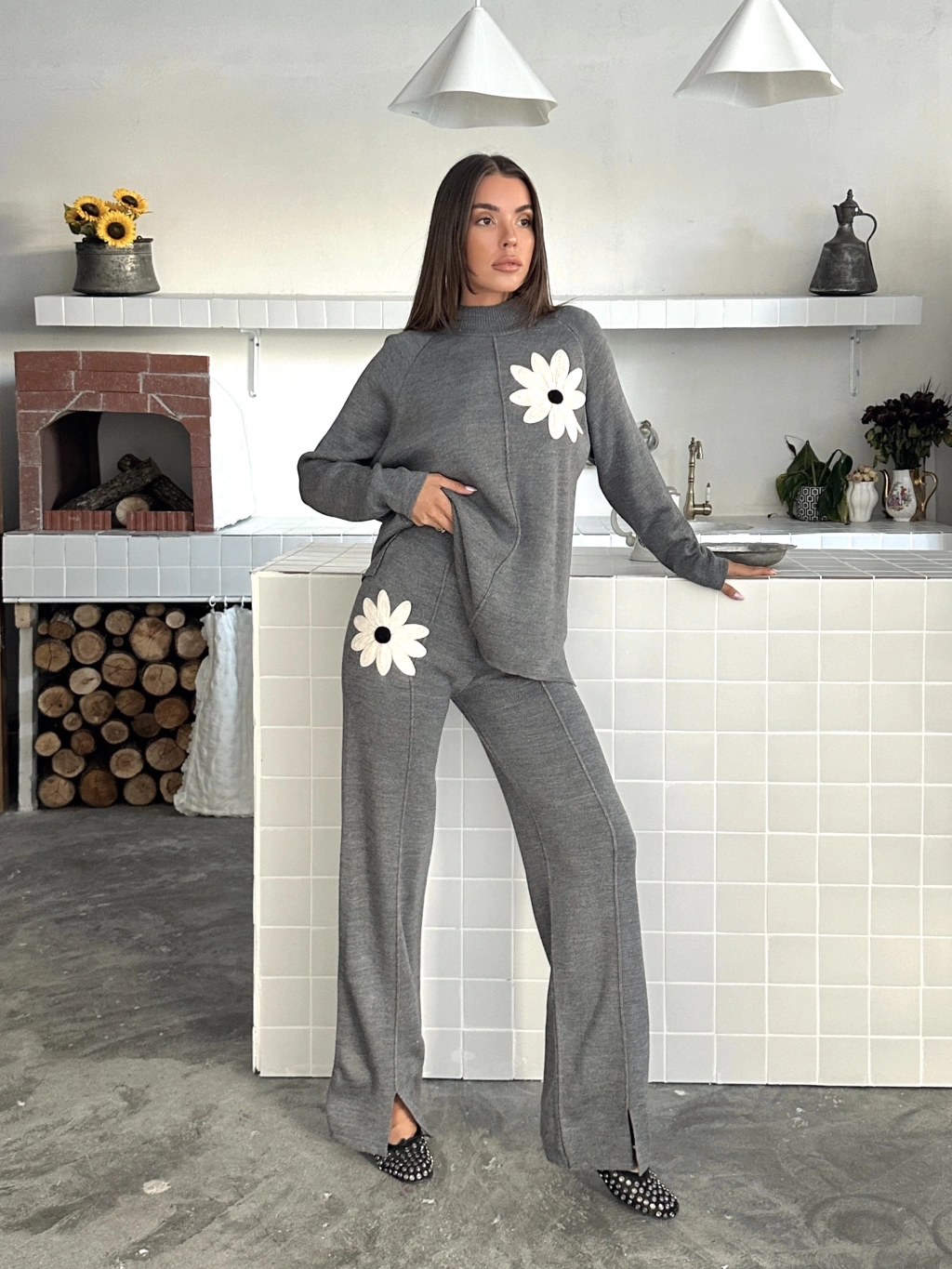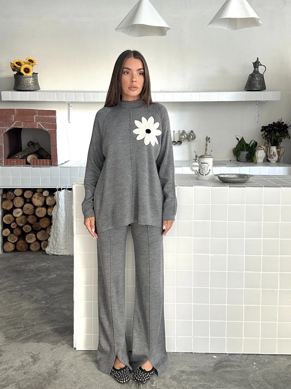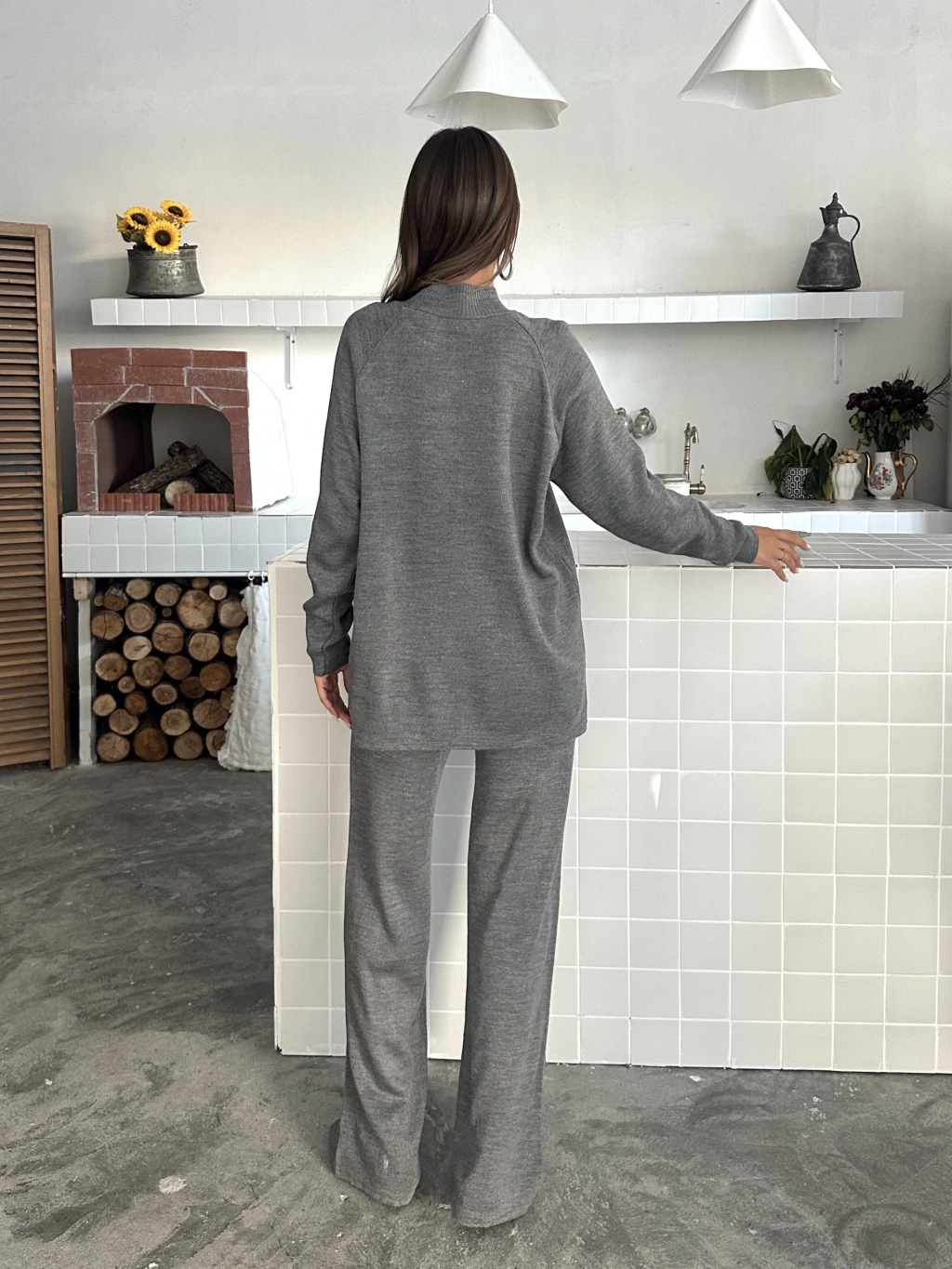 Şıklık ve konfor bir arada! Gri renkteki bu modern triko takım, zarif yarım balıkçı yaka kazak ve uyumlu yüksek bel pantolondan oluşuyor. Hem günlük kullanımda hem de ofis stilinizde rahatlıkla tercih edebileceğiniz bu takım, soğuk havalarda sizi sıcak tutarken stilinizden de ödün vermemenizi sağlar.