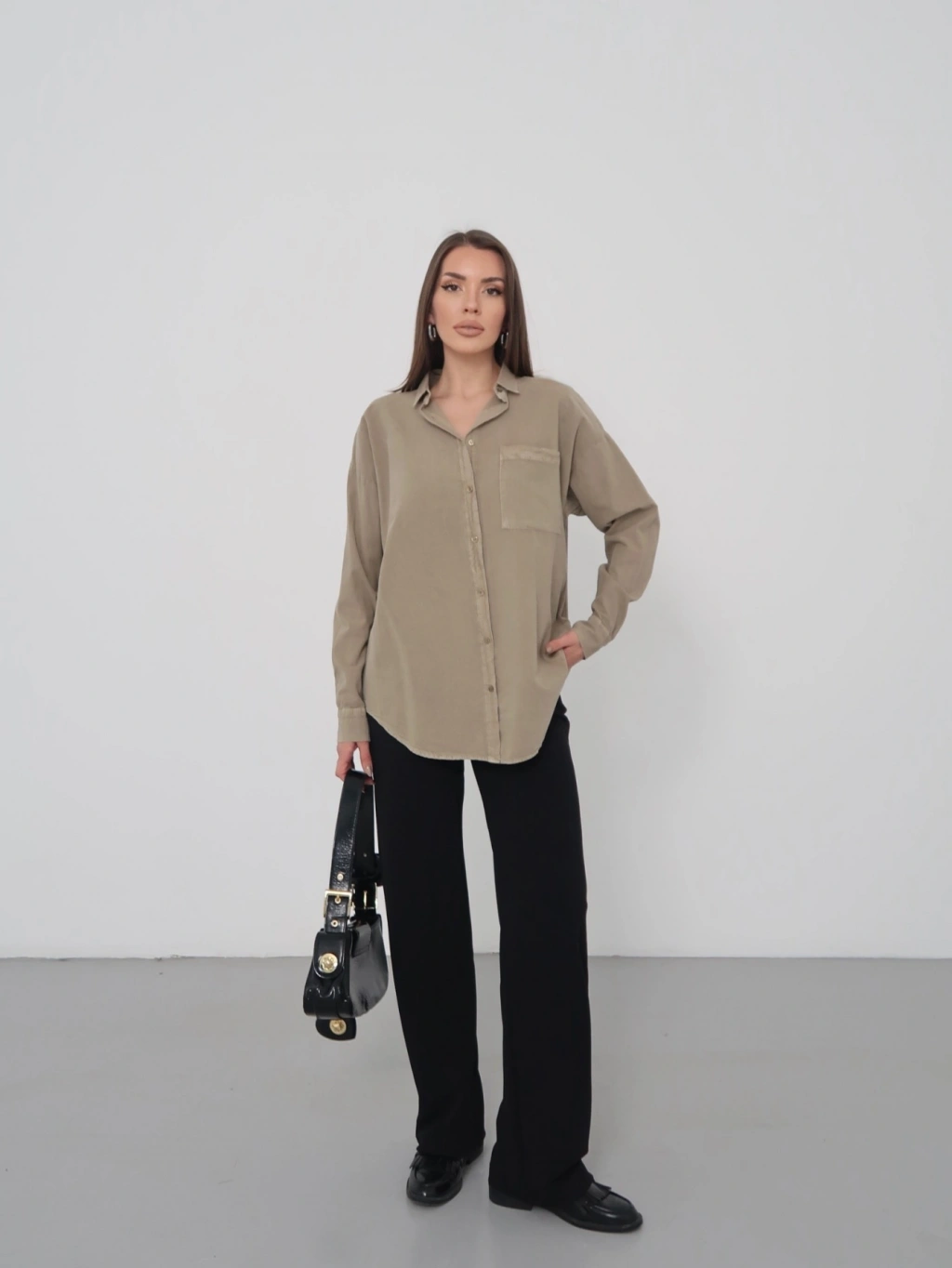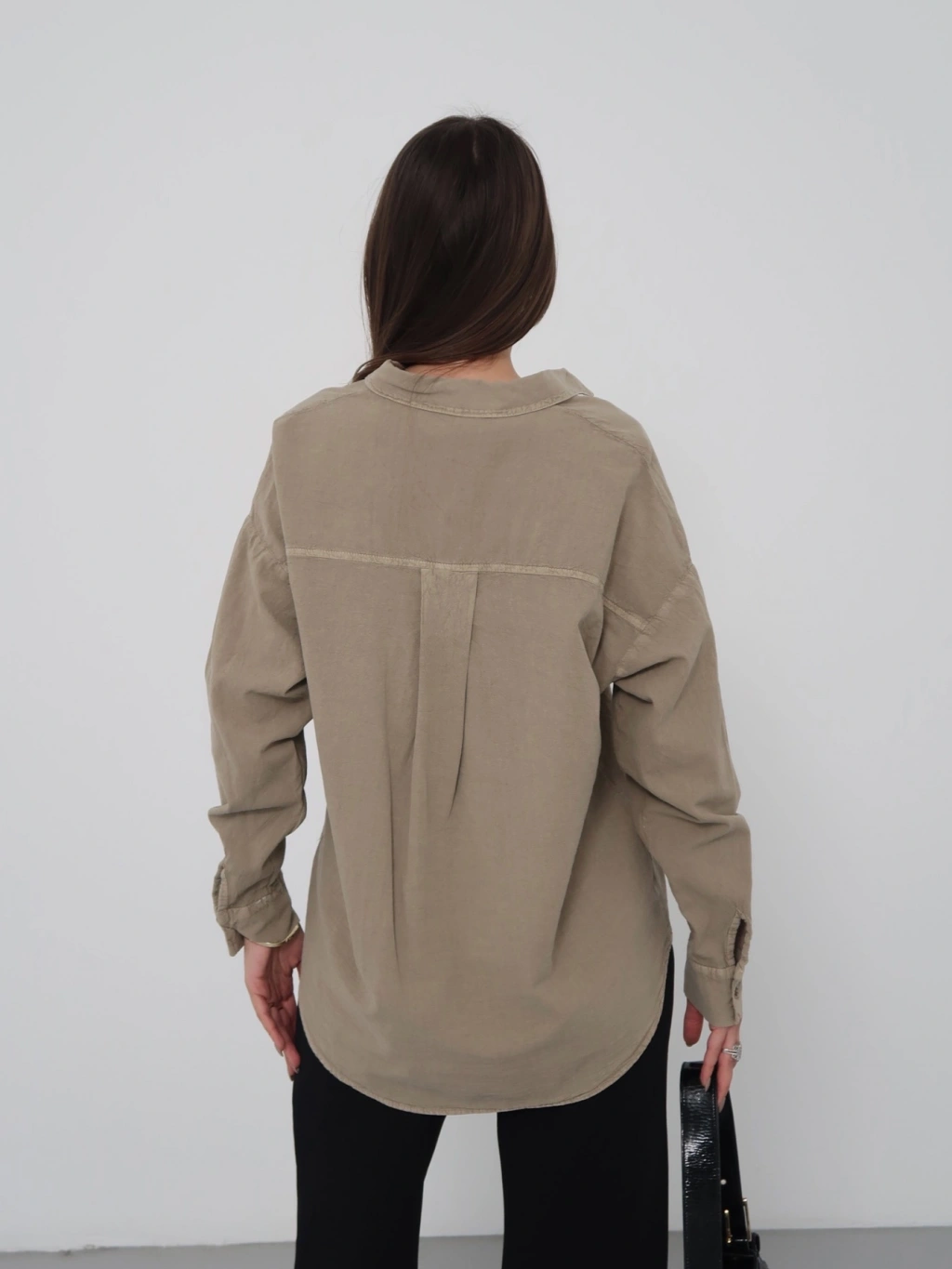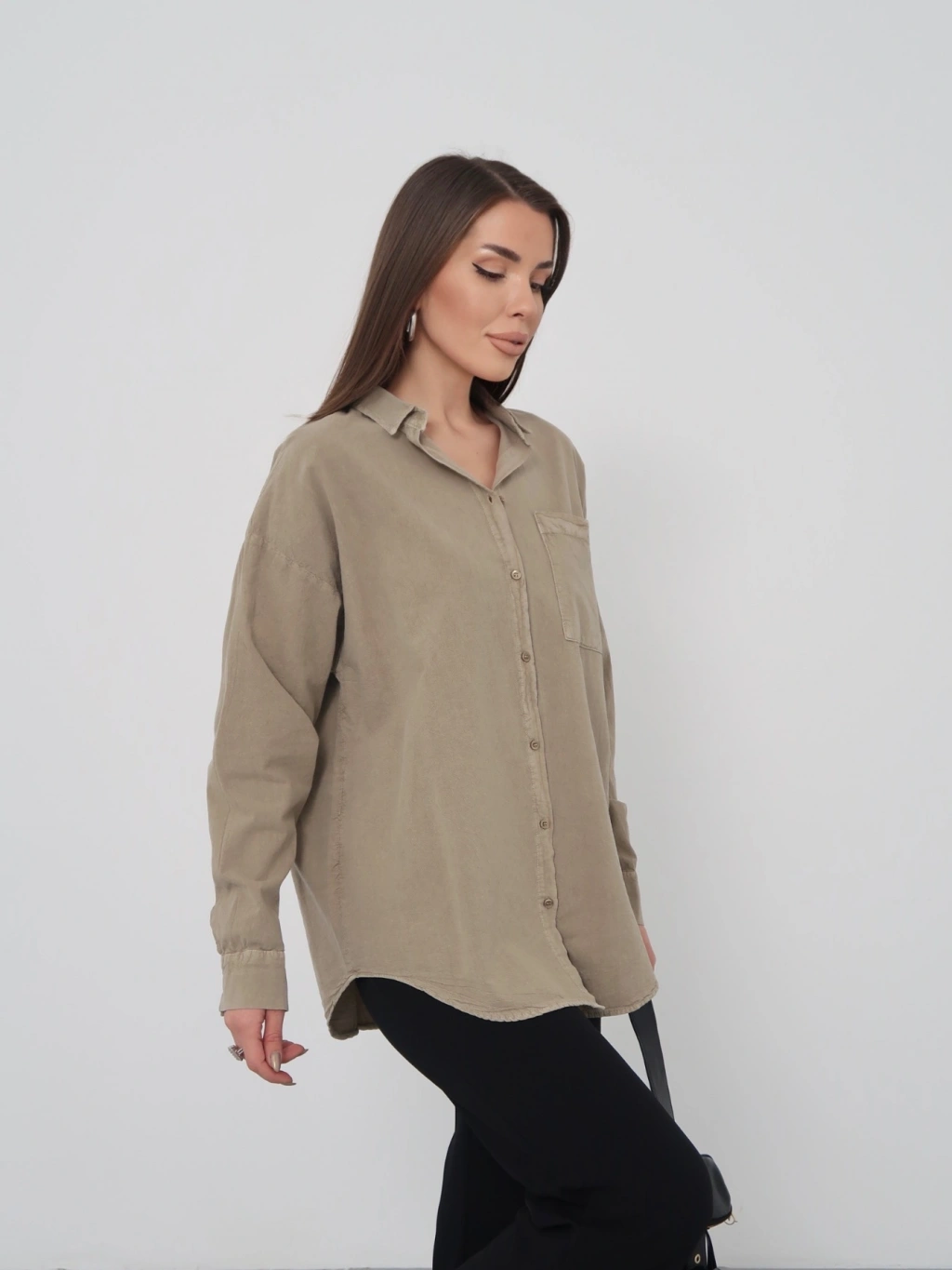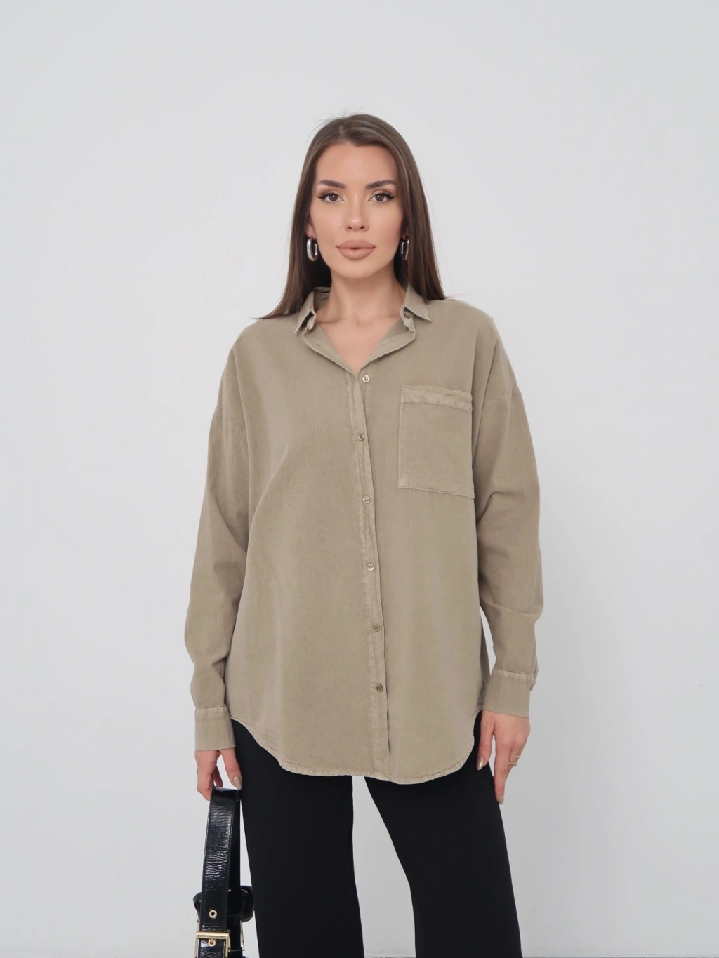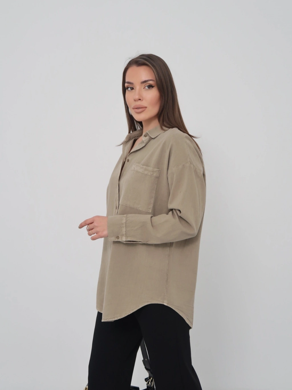 Kadın Haki Ham Kumaş Cepli Gömlek