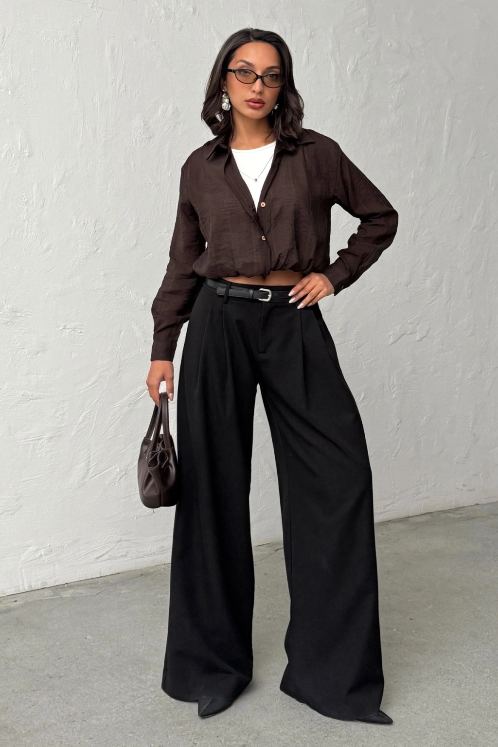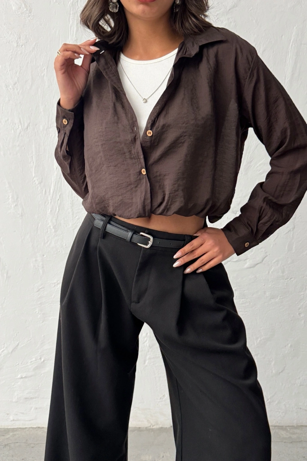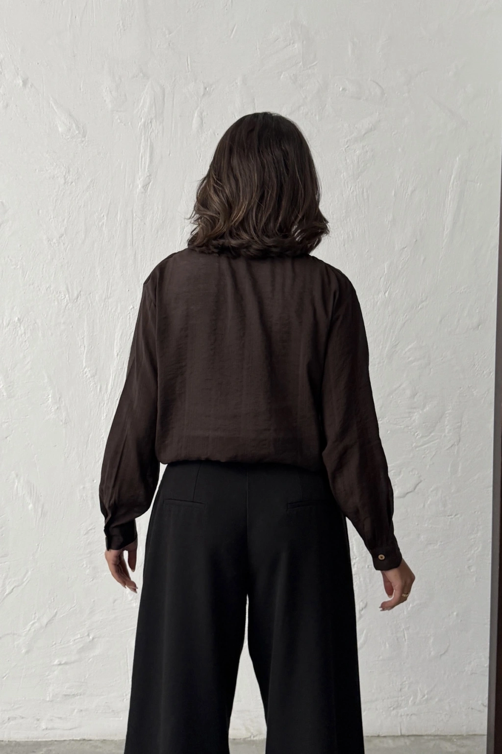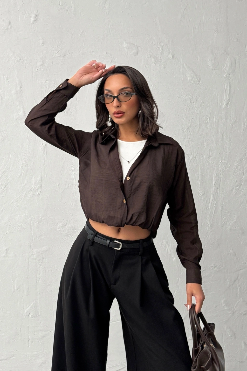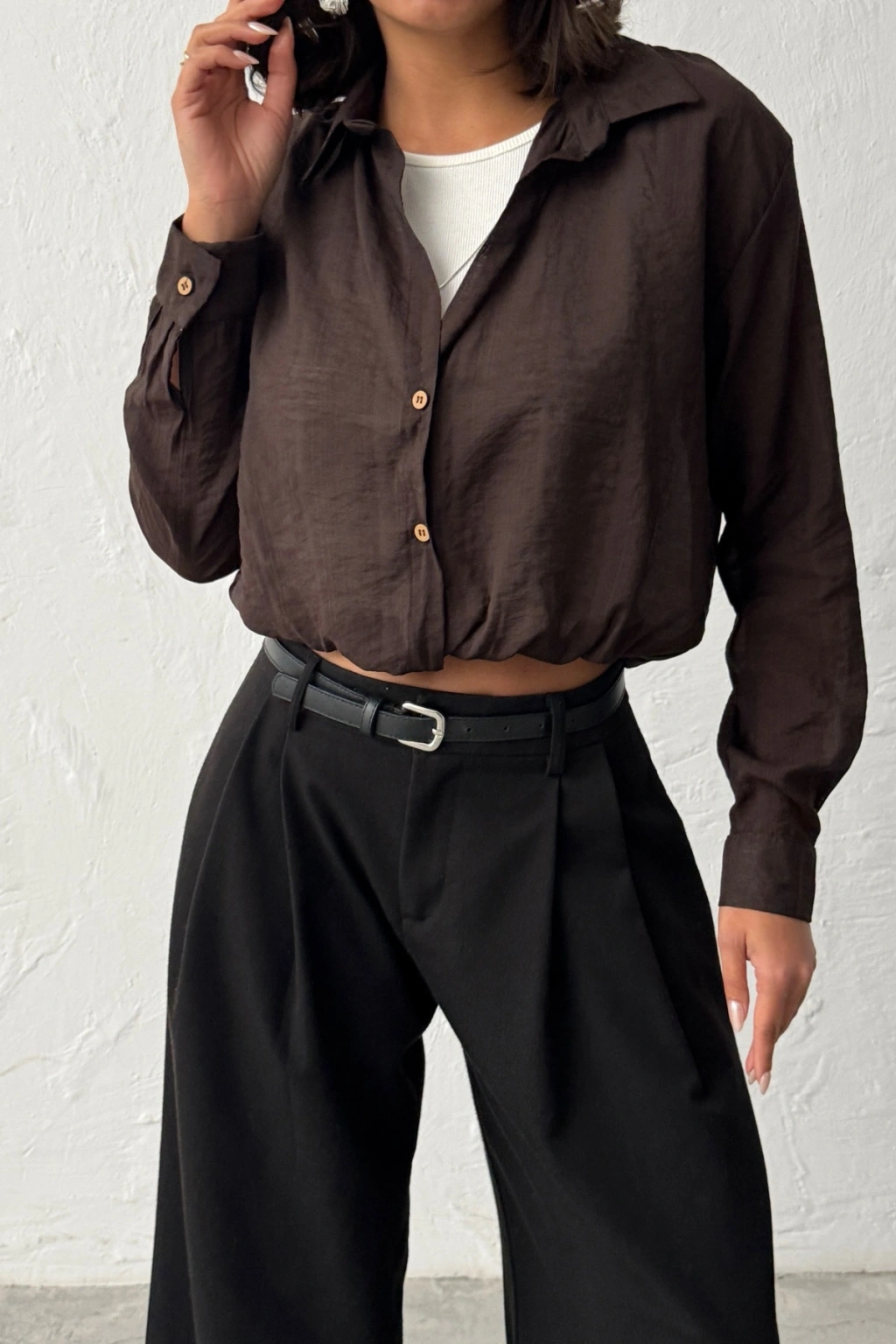 Kadın Kahverengi Fiyonk ve Detaylı Şık Gömlek