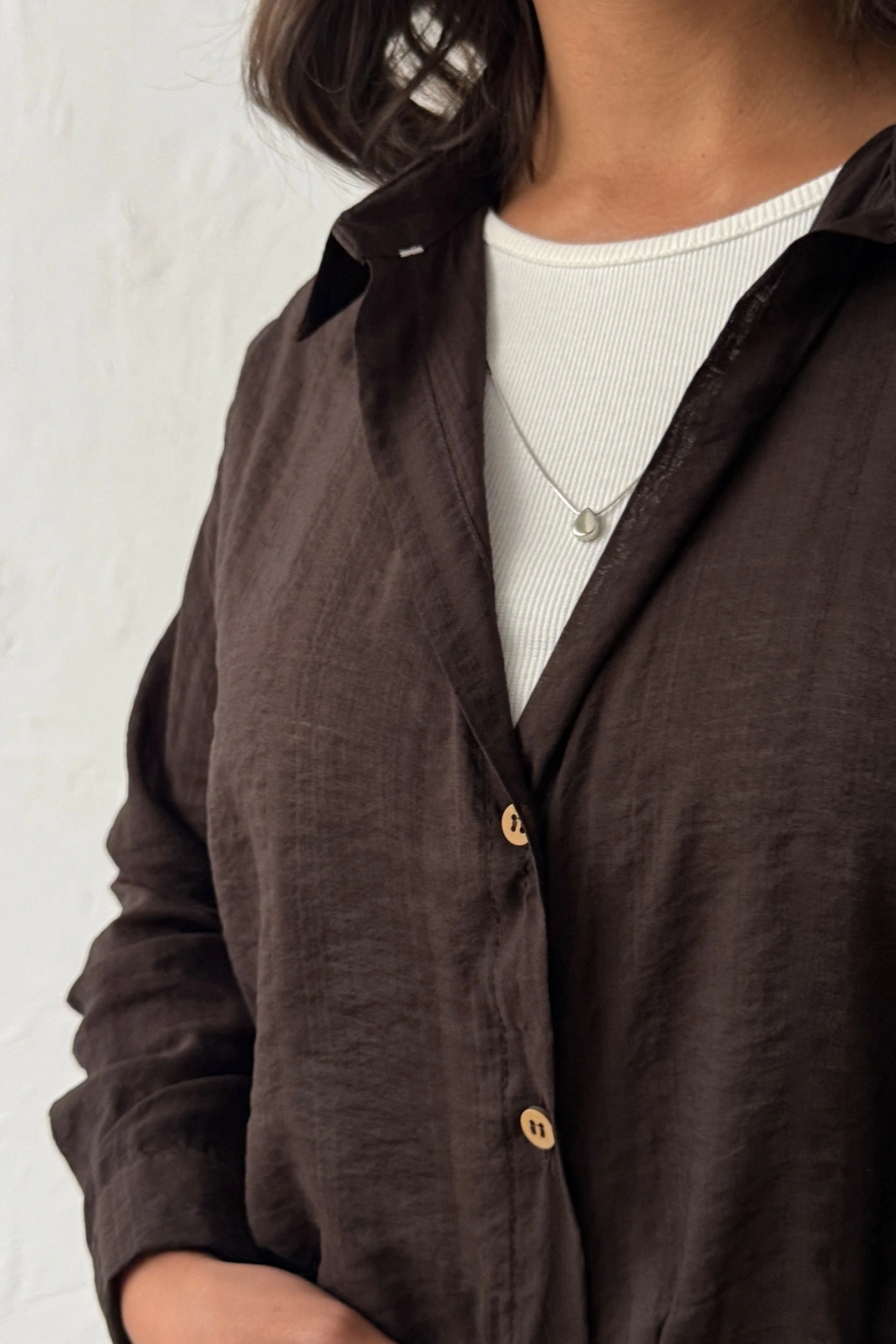 Kadın Kahverengi 3’lü Yapışık Set Body ve Kolyeli Gömlek