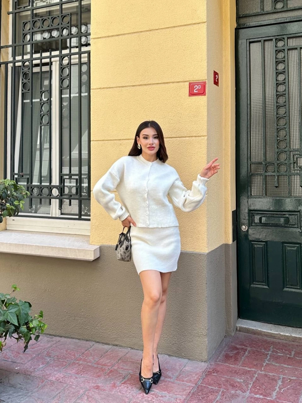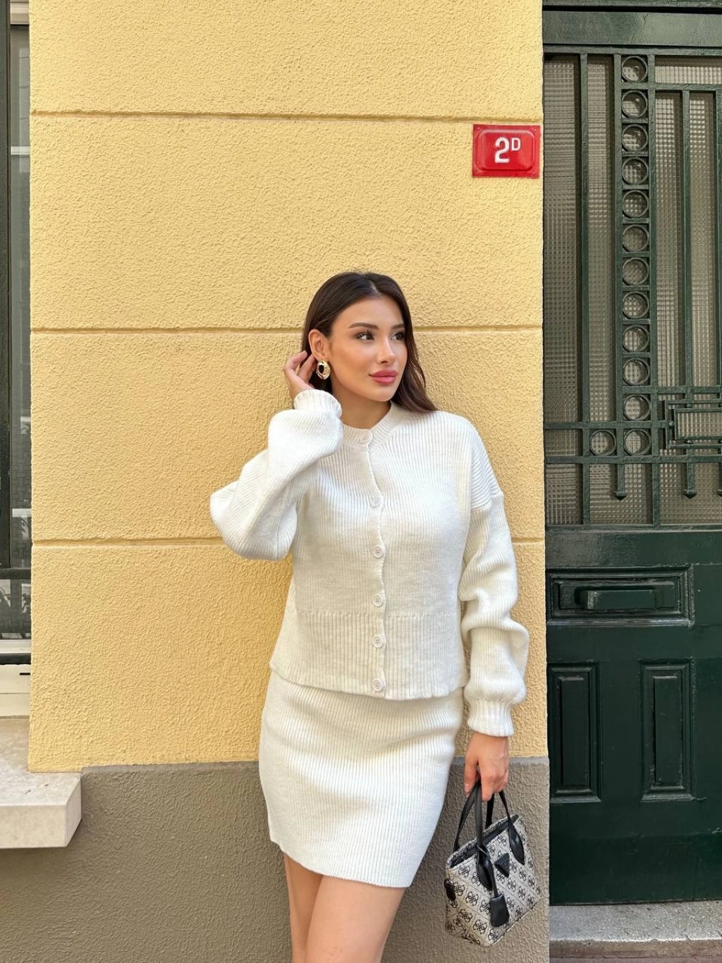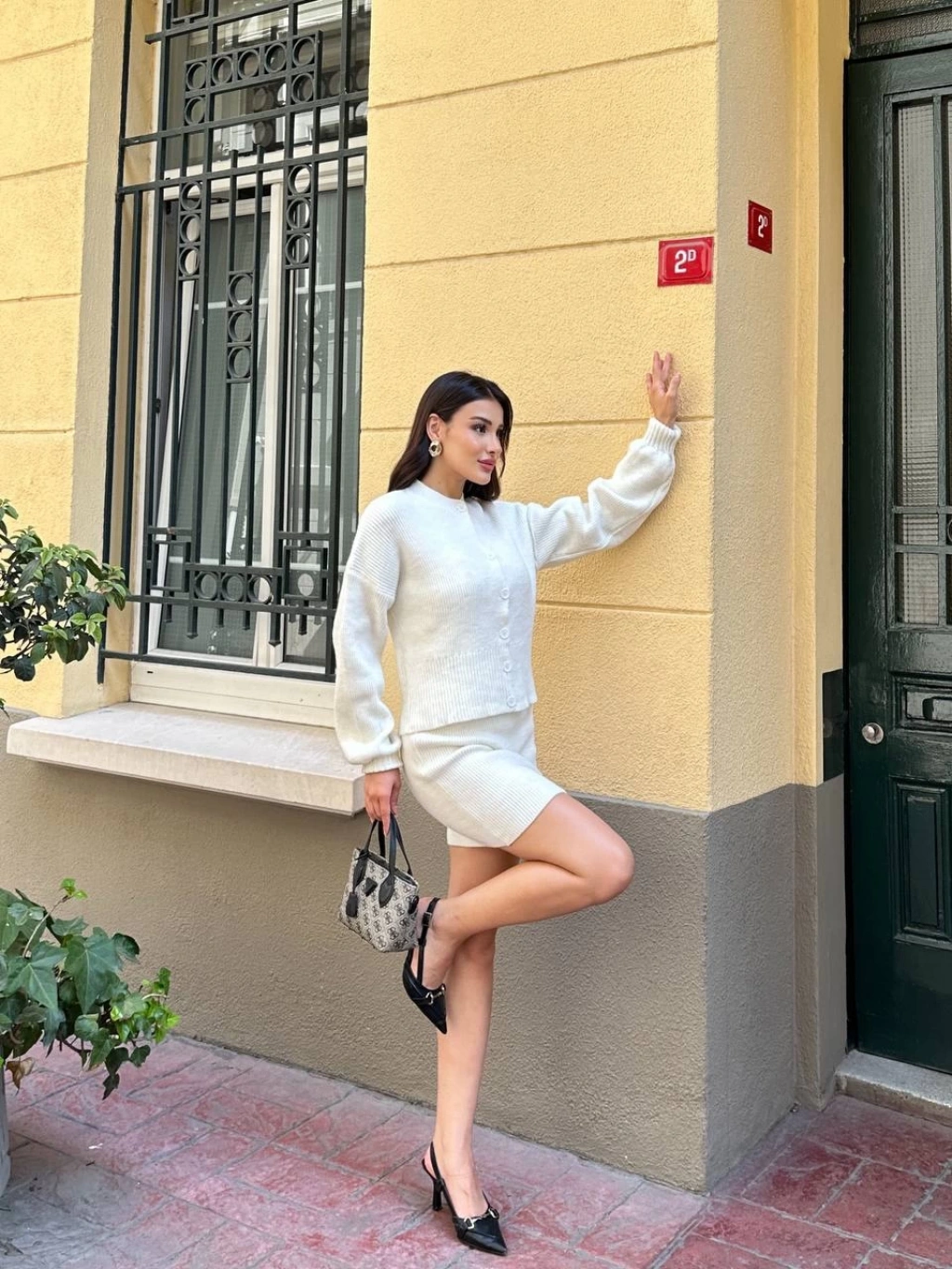 Hem şık hem zahmetsiz bir görünüm için gardırobunuza bu ikili triko takımı mutlaka ekleyin. Sade şıklığın gücünü üzerinizde hissedin