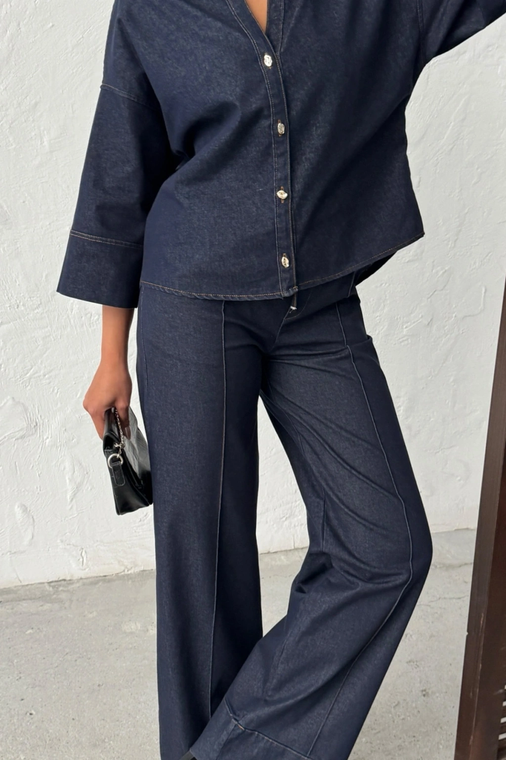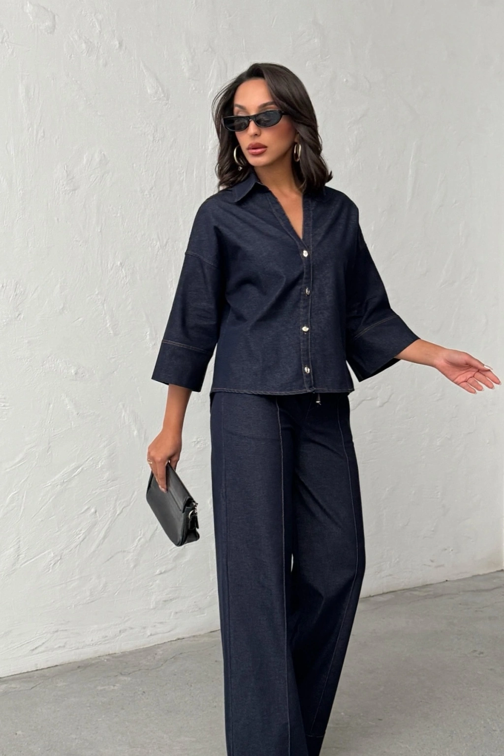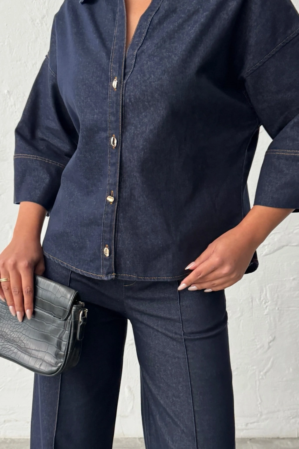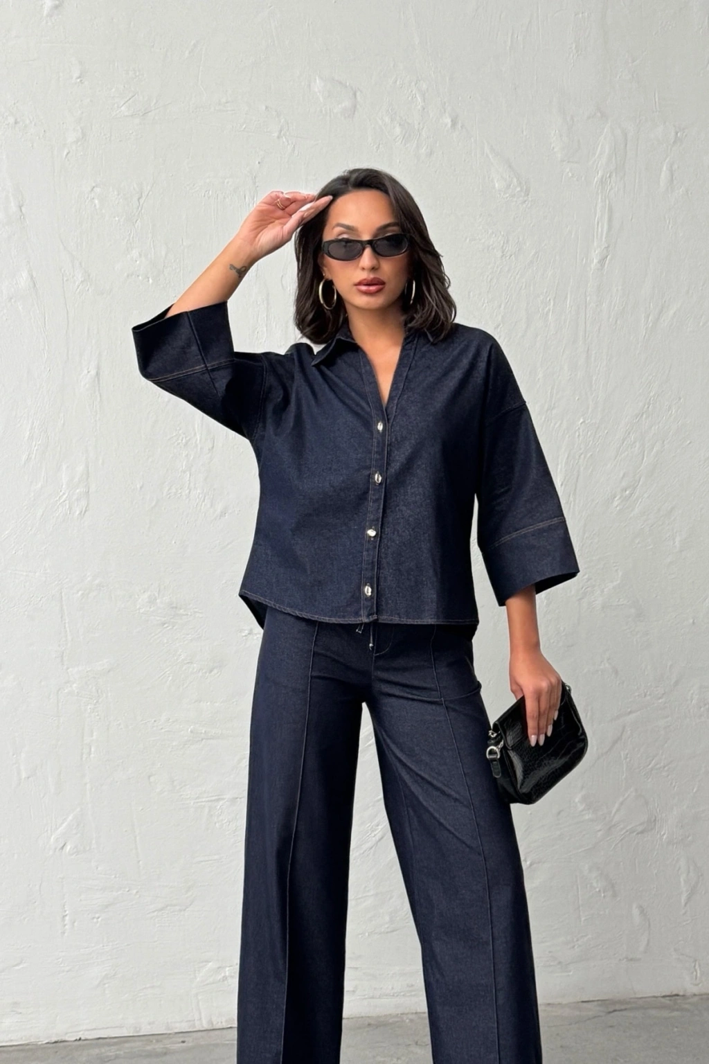 Kadın Lacivert Gömlek Pantolon Premium Kalite Alt üst ikili Takım