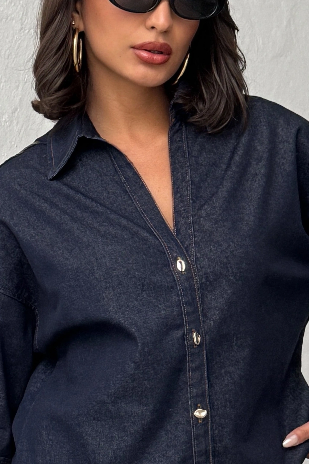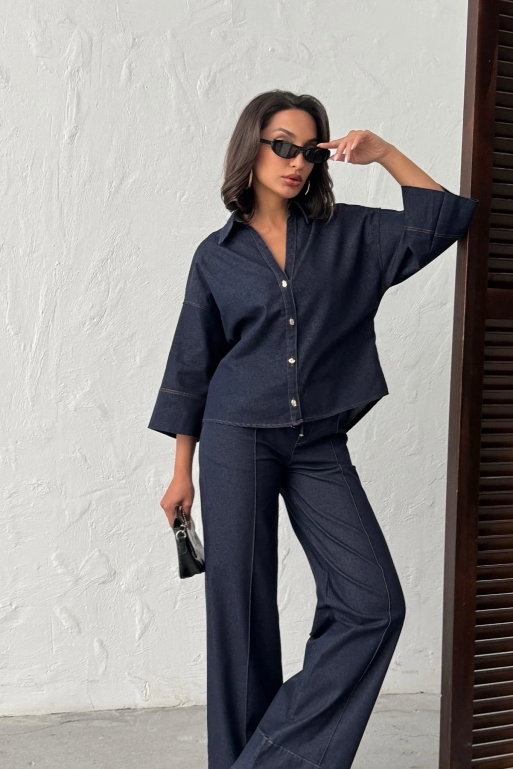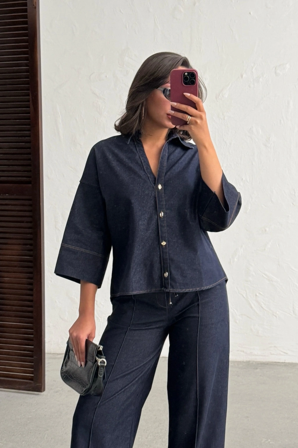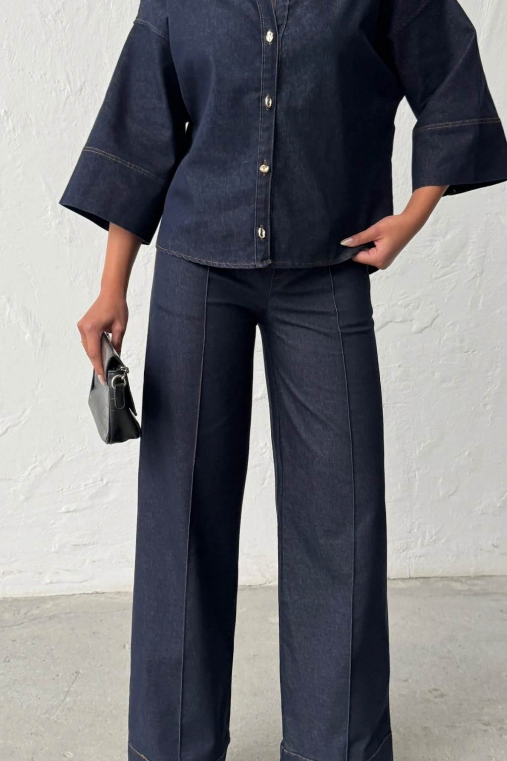 Kadın Lacivert Gömlek Pantolon Premium Kalite Alt üst ikili Takım