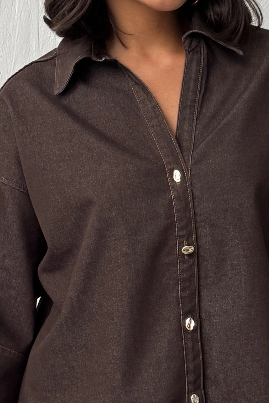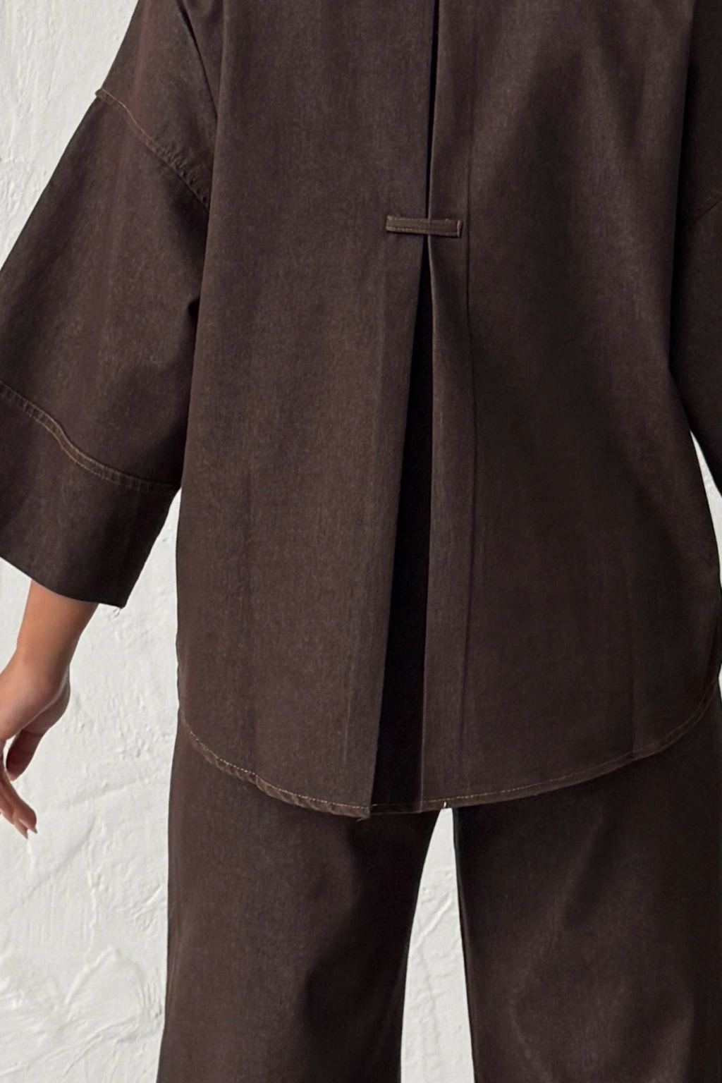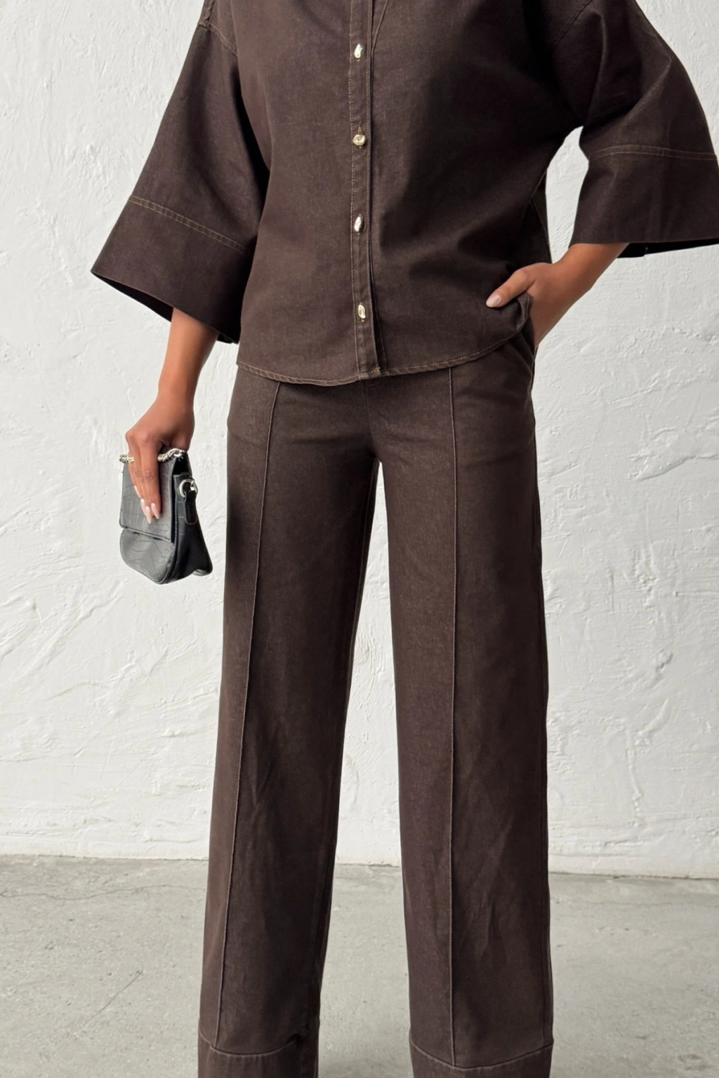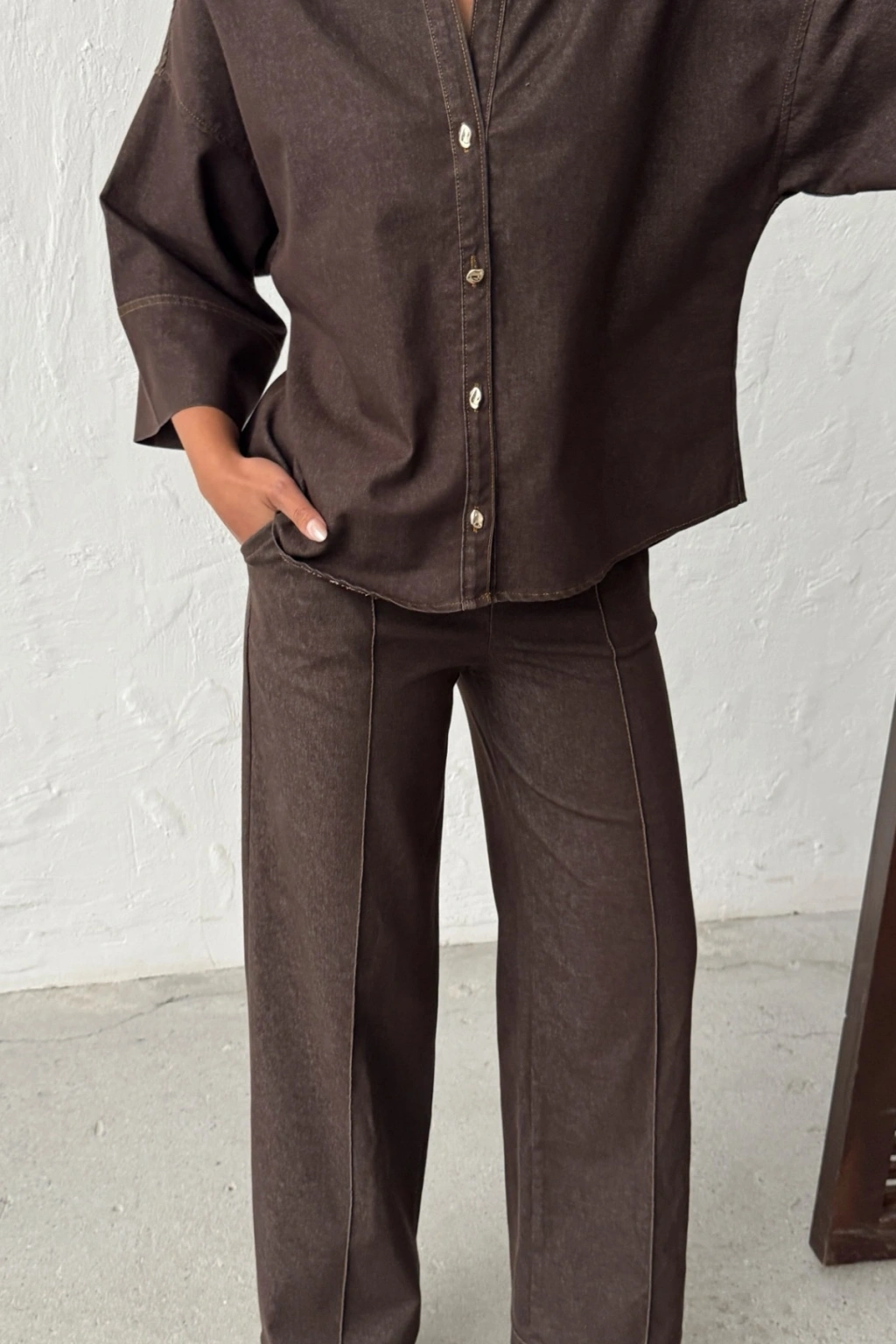 Kadın Kahverengi Gömlek Pantolon Premium Kalite Alt üst ikili Takım