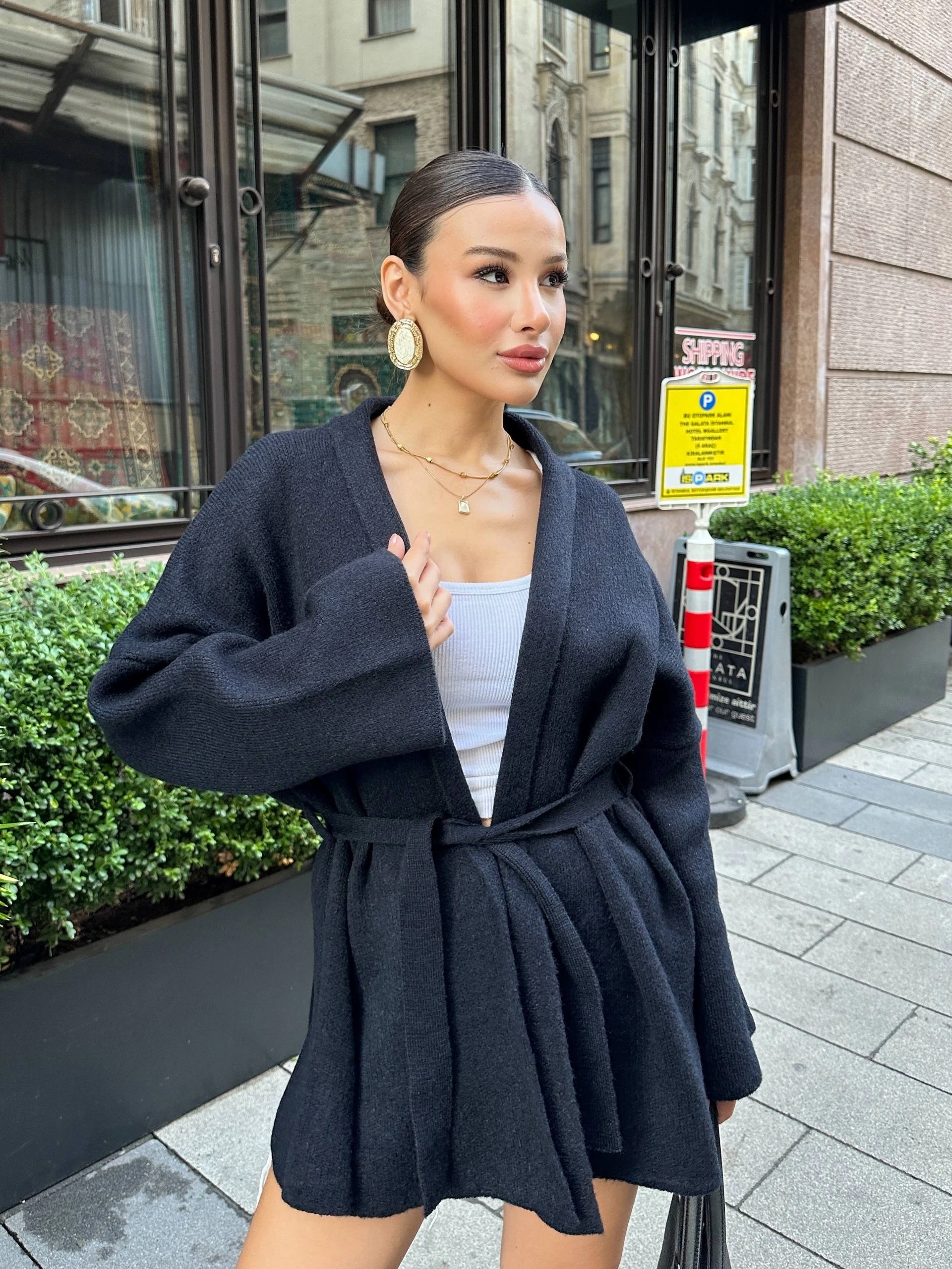 Modern ve zarif bir stil arayanlar için tasarlanan Kadın Kemerli Triko Kimono Hırka, gardırobunuzun en şık parçalarından biri olmaya aday. Yumuşak triko dokusu sayesinde gün boyu konfor sunarken, kimono kesimiyle modern bir hava katıyor. Bel kısmındaki kemer detayı, vücut hatlarını zarifçe vurgularken isteğe göre ayarlanabilir formuyla kullanım kolaylığı sağlar.