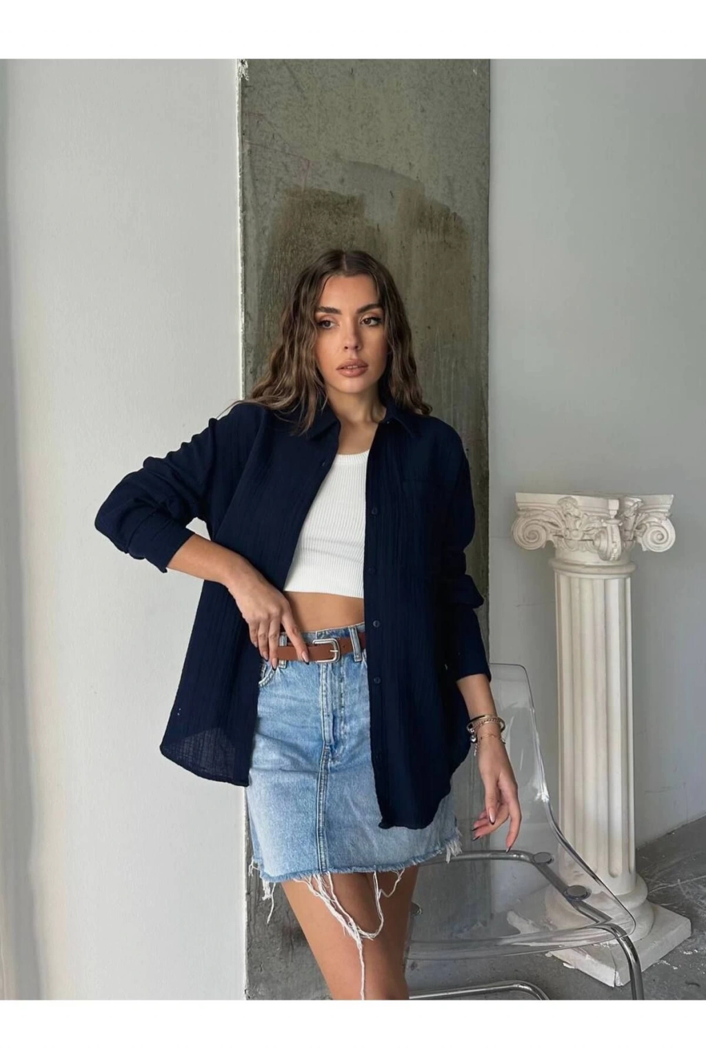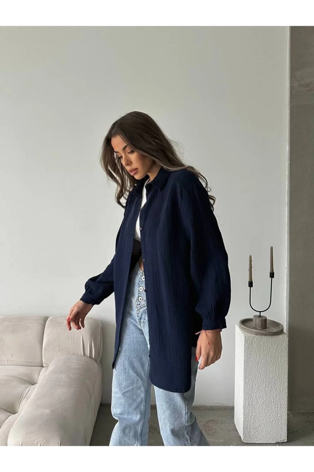 Kadın Lacivert Müslin Kumaş Premium Gömlek