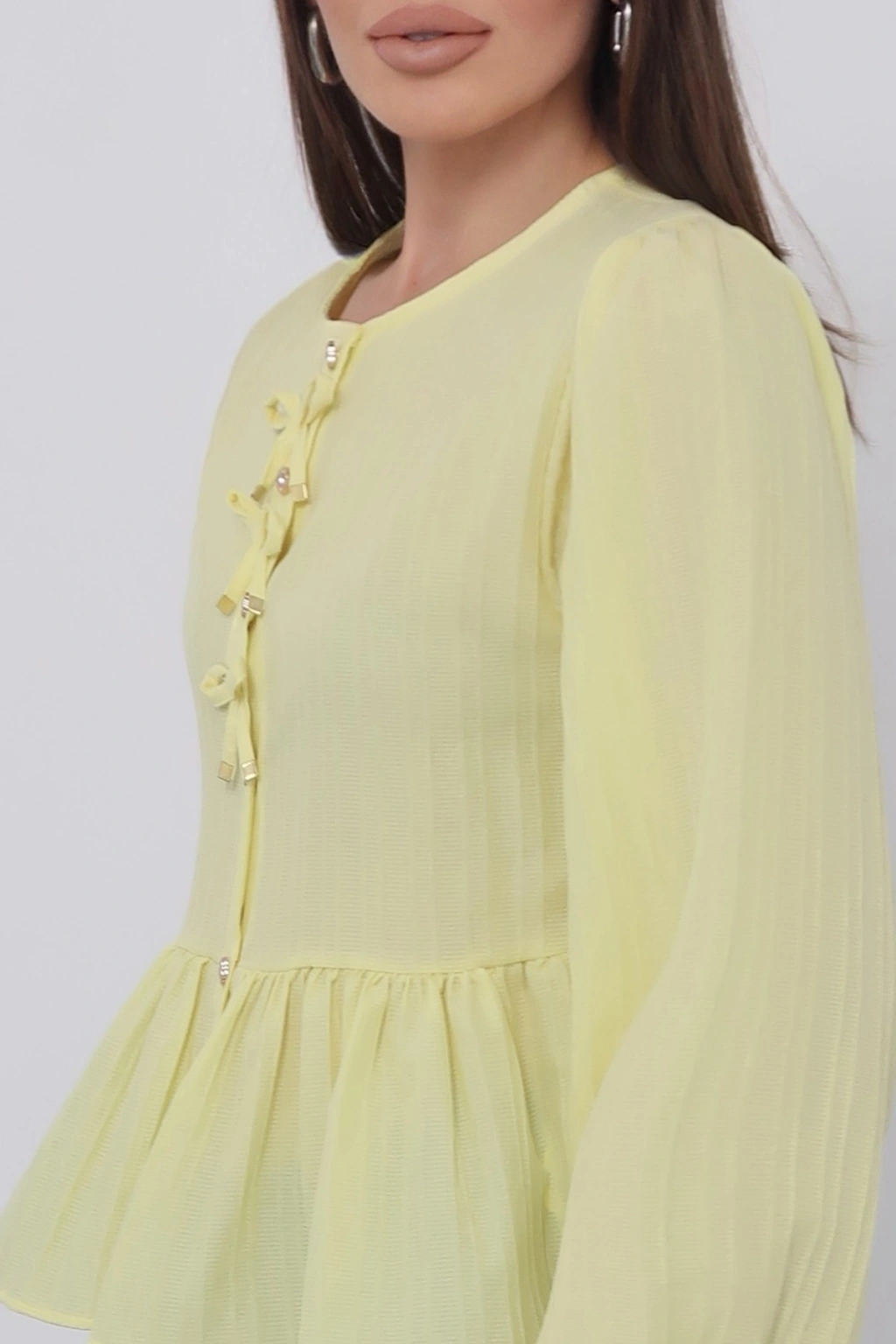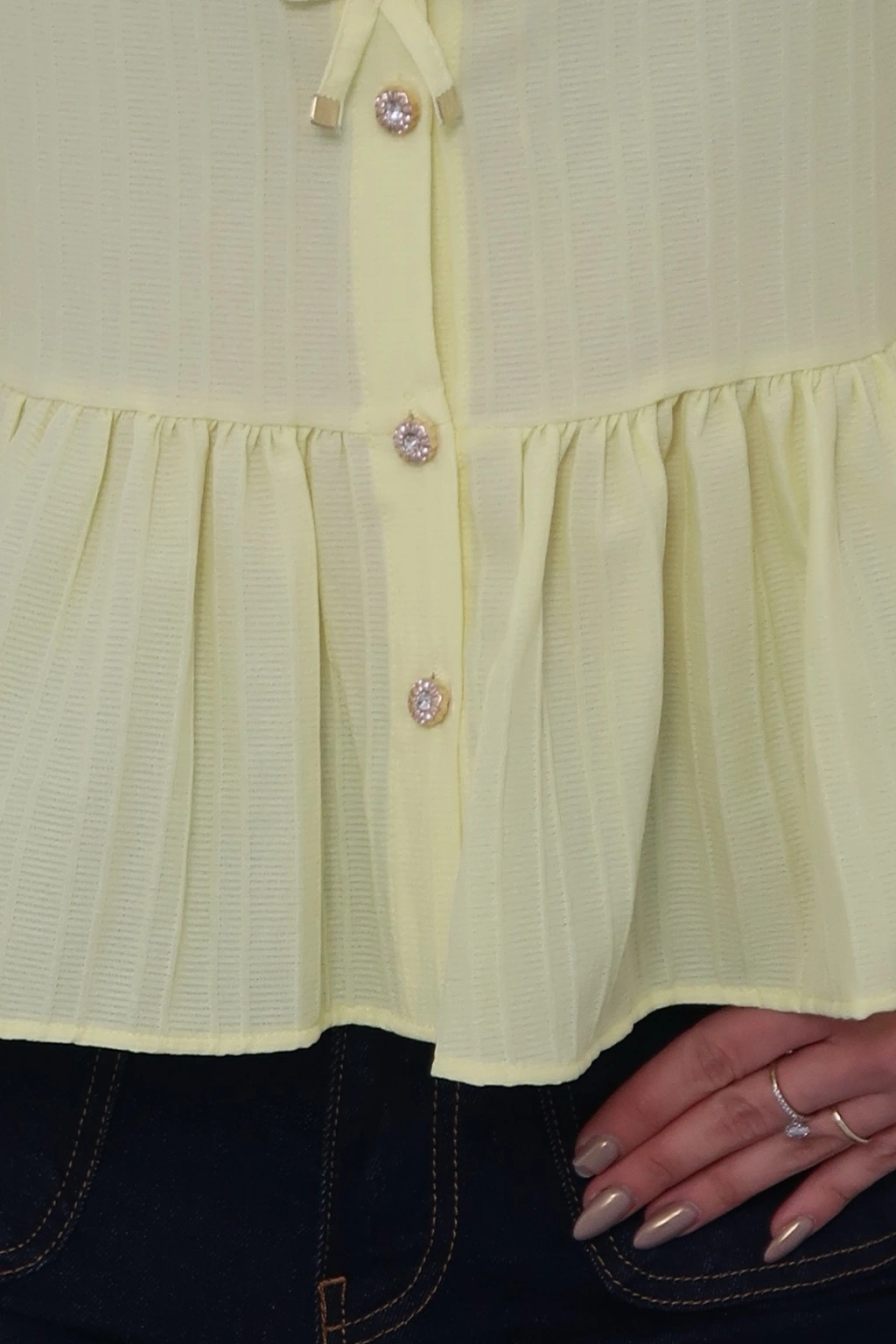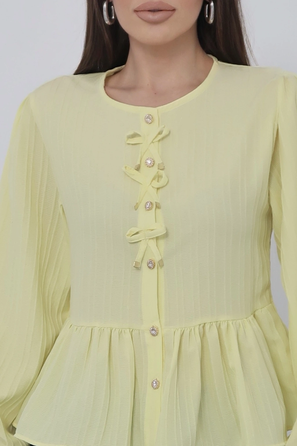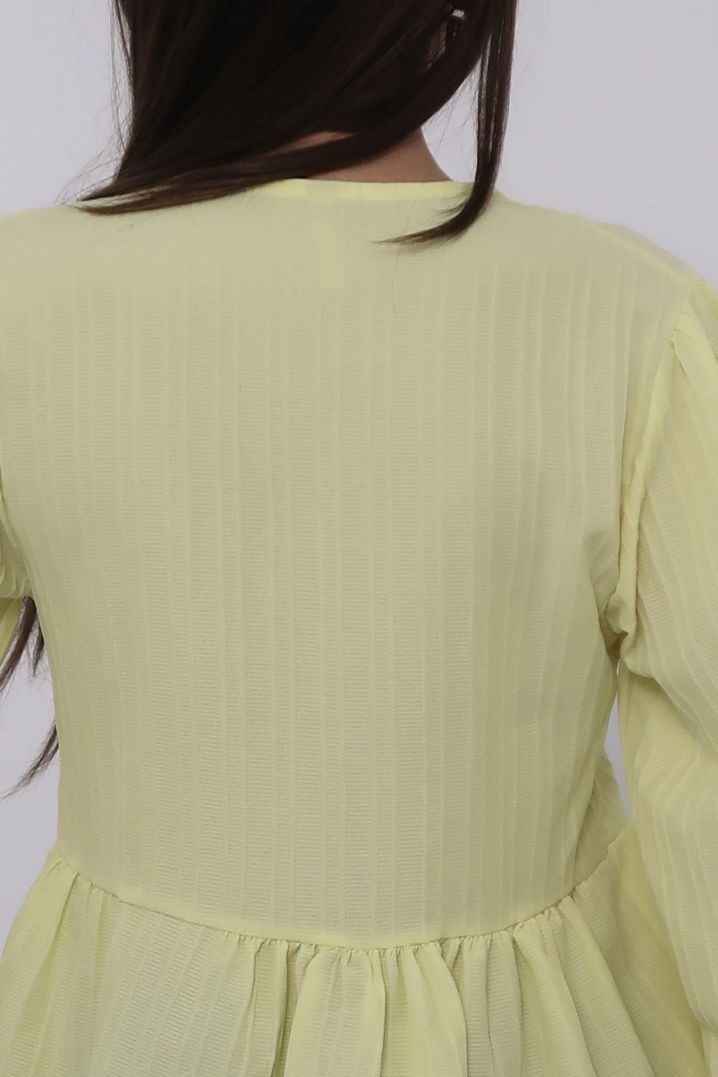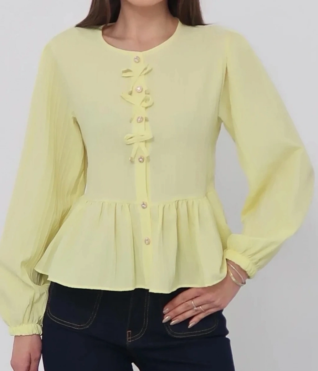Kadın Limon Sarısı Önü Bağcıklı Müslin Bluz