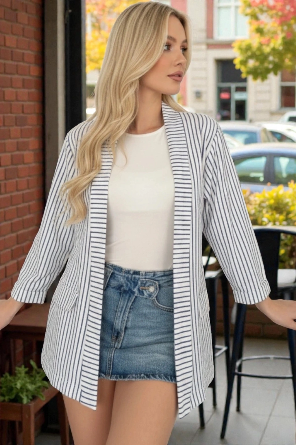 Kadın Lacivert Nakış Ve Kemer detaylı Balon Kol Müslin Kumaş Premium Kimono
