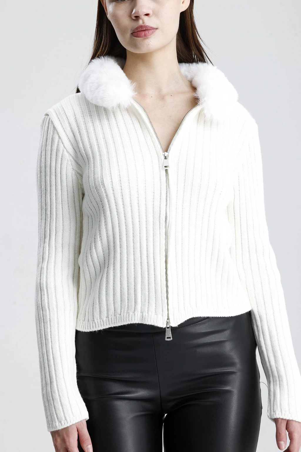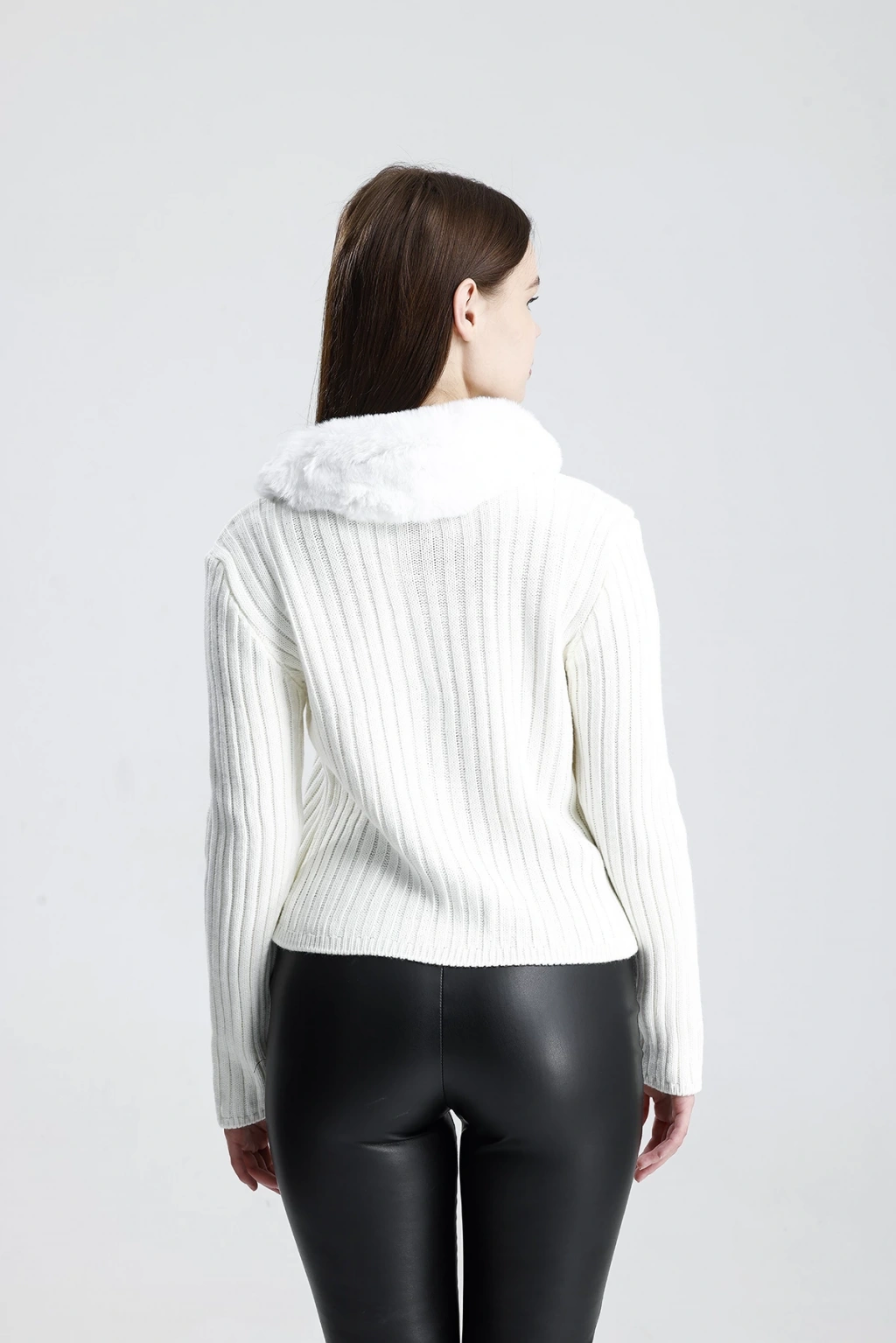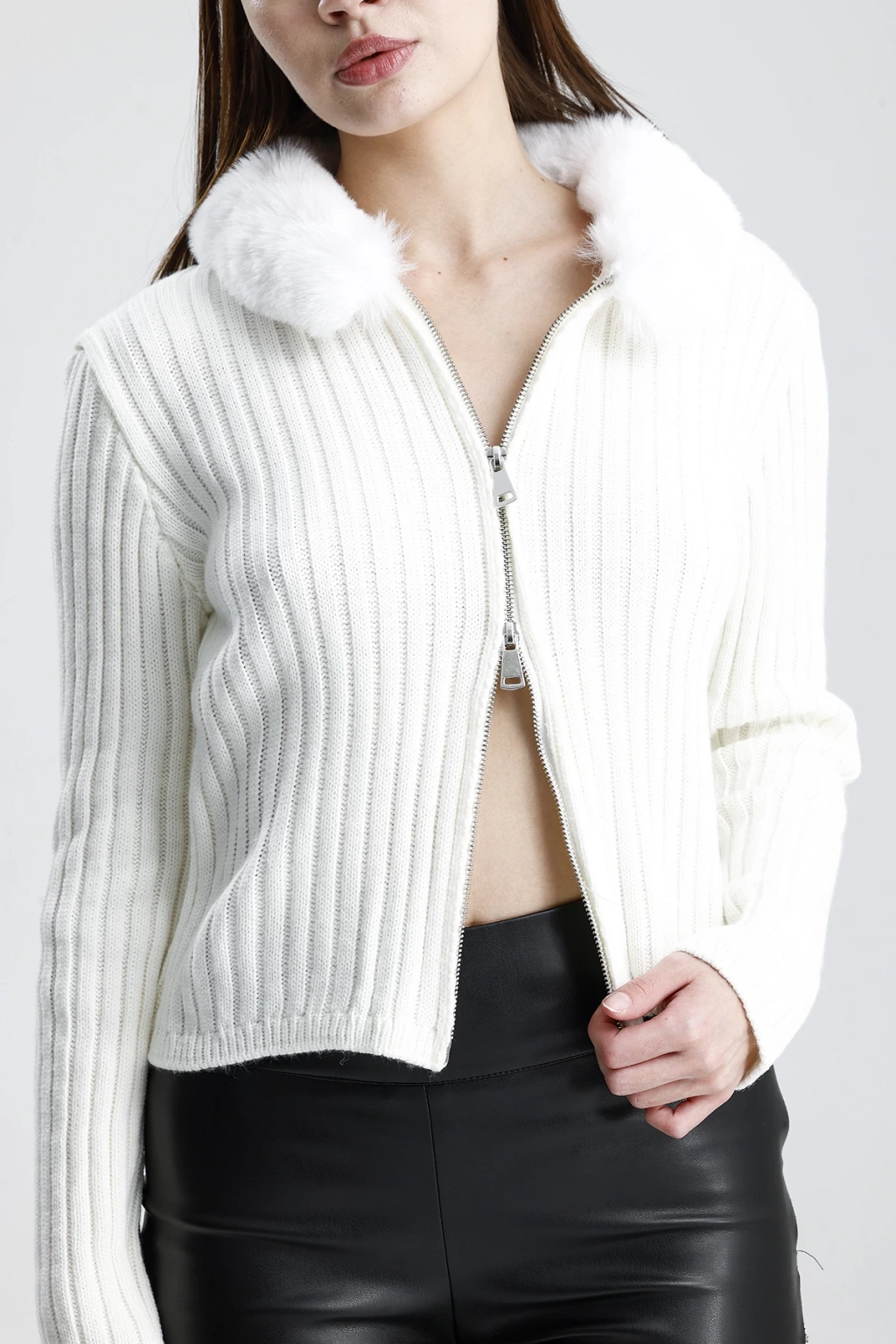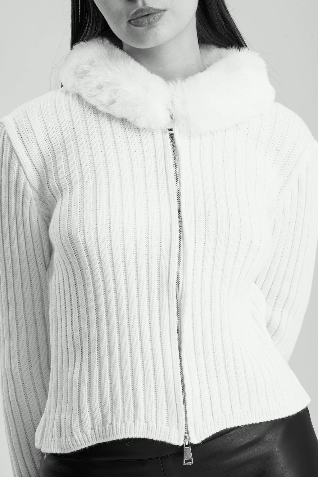 Model: Çift fermuarlı, kürk yaka detaylı kadın triko hırka