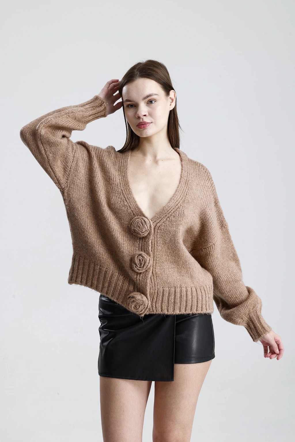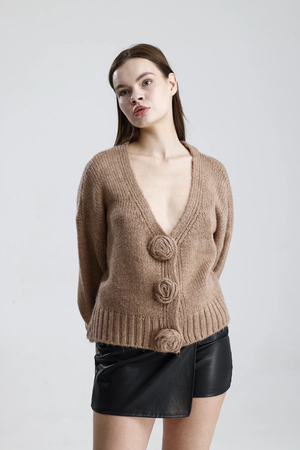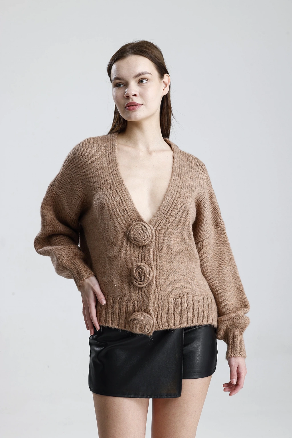 Kadın Şık Gül Detaylı Triko Hırka ile tarzınızı bir adım öne taşıyın. Hem günlük yaşamda hem de özel günlerde rahatlıkla tercih edebileceğiniz bu hırka, şıklığınızı tamamlayacak vazgeçilmez parçanız olacak.