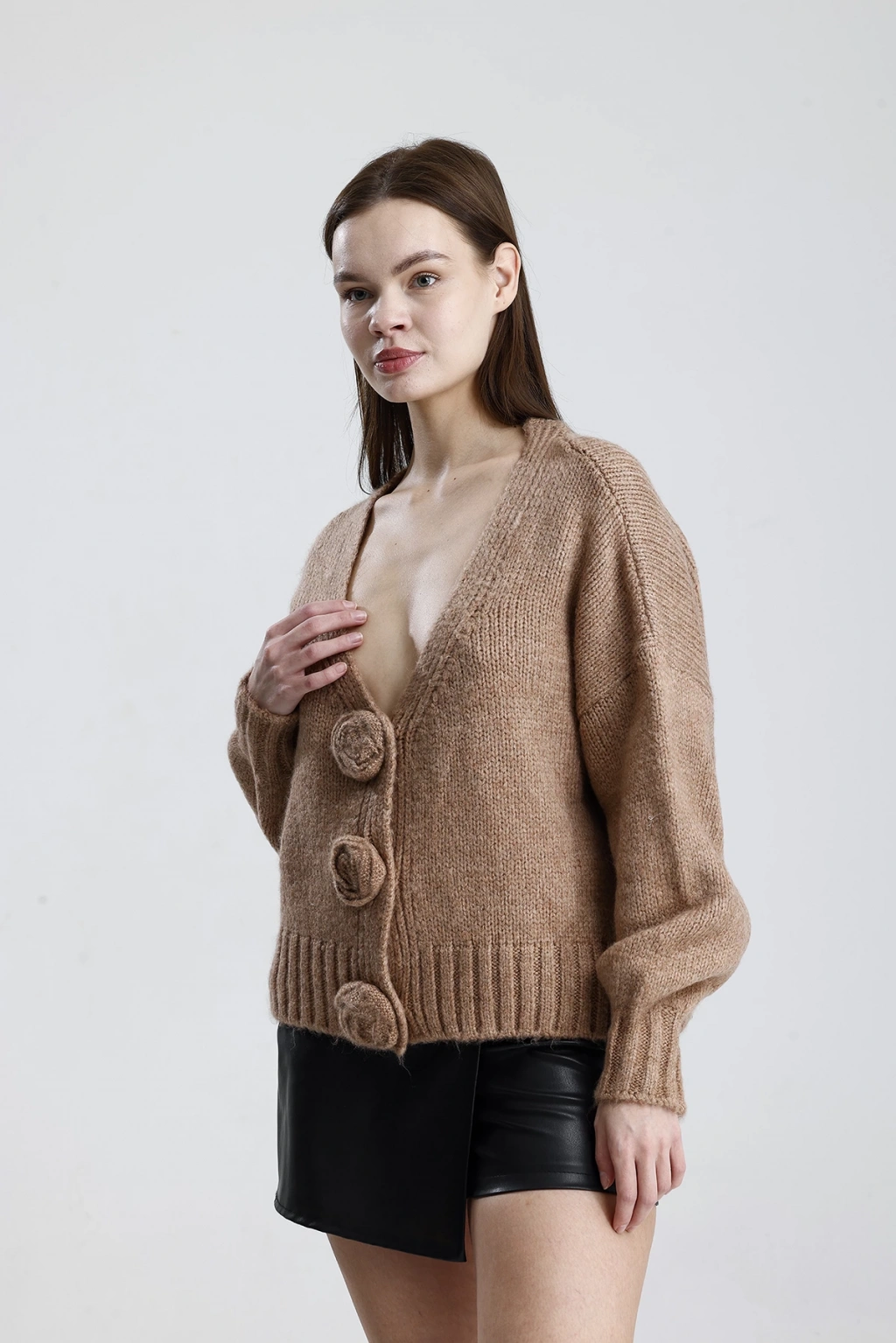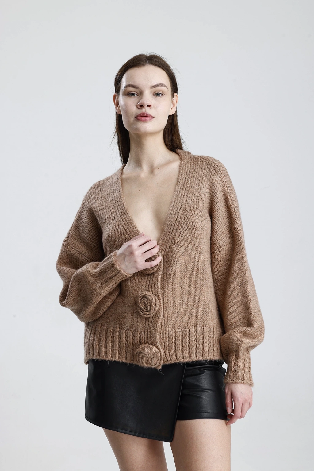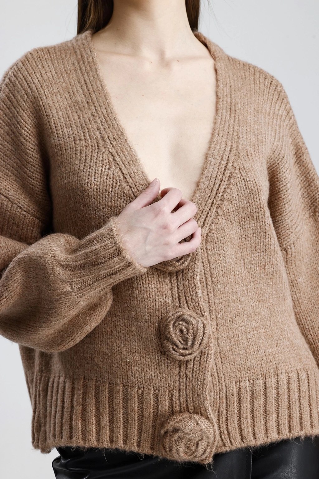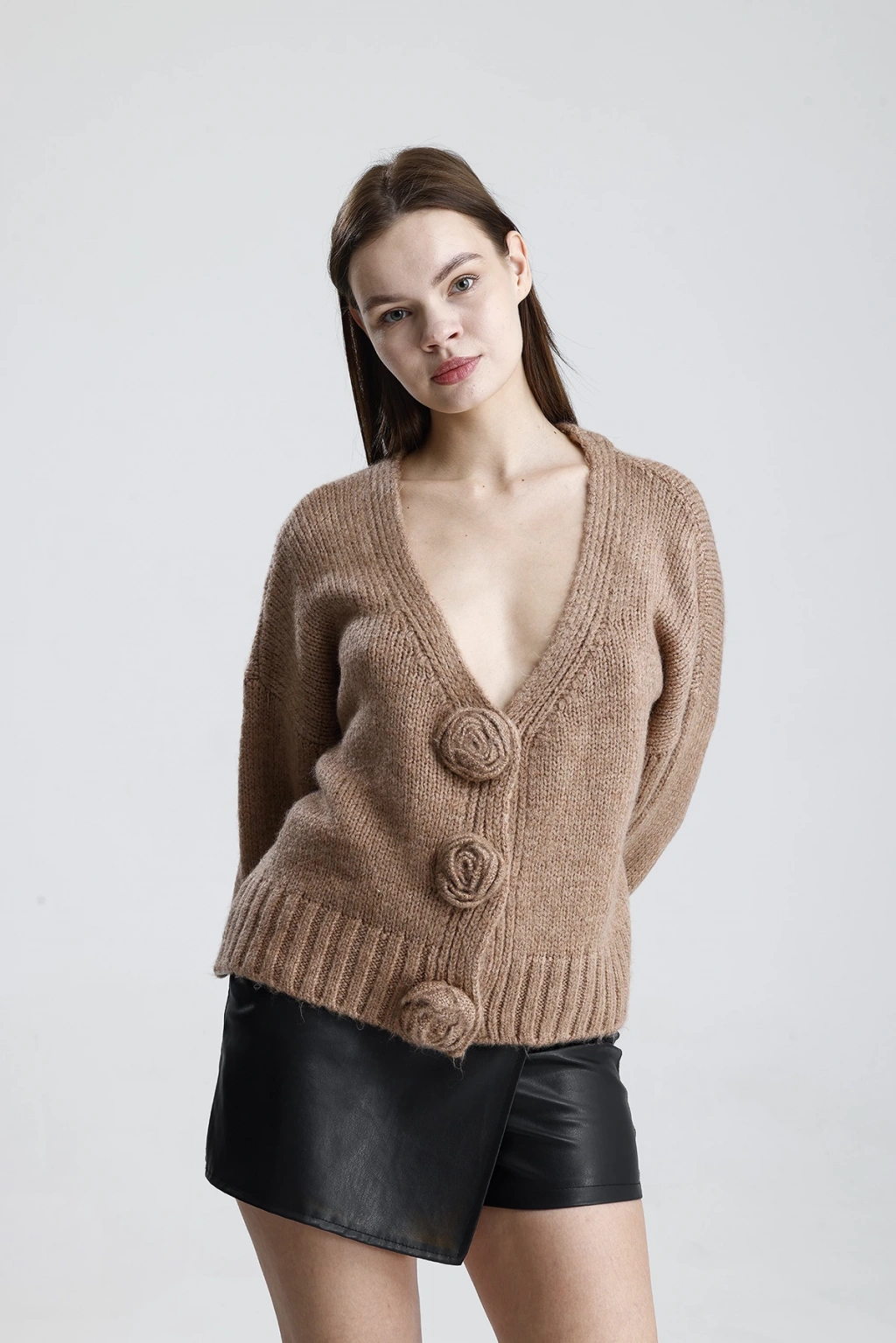 Kadın Şık Gül Detaylı Triko Hırka ile tarzınızı bir adım öne taşıyın. Hem günlük yaşamda hem de özel günlerde rahatlıkla tercih edebileceğiniz bu hırka, şıklığınızı tamamlayacak vazgeçilmez parçanız olacak.
