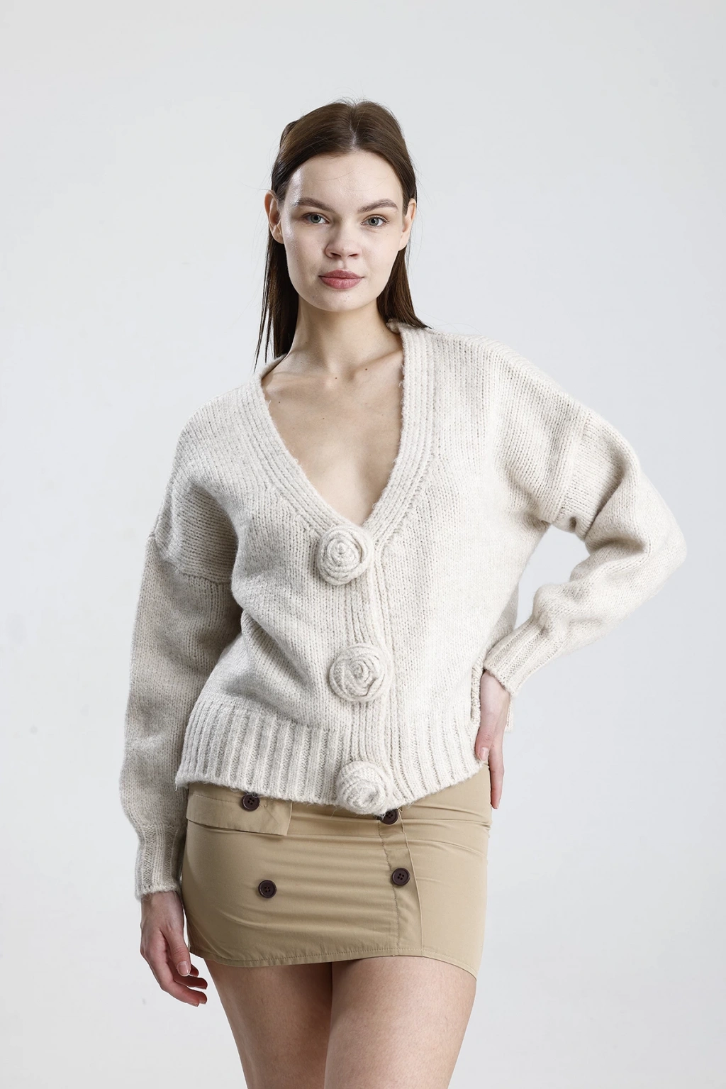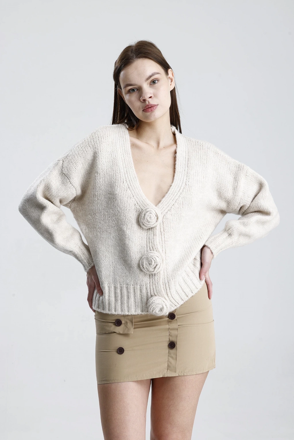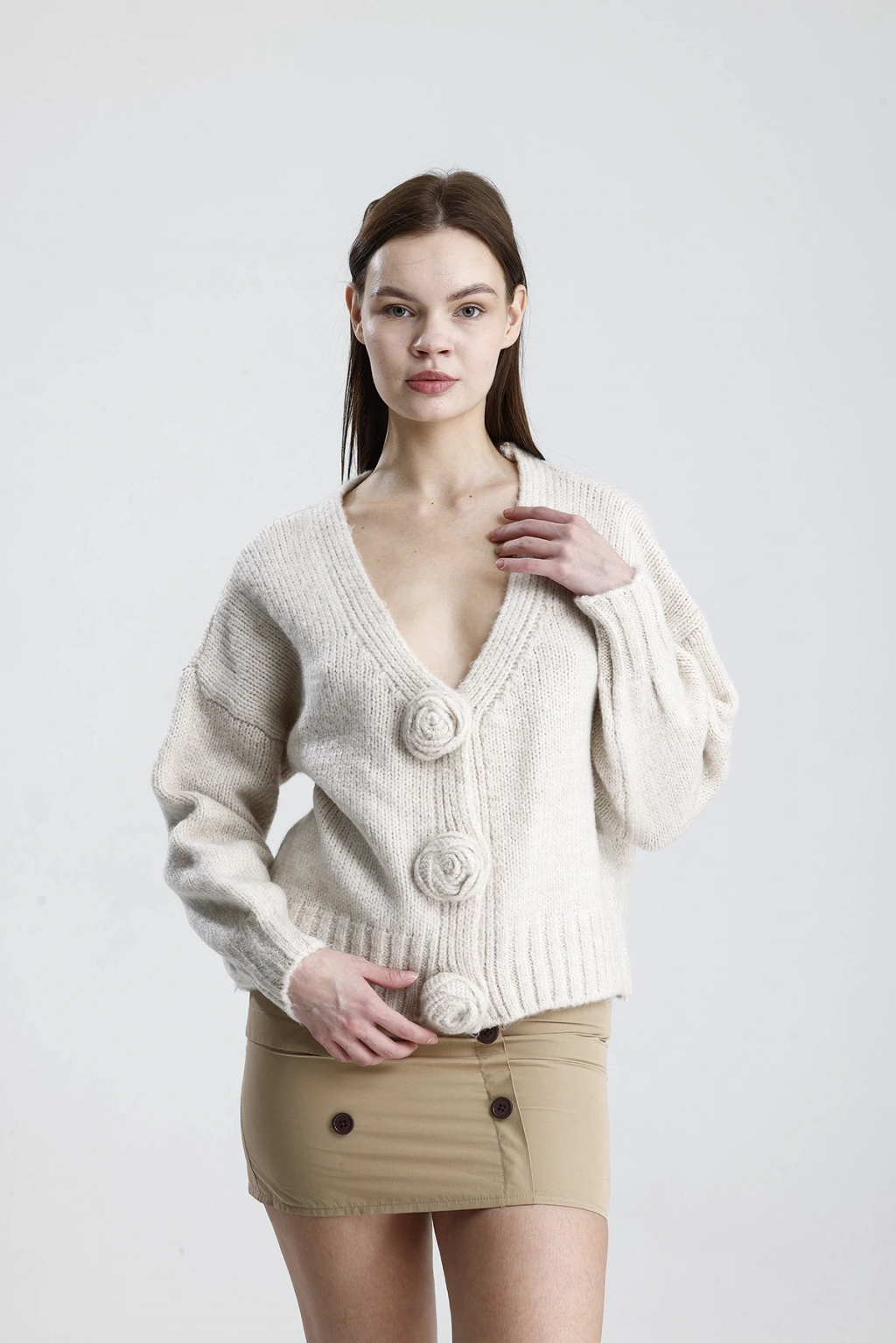 Kadın Şık Gül Detaylı Triko Hırka ile tarzınızı bir adım öne taşıyın. Hem günlük yaşamda hem de özel günlerde rahatlıkla tercih edebileceğiniz bu hırka, şıklığınızı tamamlayacak vazgeçilmez parçanız olacak.