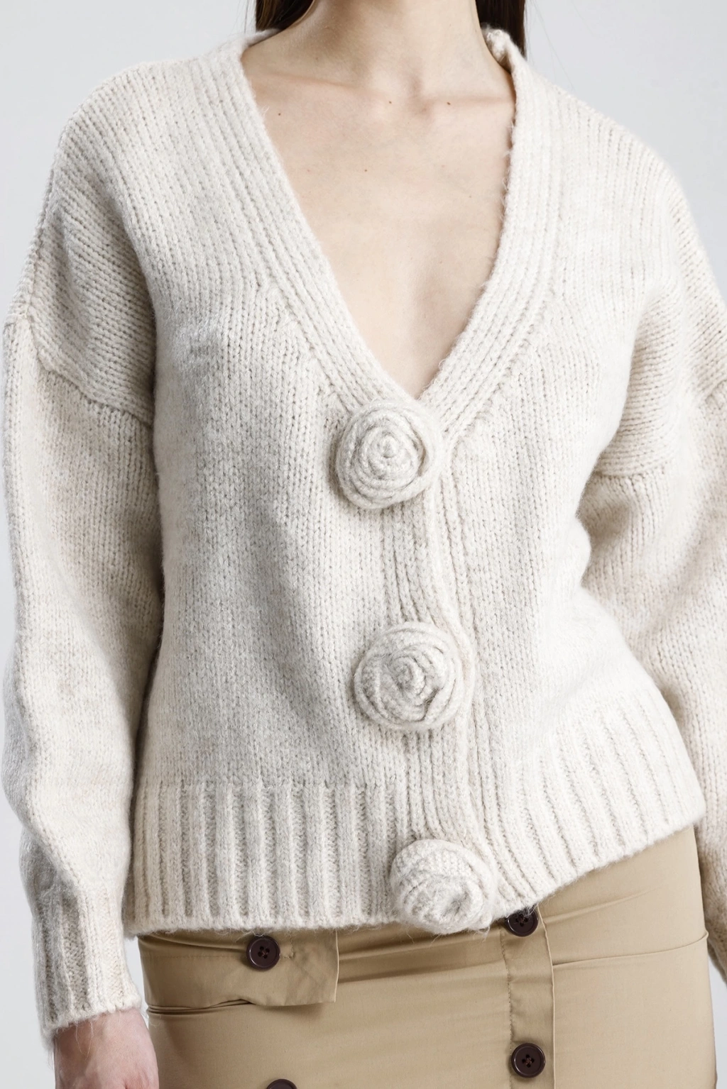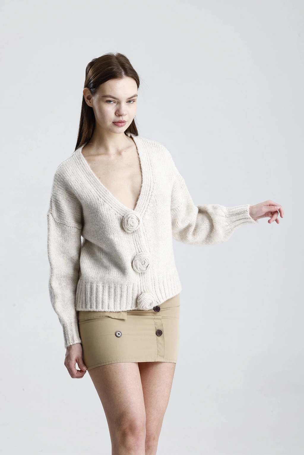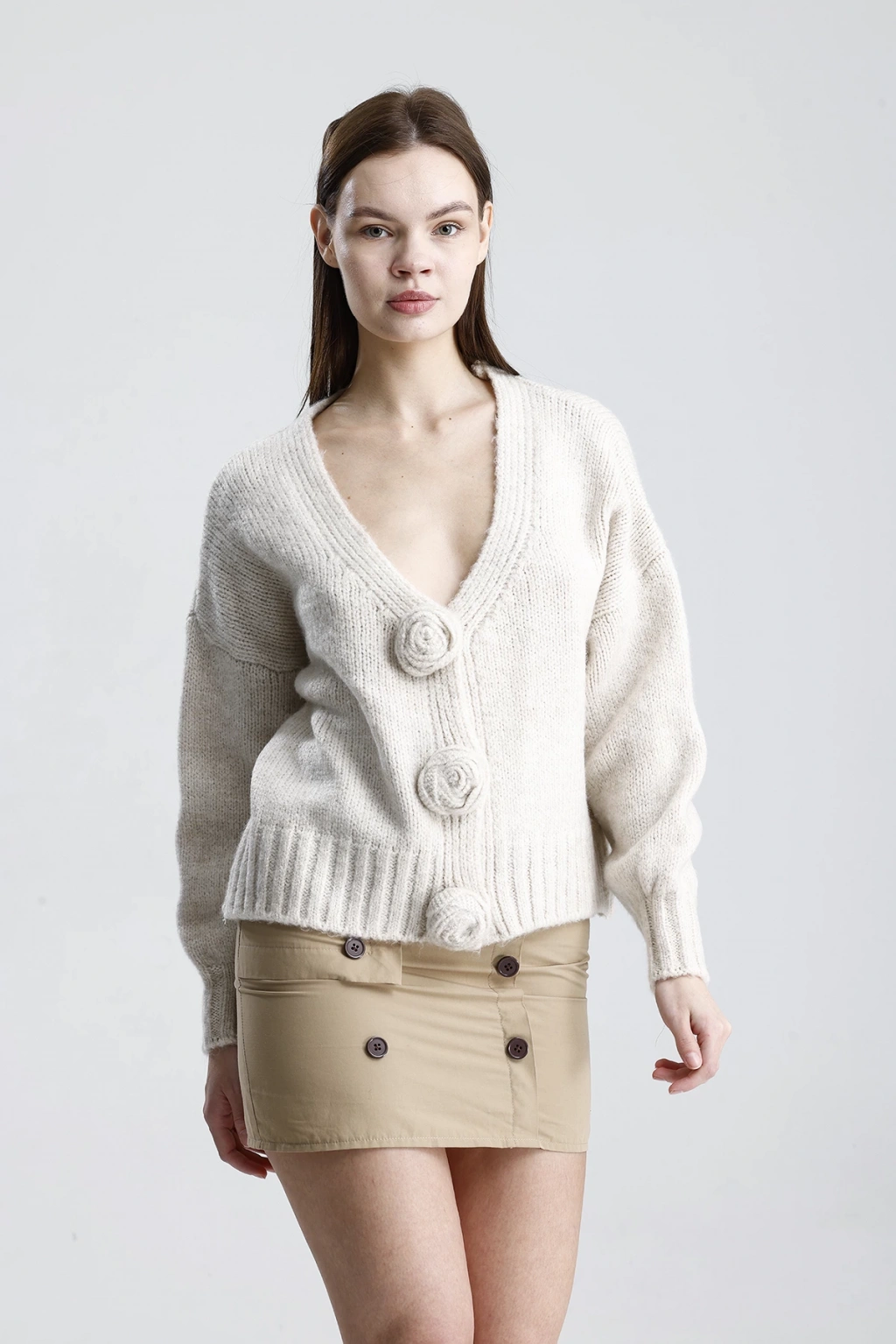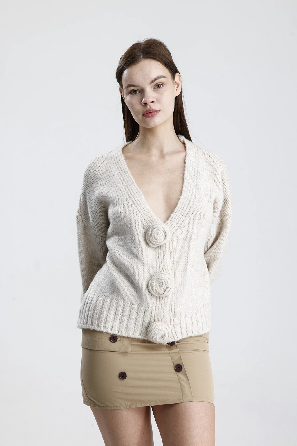 Kadın Şık Gül Detaylı Triko Hırka ile tarzınızı bir adım öne taşıyın. Hem günlük yaşamda hem de özel günlerde rahatlıkla tercih edebileceğiniz bu hırka, şıklığınızı tamamlayacak vazgeçilmez parçanız olacak.