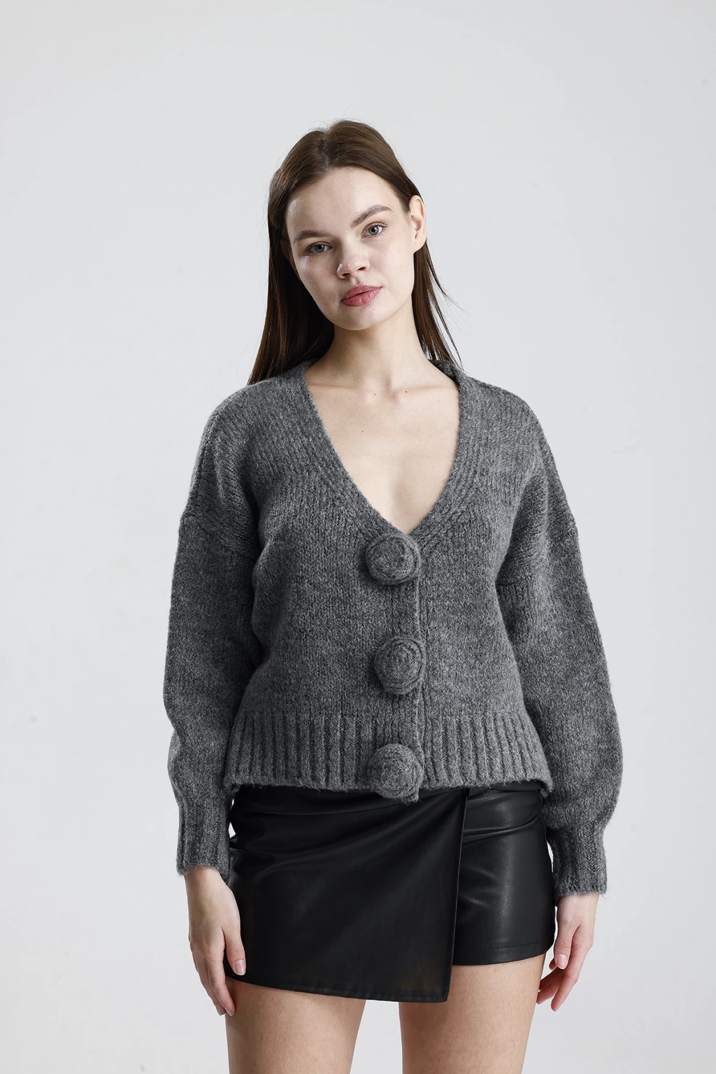 Kadın Şık Gül Detaylı Triko Hırka ile tarzınızı bir adım öne taşıyın. Hem günlük yaşamda hem de özel günlerde rahatlıkla tercih edebileceğiniz bu hırka, şıklığınızı tamamlayacak vazgeçilmez parçanız olacak.