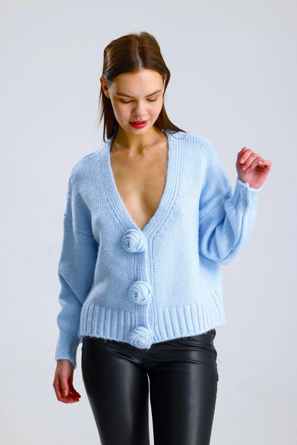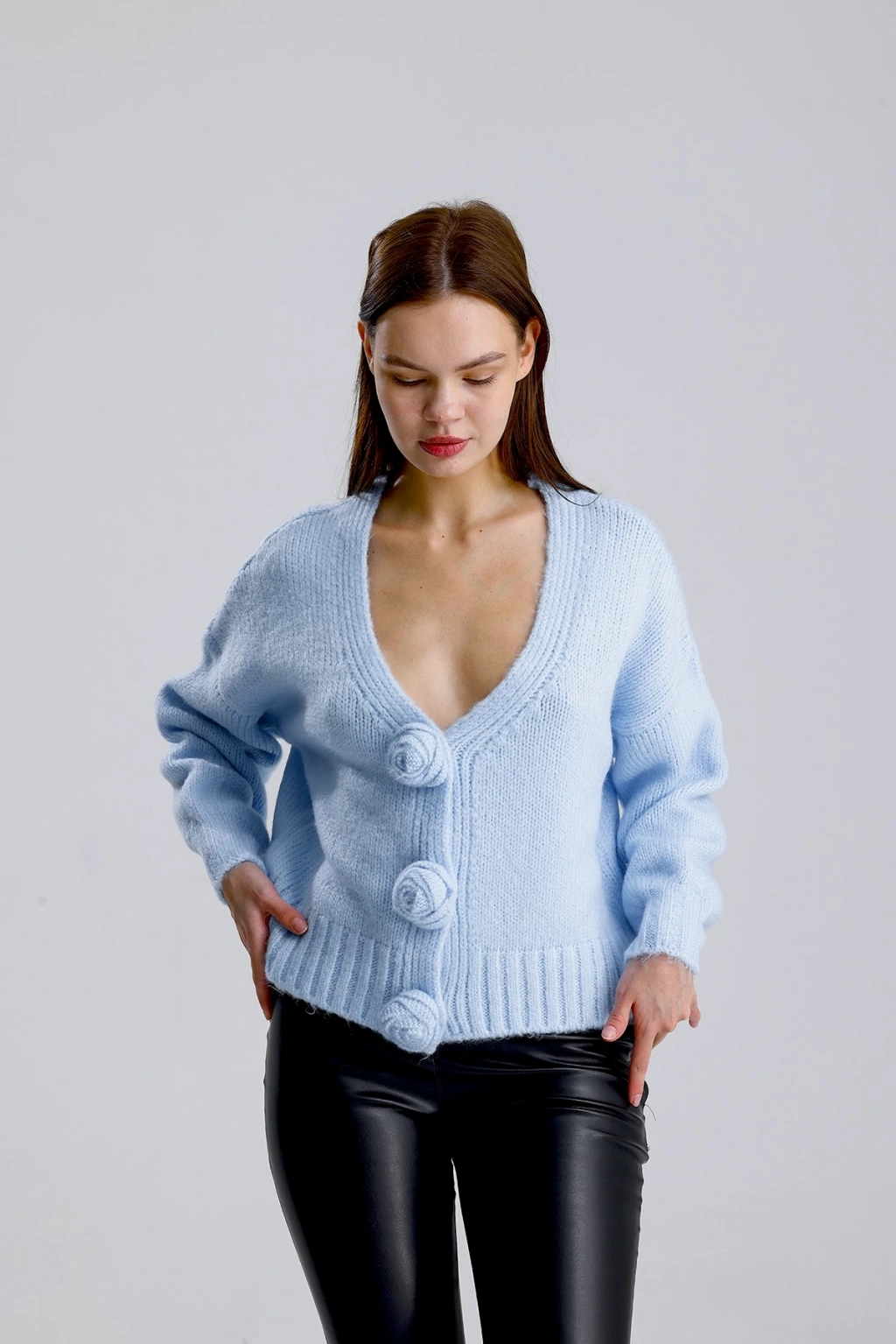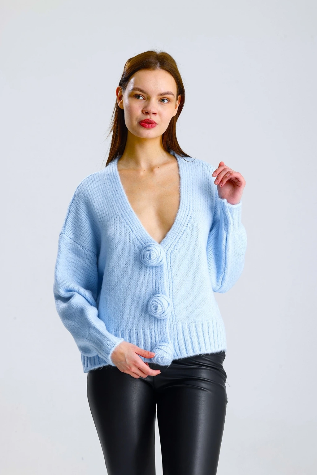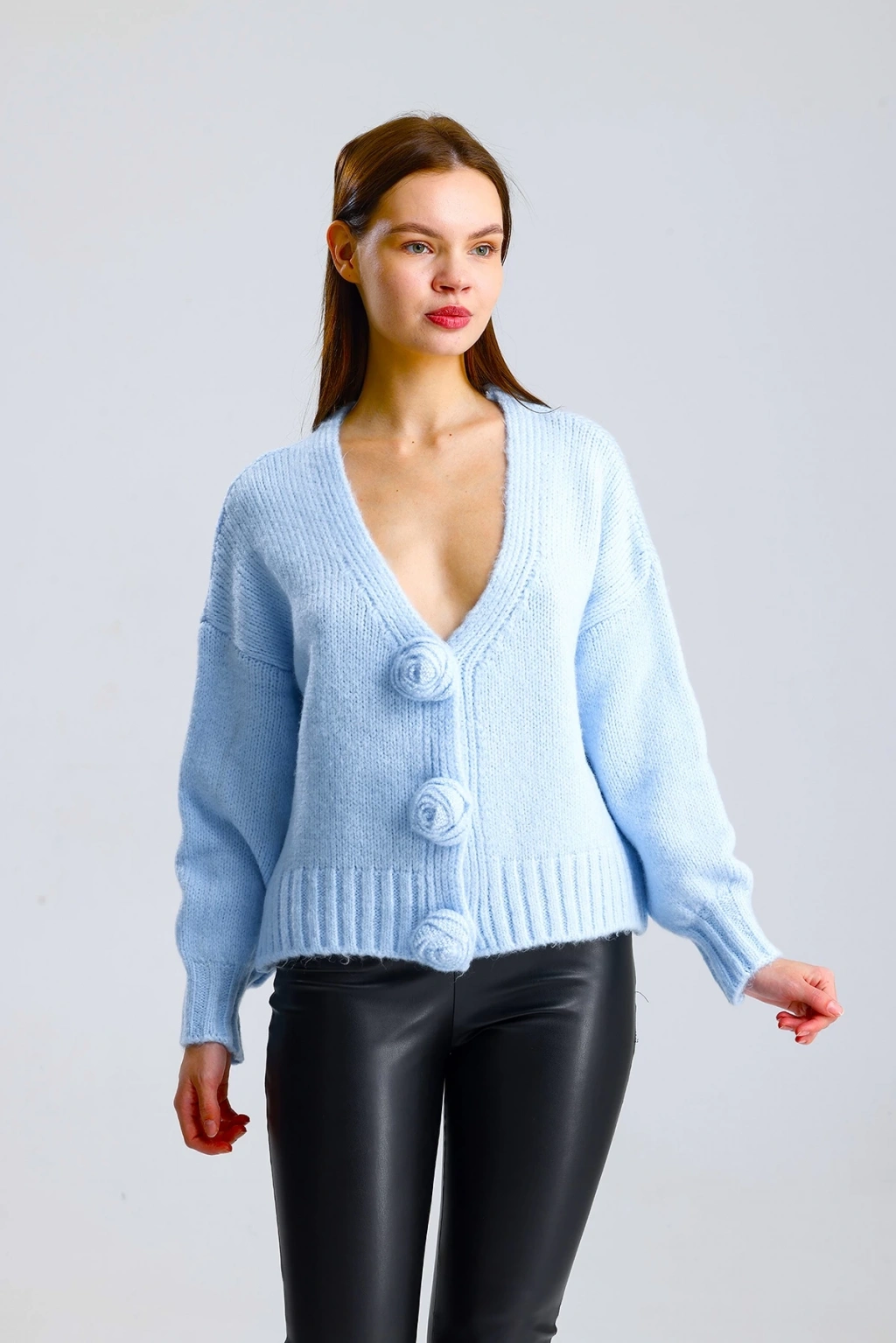 Kadın Şık Gül Detaylı Triko Hırka ile tarzınızı bir adım öne taşıyın. Hem günlük yaşamda hem de özel günlerde rahatlıkla tercih edebileceğiniz bu hırka, şıklığınızı tamamlayacak vazgeçilmez parçanız olacak.