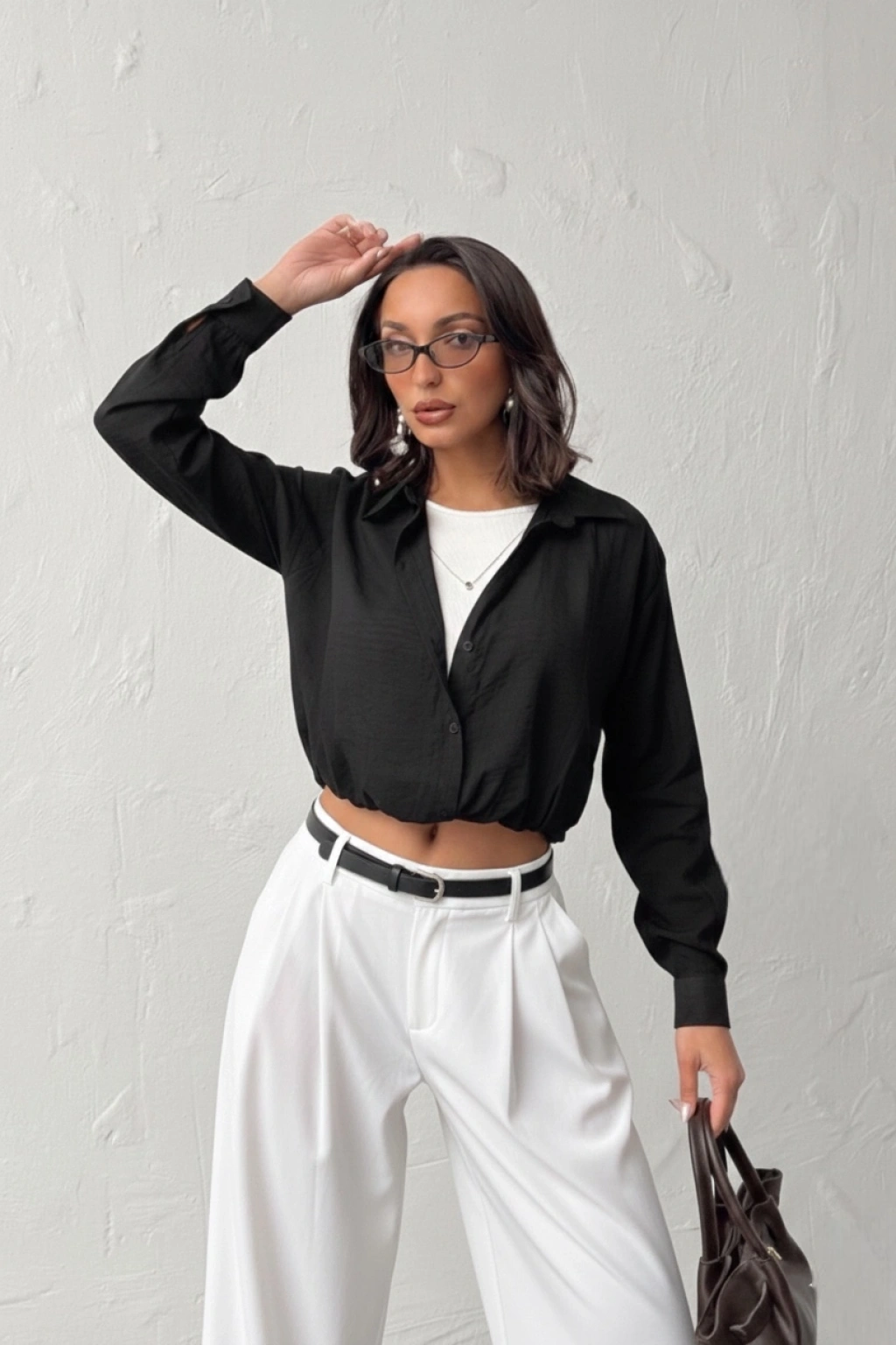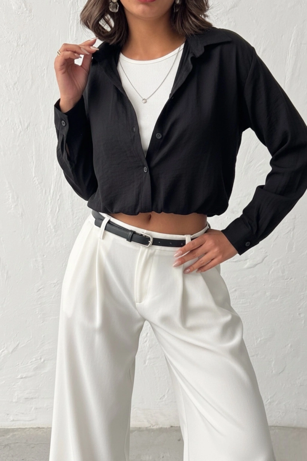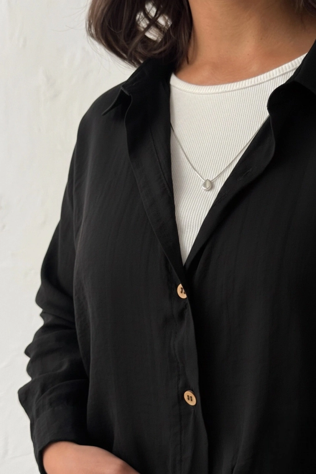 Kadın Siyah 3’lü Yapışık Set Body ve Kolyeli Gömlek