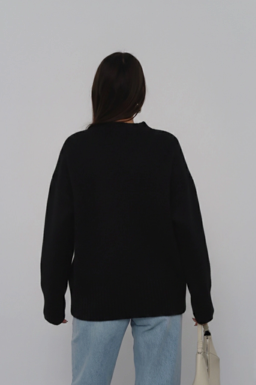 Kadın Siyah Asimetrik Kesim Boğazlı Balıkçı Yaka Triko Kazak
