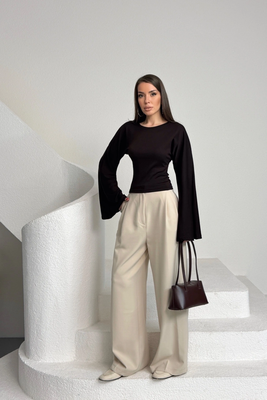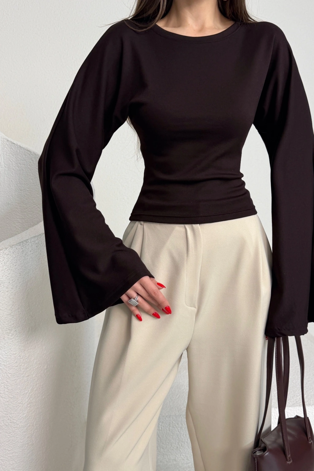 Kadın Siyah Bisiklet Yaka Uzun İspanyol Kol Yumuşacık Body Bluz