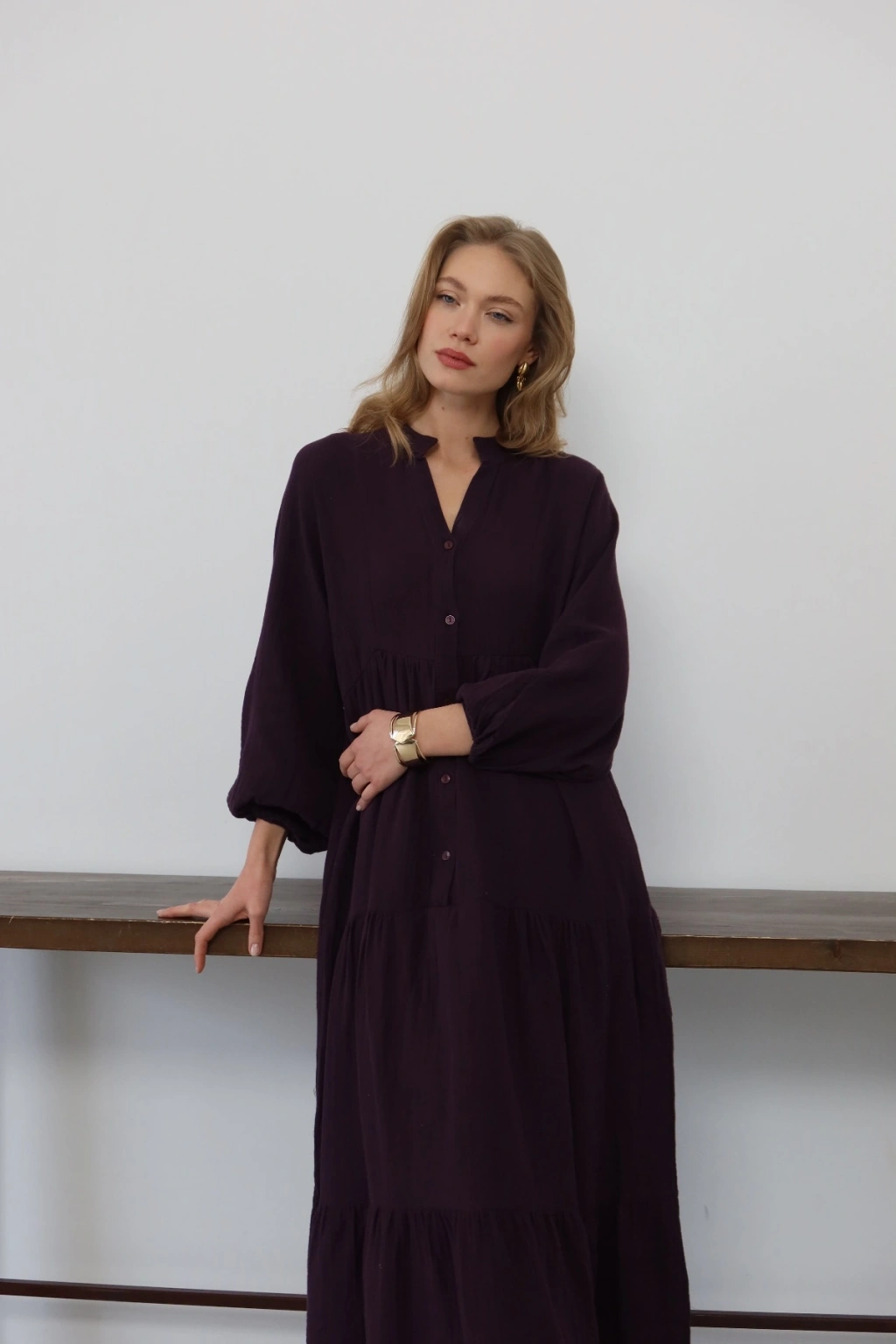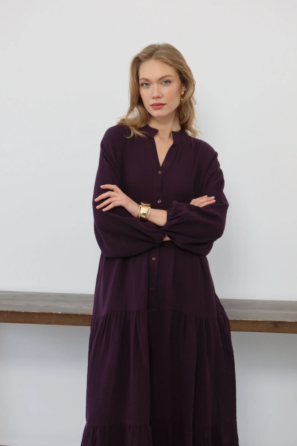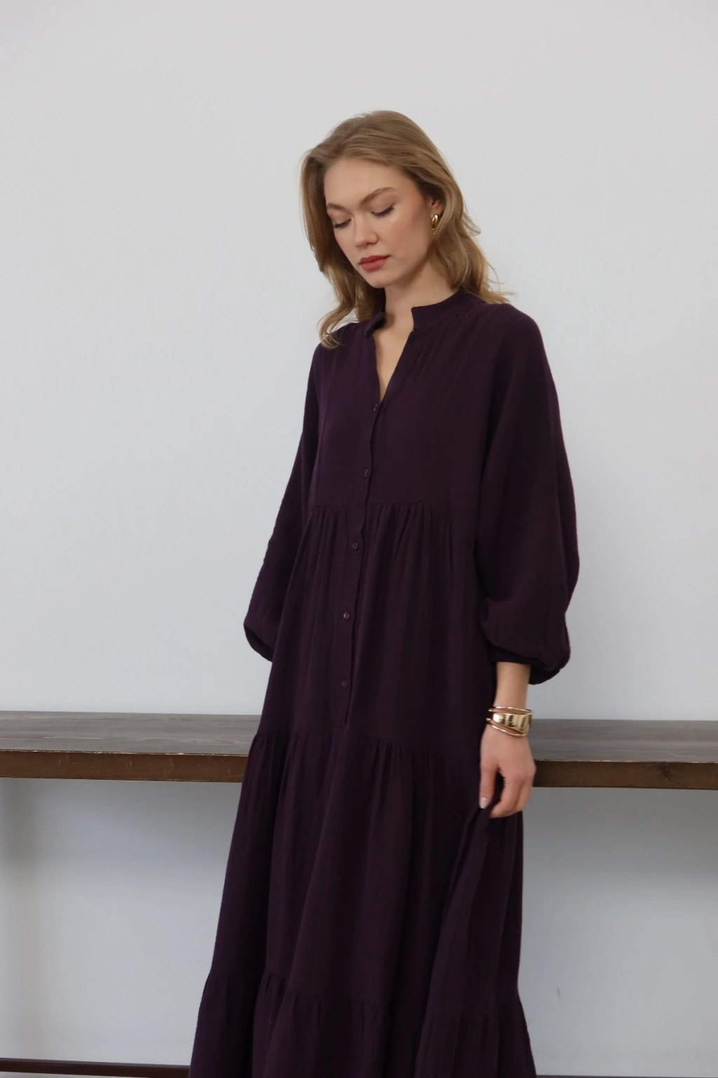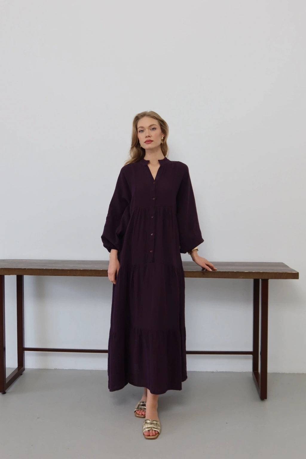 Kadın Haki Bohem Tarz Müslin Kumaş Rahat Kalıp Astarlı Uzun Şık Bayramlık Elbise