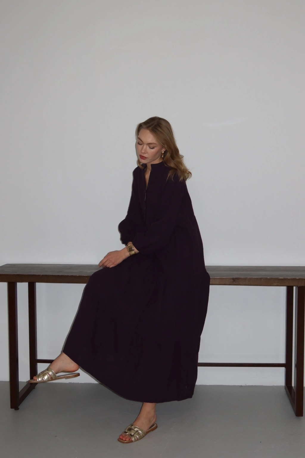 Kadın Siyah Bohem Tarz Müslin Kumaş Rahat Kalıp Astarlı Uzun Şık Bayramlık Elbise