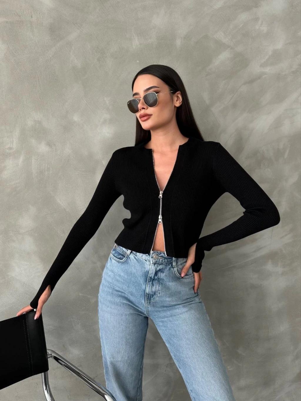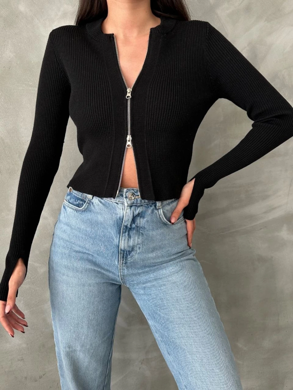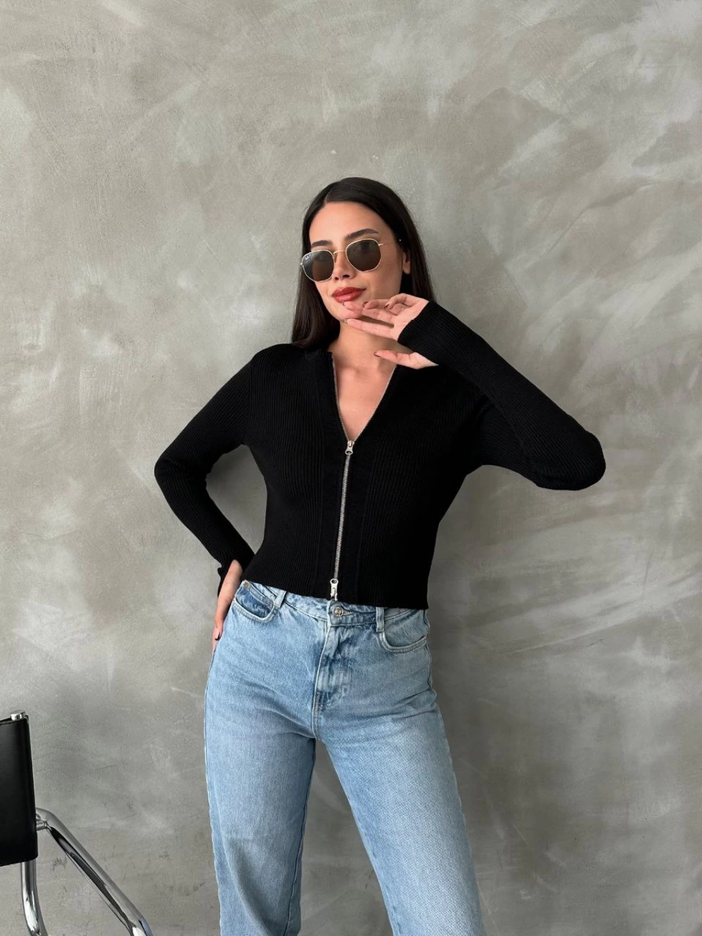 Bu hırka, zamansız şıklığın modern bir yorumu! İnce ribanalı dokusu sayesinde hem vücuda oturan zarif bir siluet yaratıyor hem de gün boyu konfor sunuyor. Ön kısmındaki çift yönlü fermuar detayı, sadece pratiklik kazandırmakla kalmıyor; aynı zamanda stilinizi kişiselleştirmenize olanak tanıyor. İster tamamen kapalı, ister hafif aralık bırakılarak kullanılabilir – her iki şekilde de iddialı bir duruş sergiliyor.