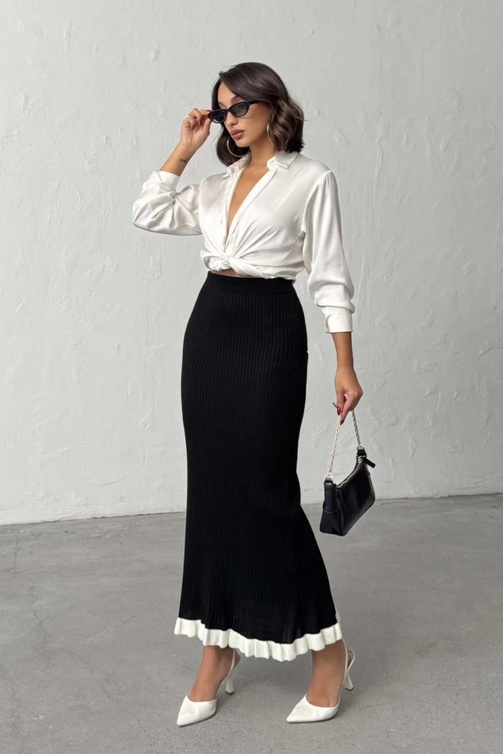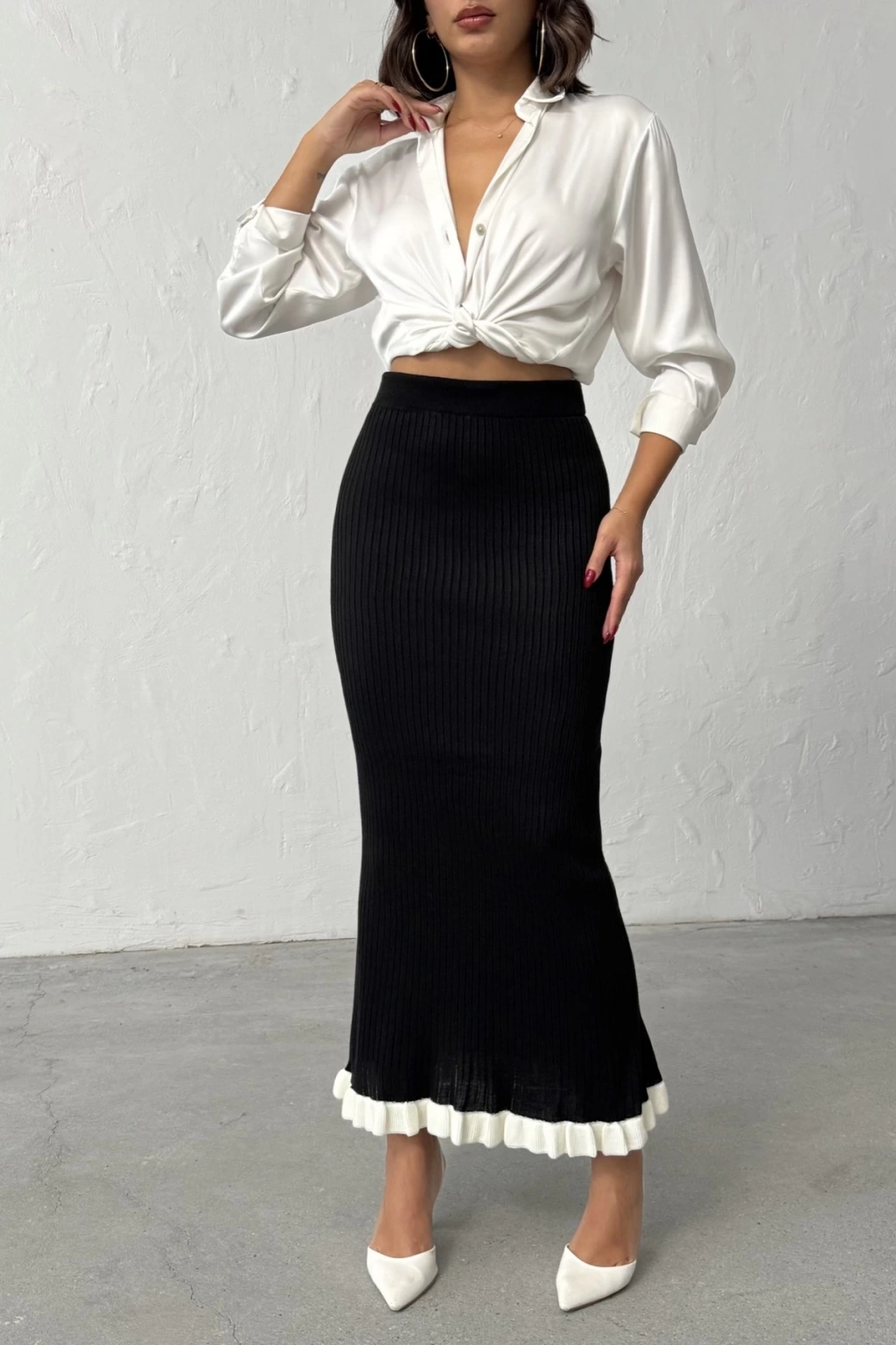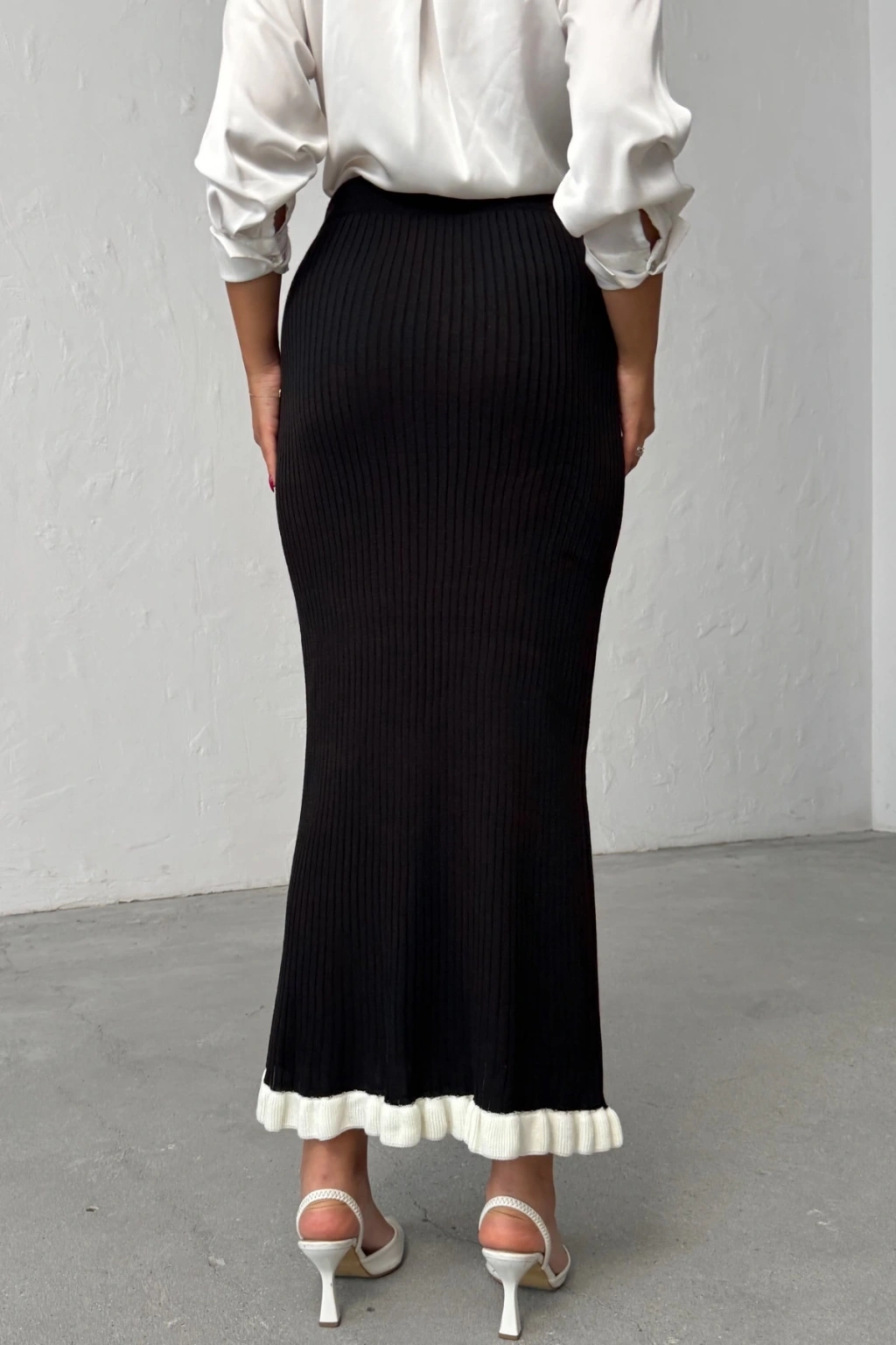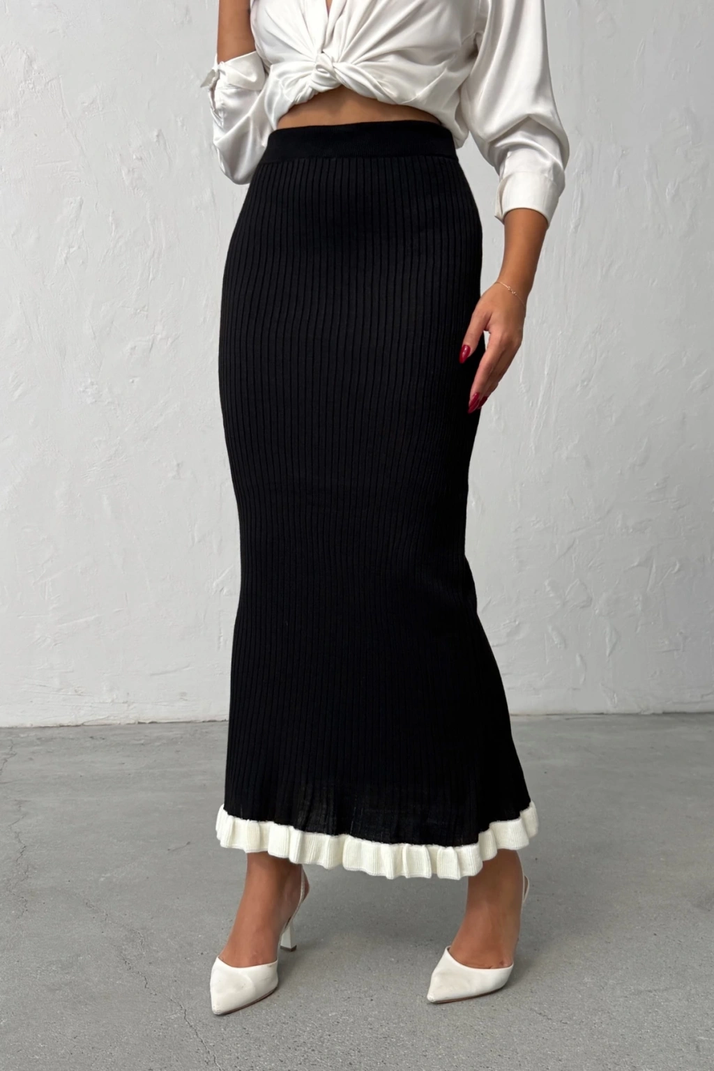 Kadın Siyah Fitilli Zarif Triko Etek