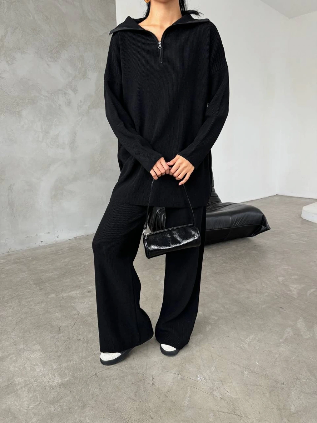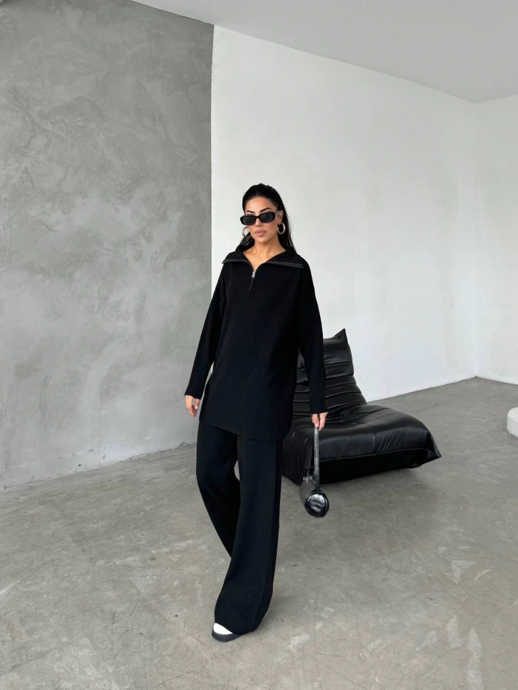 Günlük giyimde, seyahatte veya hafta sonu kombinlerinde şıklığınızdan ödün vermeden rahat olmanız için tasarlandı. Minimal tarzı ve zamansız siyah rengiyle gardırobunuzun vazgeçilmez parçası olacak.