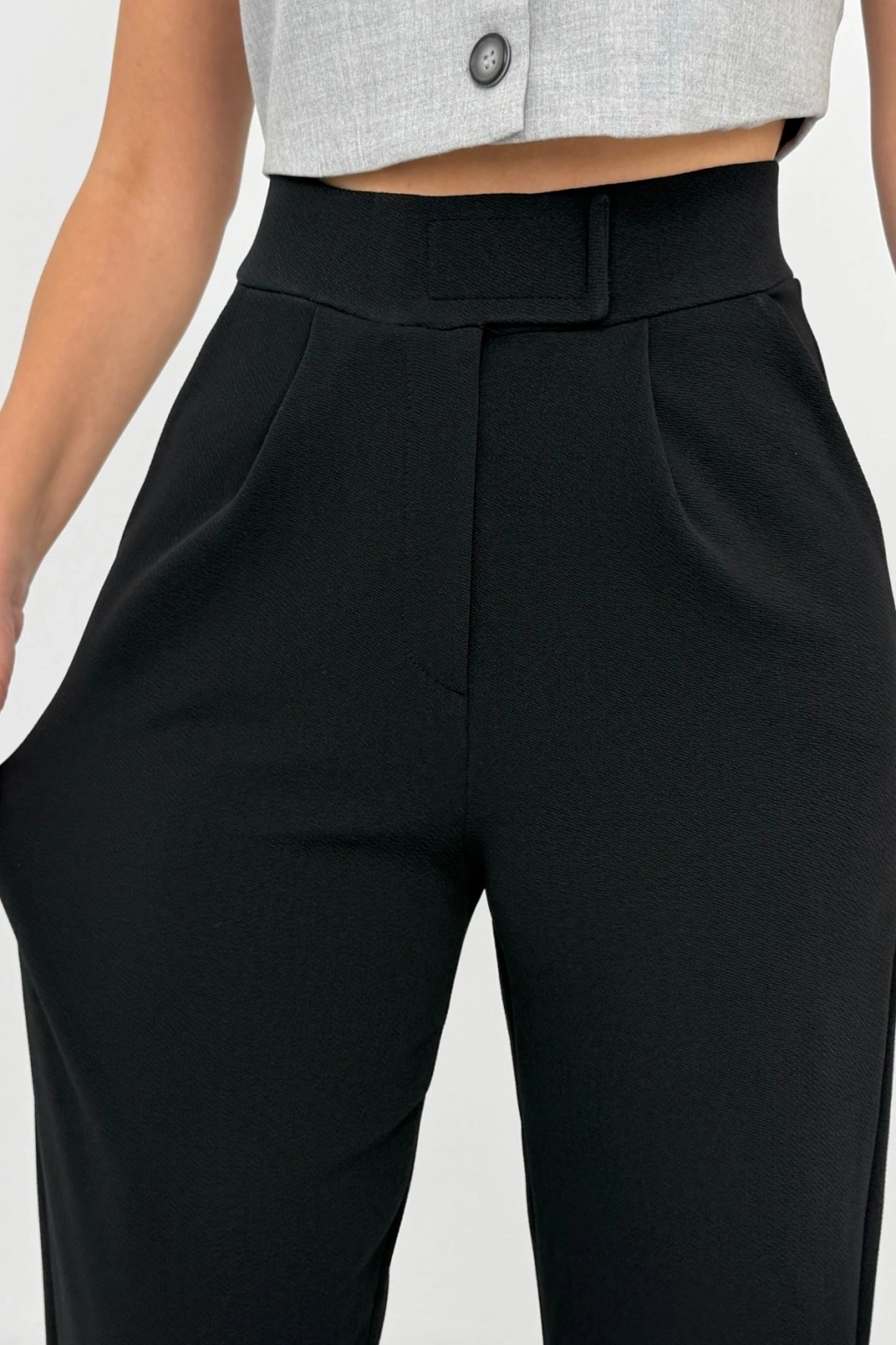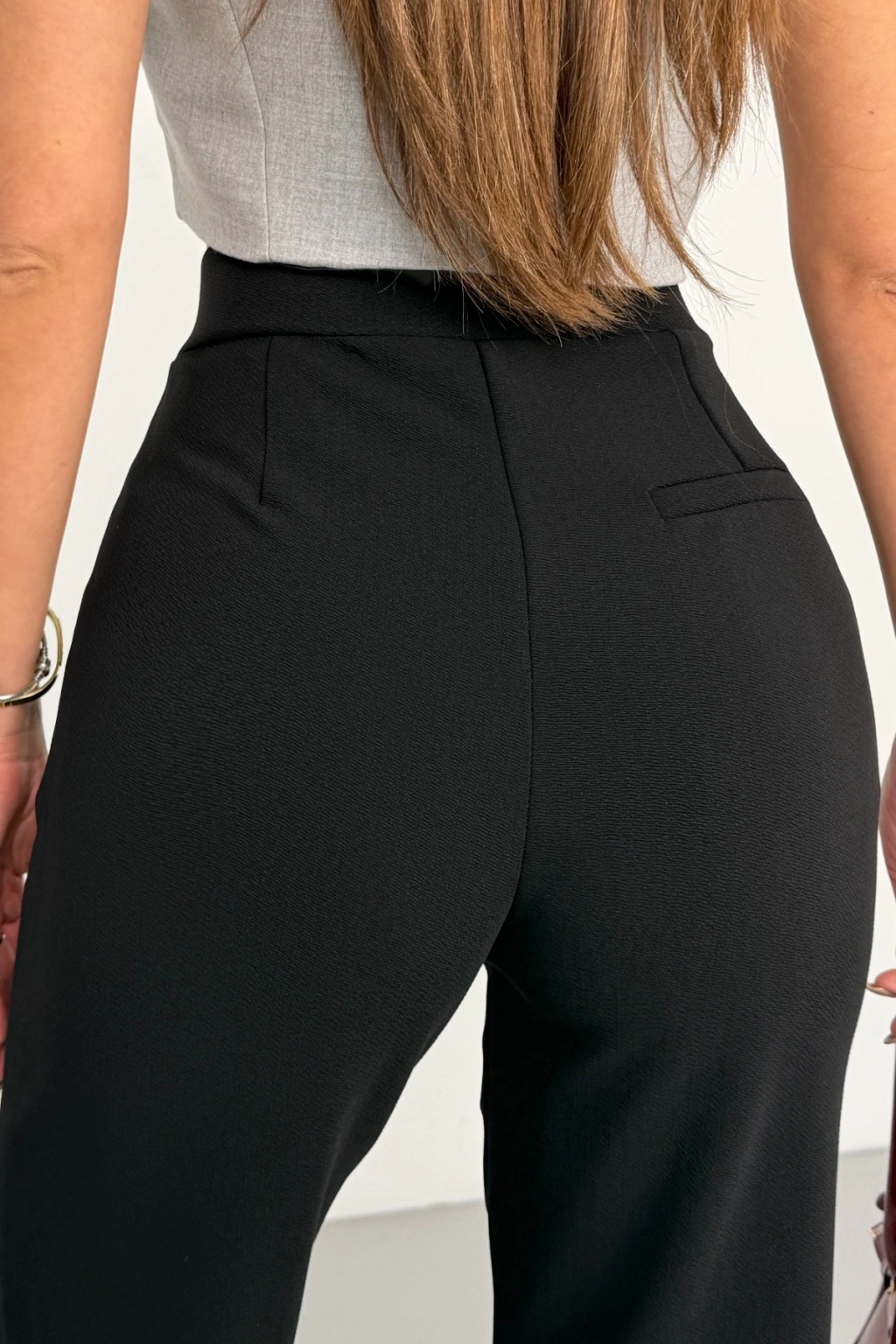 Kadın Siyah Yüksek Bel Likralı Cırt Bant Kapamalı Geniş Paça Palazzo Pantolon