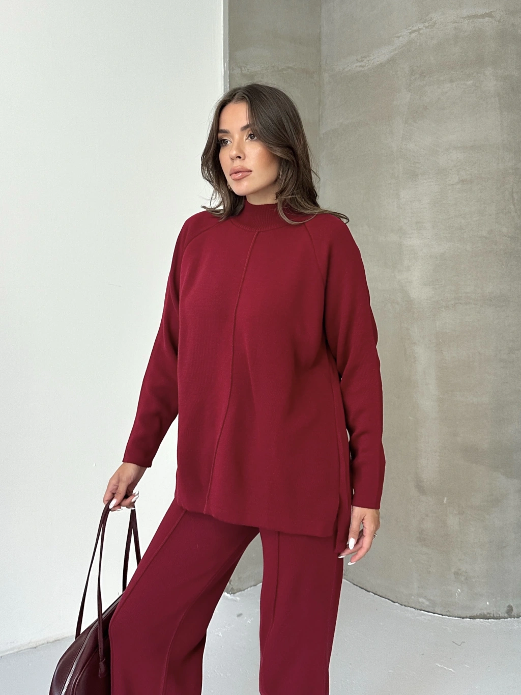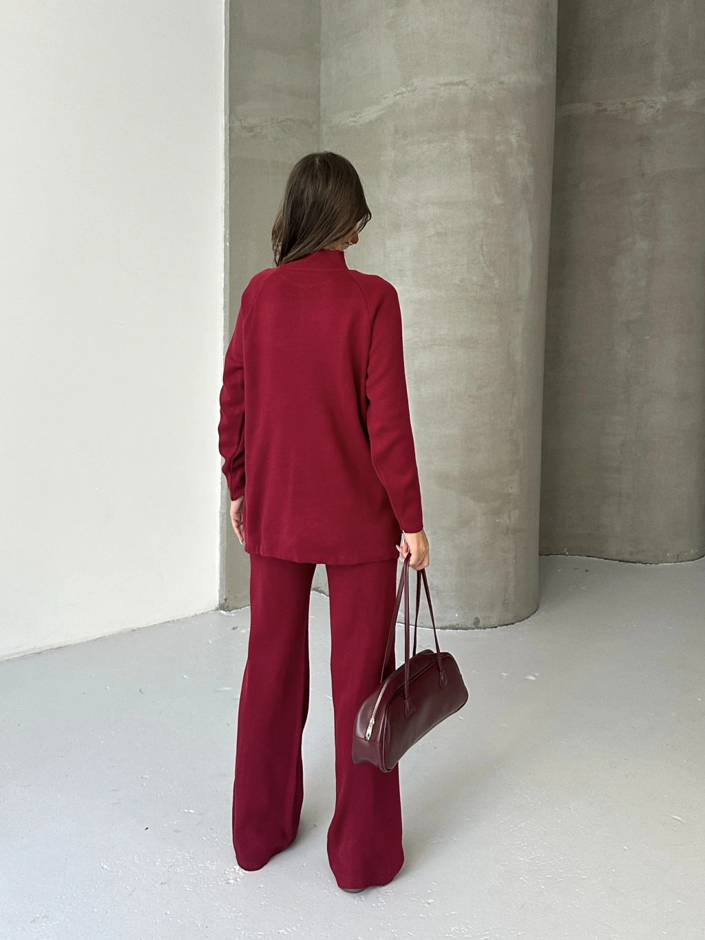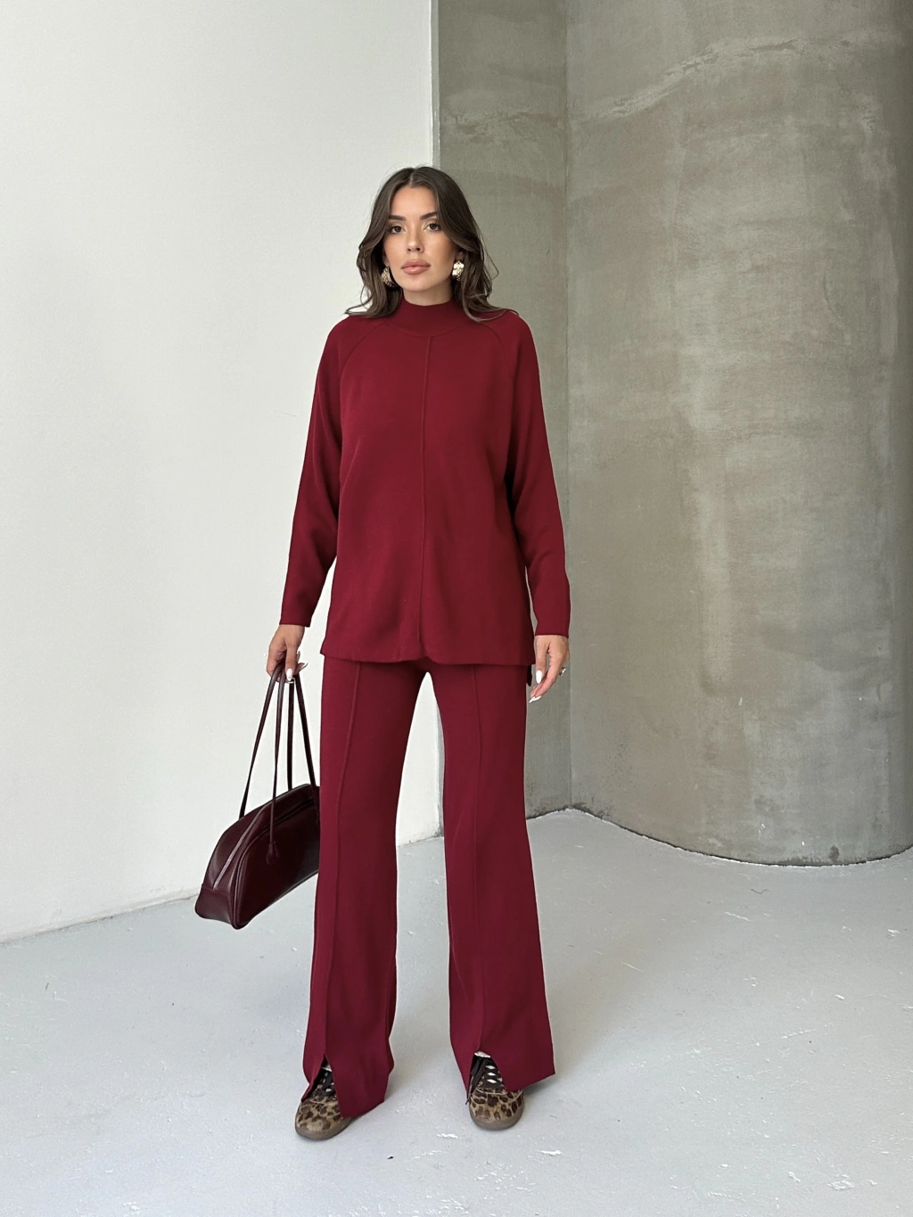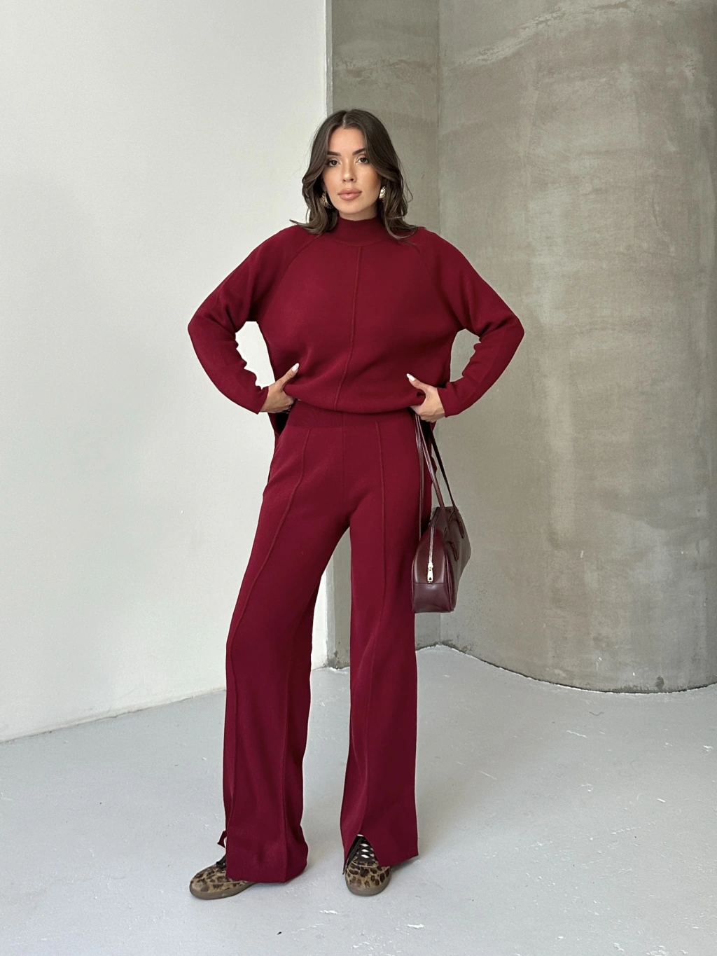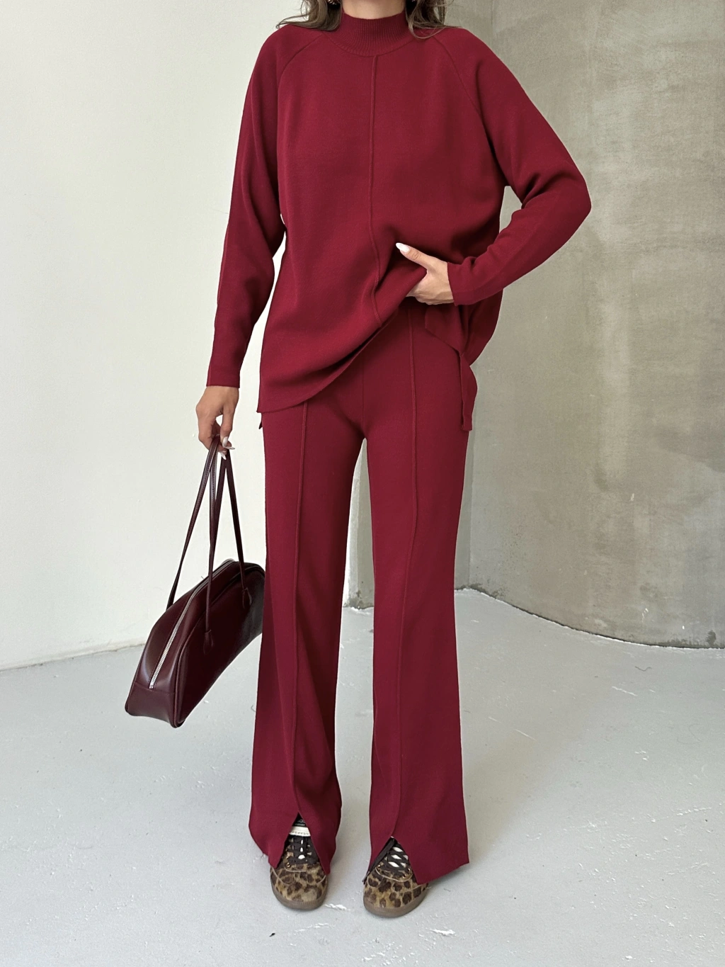 Kadın Yarım Balıkçı Yaka Kazak Pantolon Alt Üst Triko Takım - Bordo
